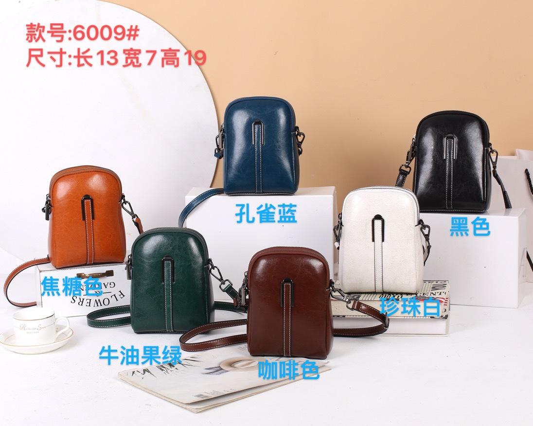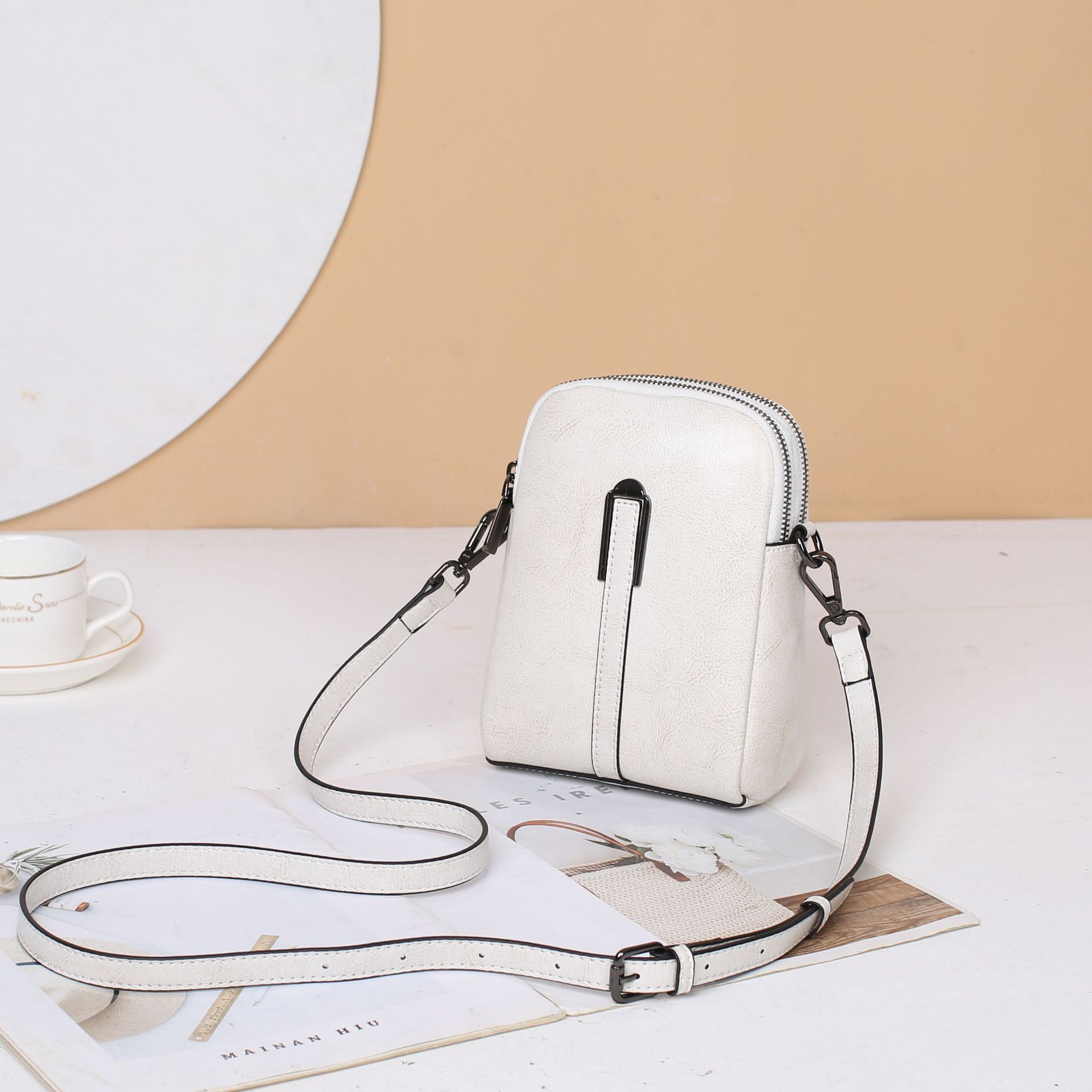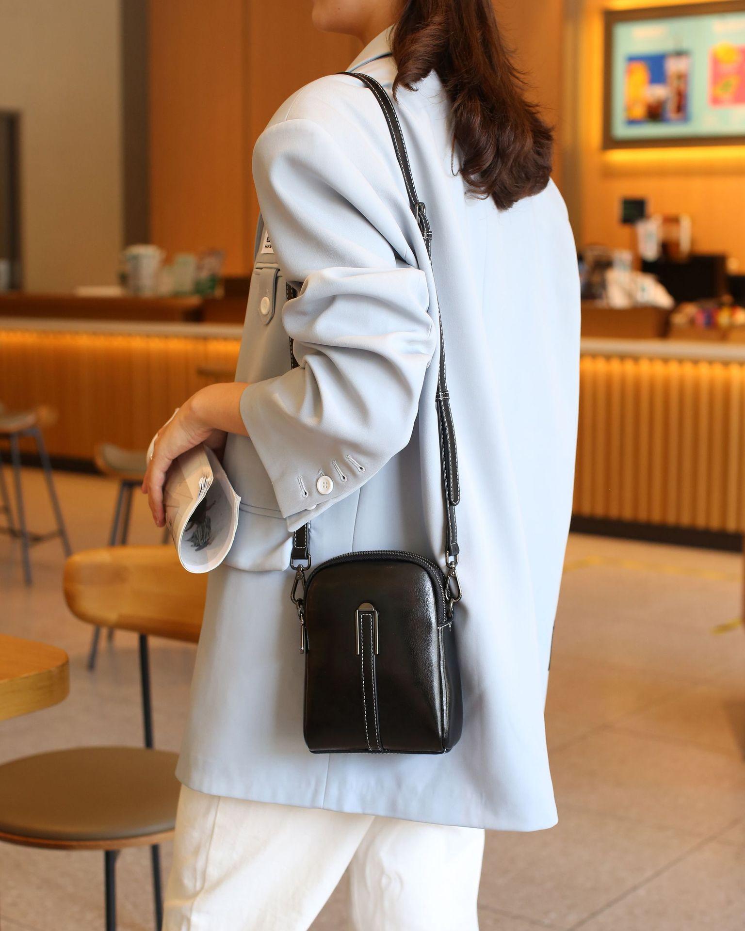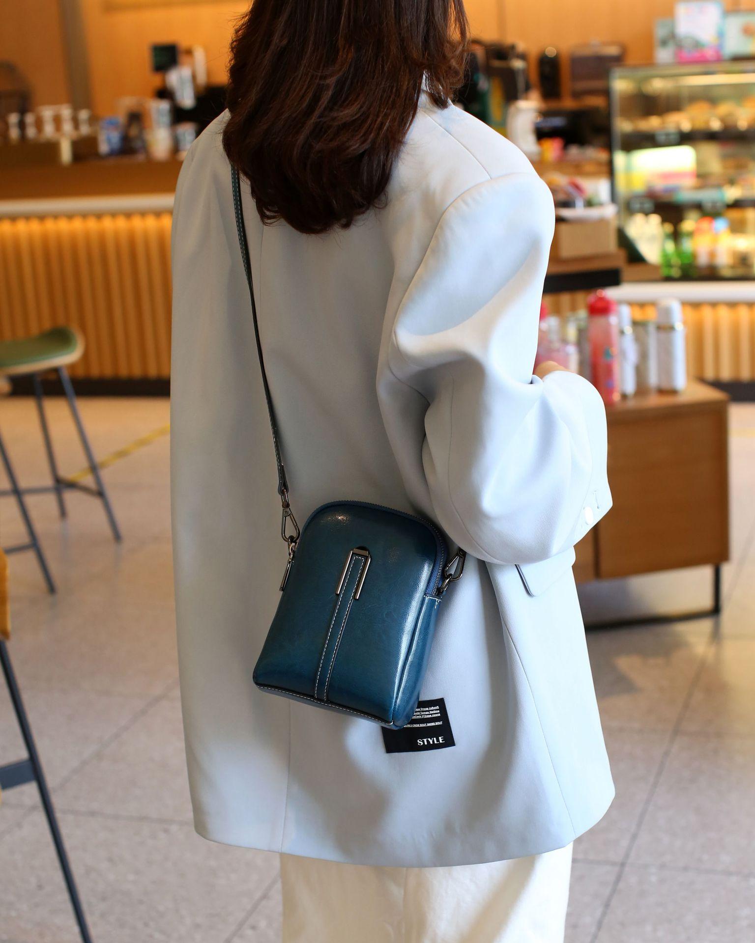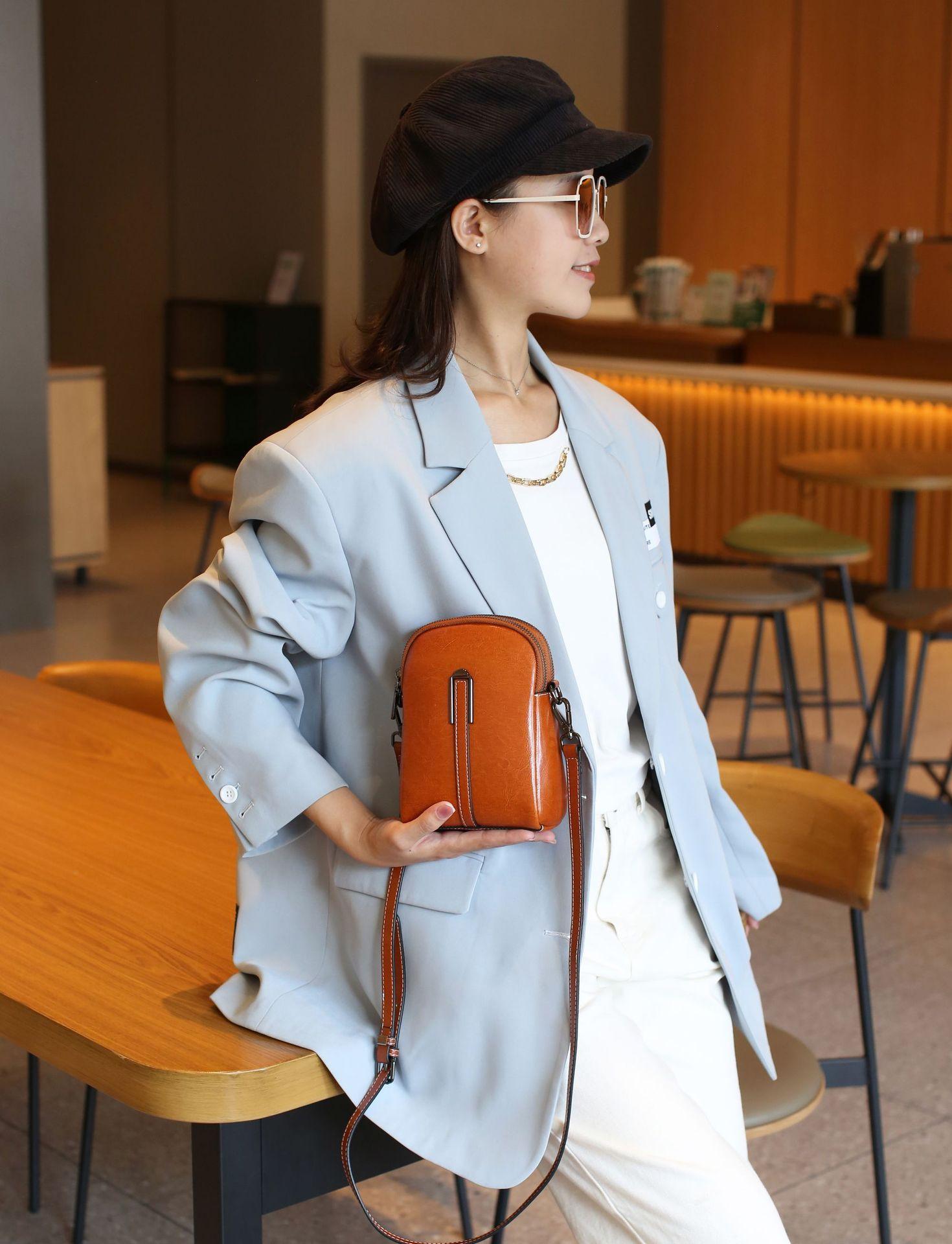 Bolso para teléfono de piel de vaca encerada al aceite de un solo hombro.