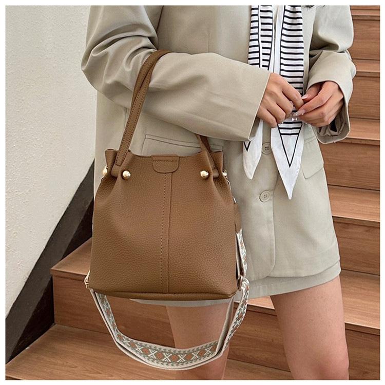 Compra Bolso Balde de Textura Simple Coreano 2025 Nuevo Estilo Commuter de Alta Gama de Un Solo Hombro Cruzado Bolso de Mano para Mujer al por mayor en Joom.pro