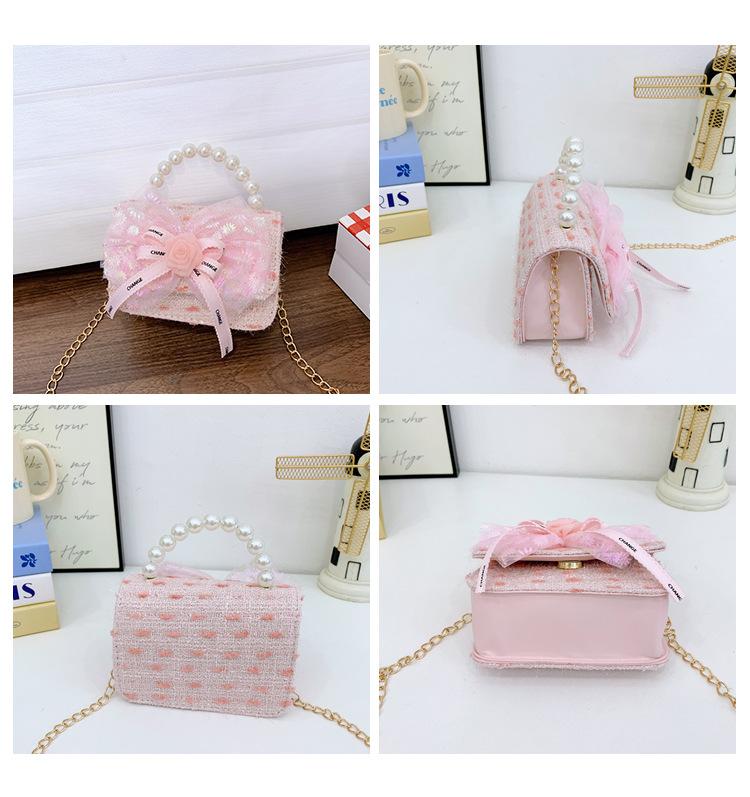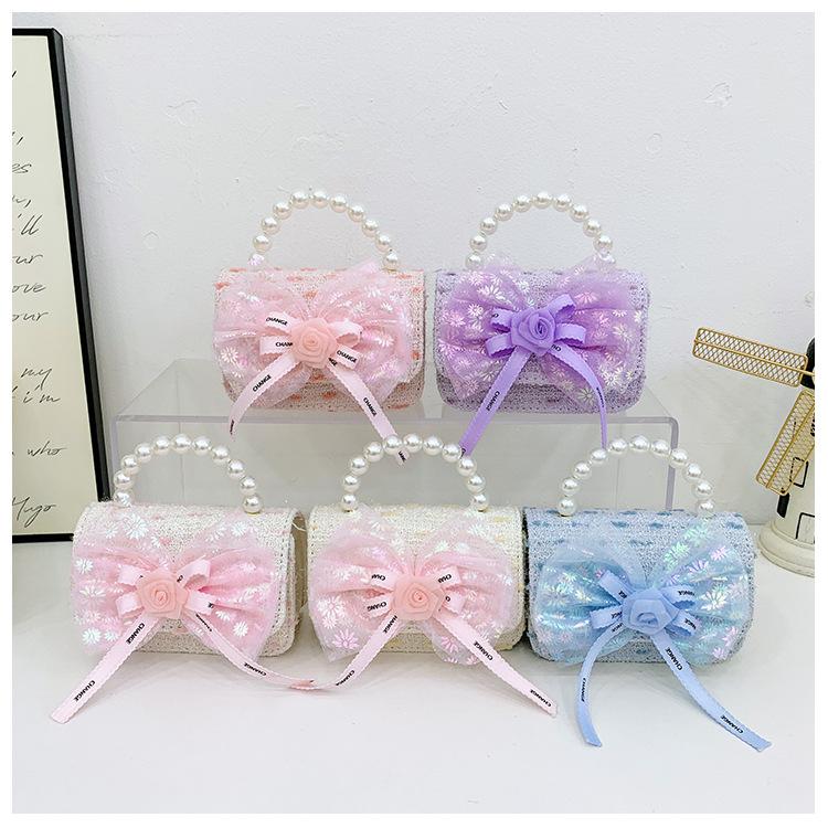 Bolsa de Lazo para Niños Verano Rosa Bolso Cruzado Niñas Perla de Mano Princesa Bolso Monedero Pequeño Fragancia