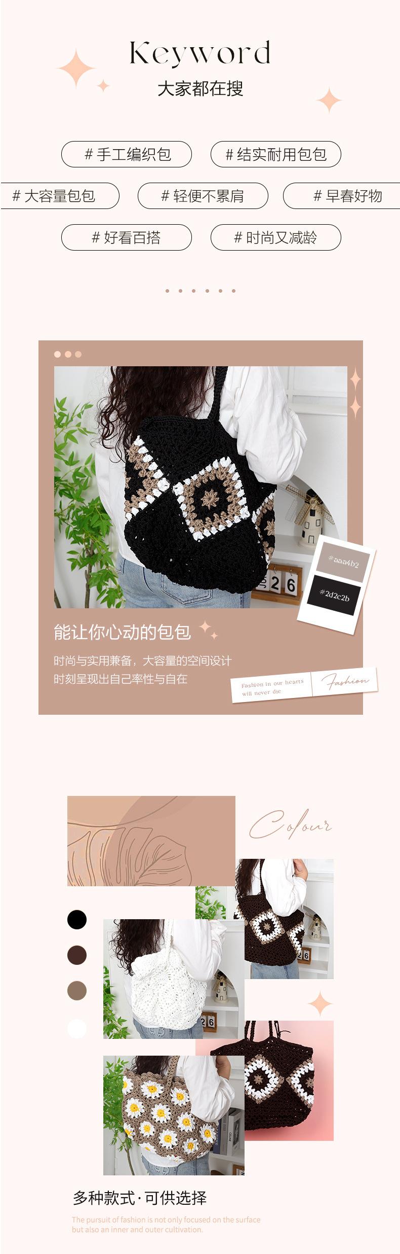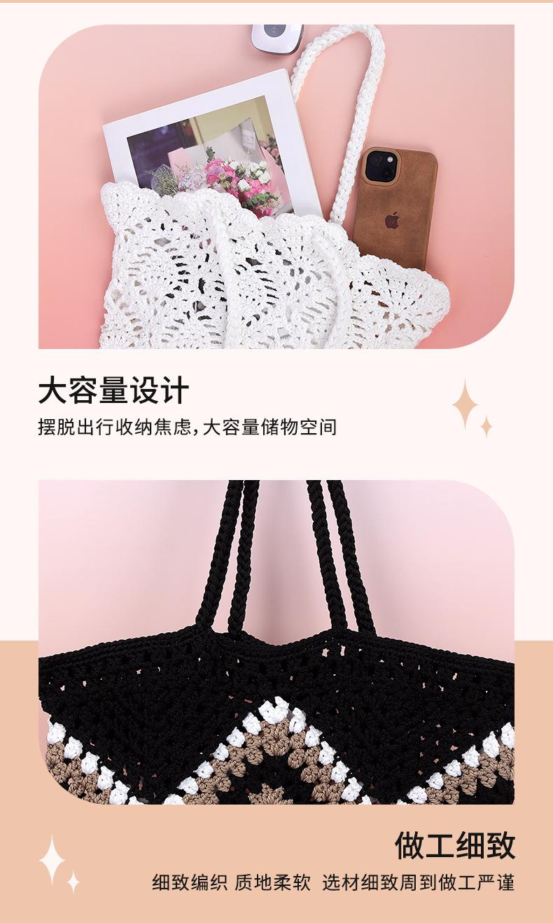 Bolso de Moda de Verano para Mujer Bolso de Paja Bolso de Playa Gran Capacidad Tejido Bolso de Mujer Artístico Casual Joker