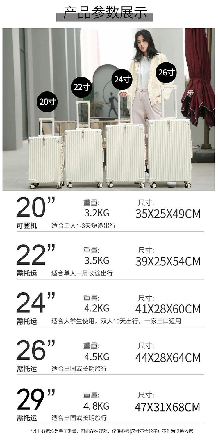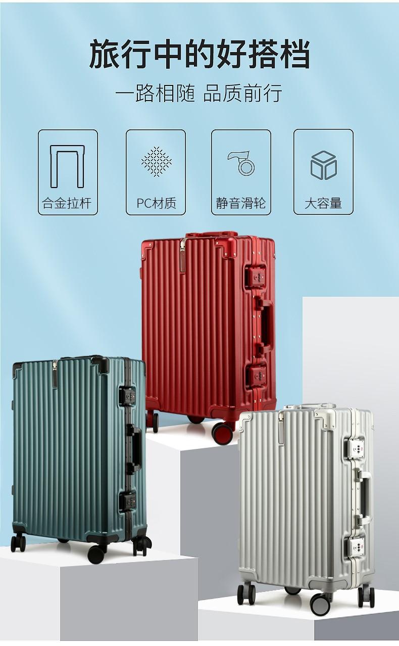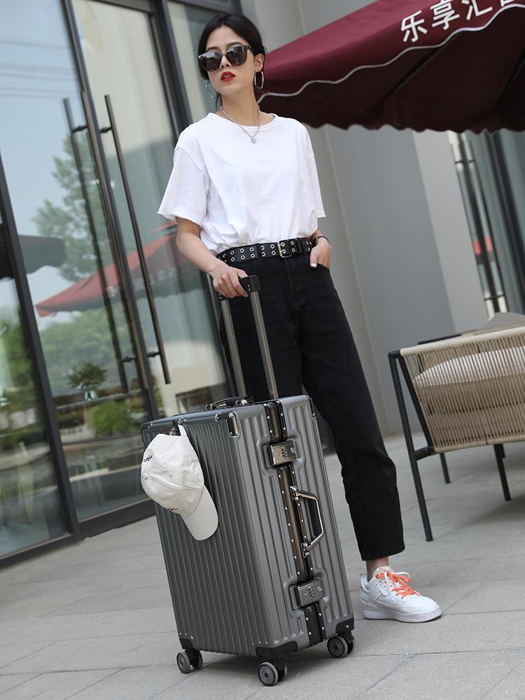 Maleta de alto valor para mujer de 20 pulgadas, maleta trolley de viaje para hombre de 28 pulgadas con contraseña, maleta de 24 pulgadas de gran capacidad con cremallera, caja con marco de aluminio, celebridad de Internet, ins, maleta de mano