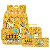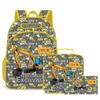 2025 Nueva Excavadora Infantil Mochila Escolar para Estudiantes Poliéster Estuche Largo para Lápices Cuadrado Amarillo Bolsa Aislante para Alimentos Set de Tres Piezas
