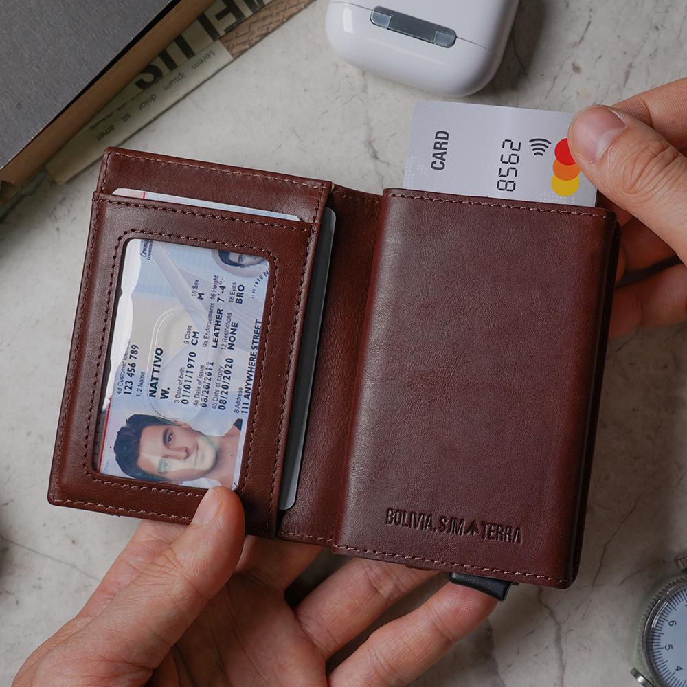 Cartera de piel de vaca RFID personalizada 2024 Amazon Nuevo Más Vendido para Hombre Cuero Genuino Tarjetero