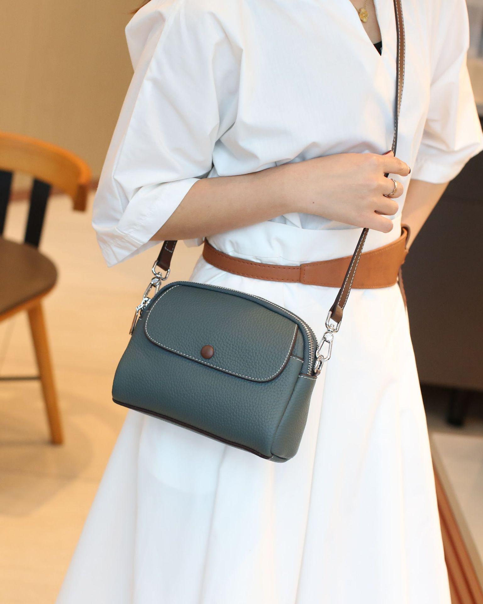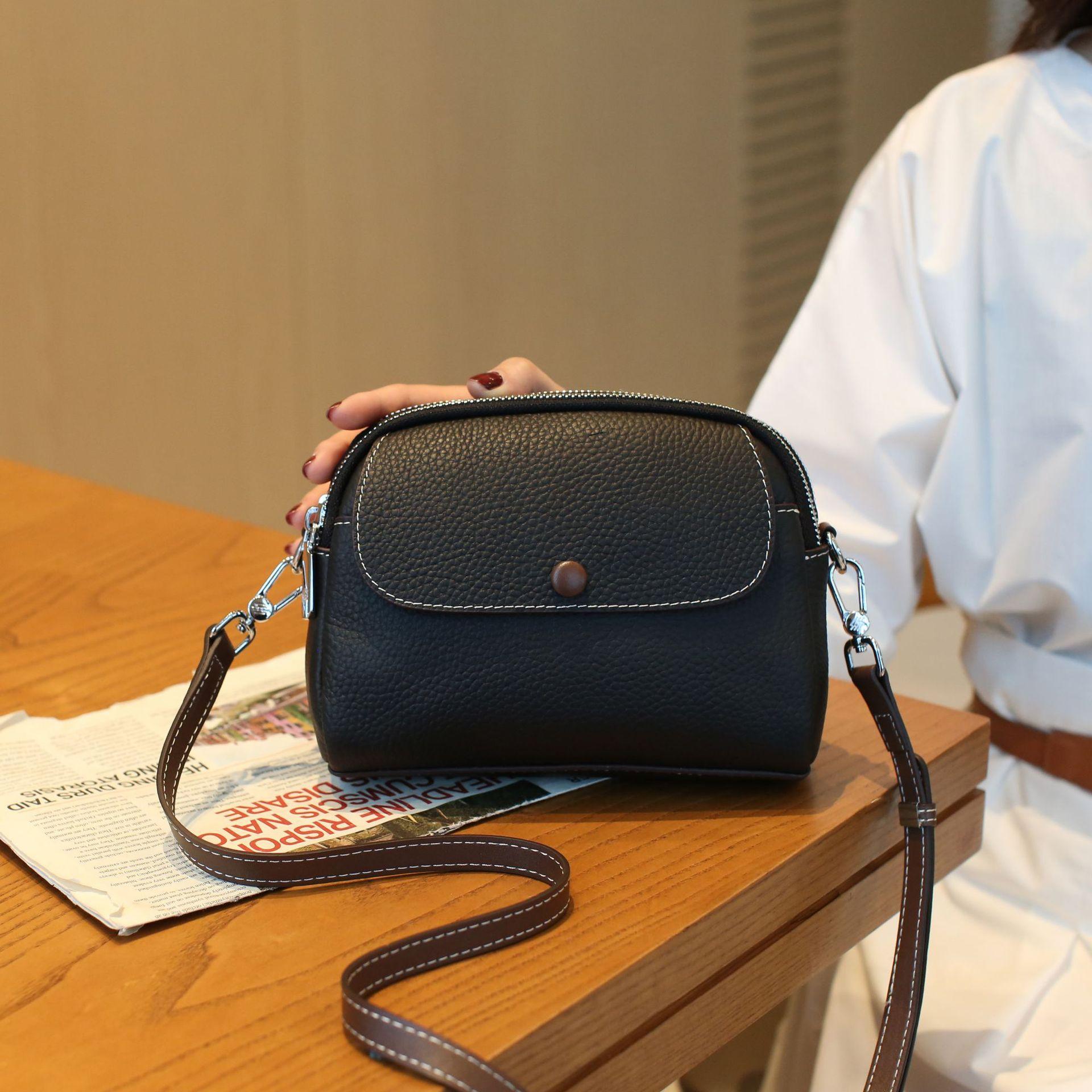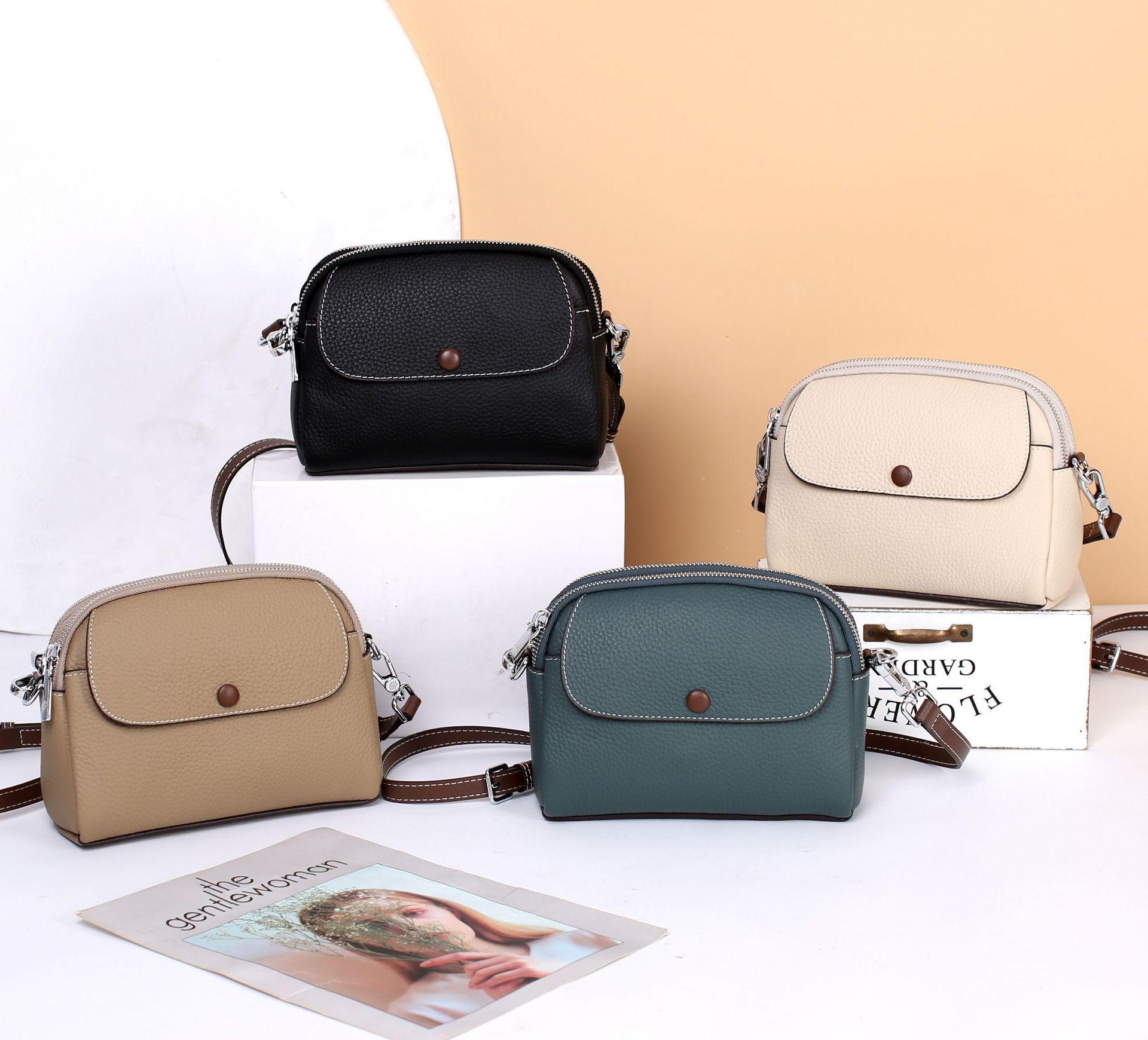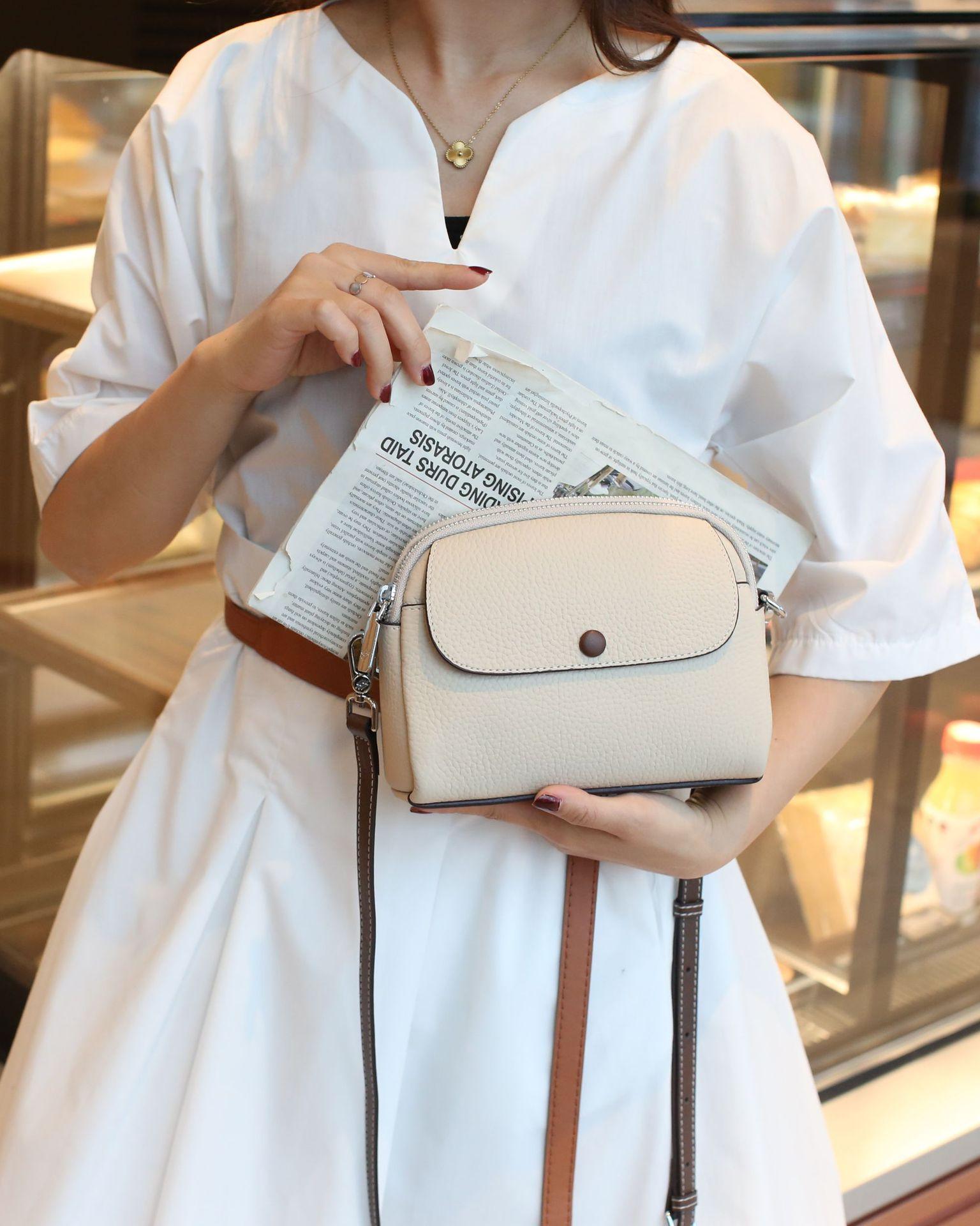 Bolso de mujer de piel de vaca de primera capa, bolso de hombro cruzado para mujer, práctico con múltiples compartimentos, monedero con contraste de color, bolso con forma de concha