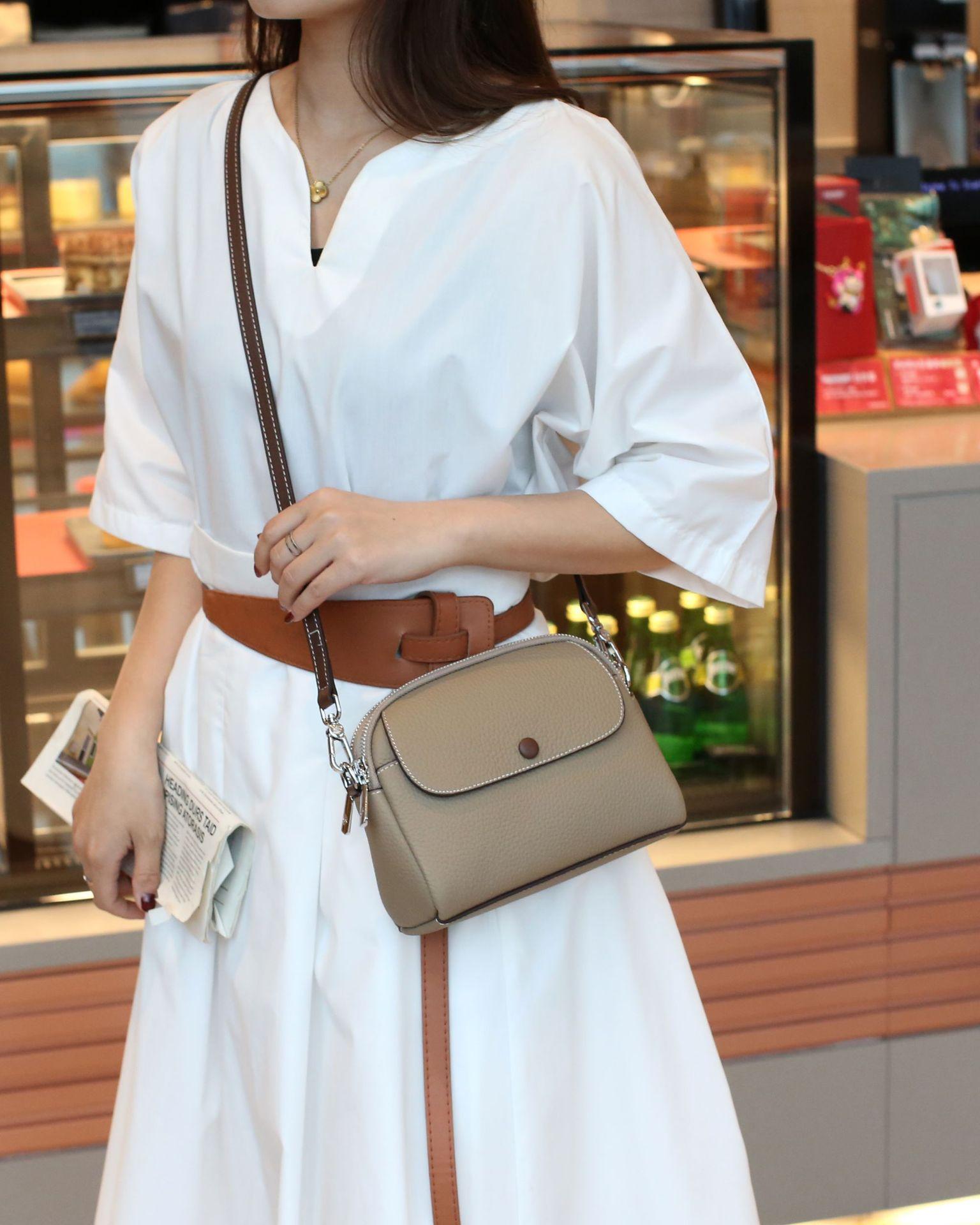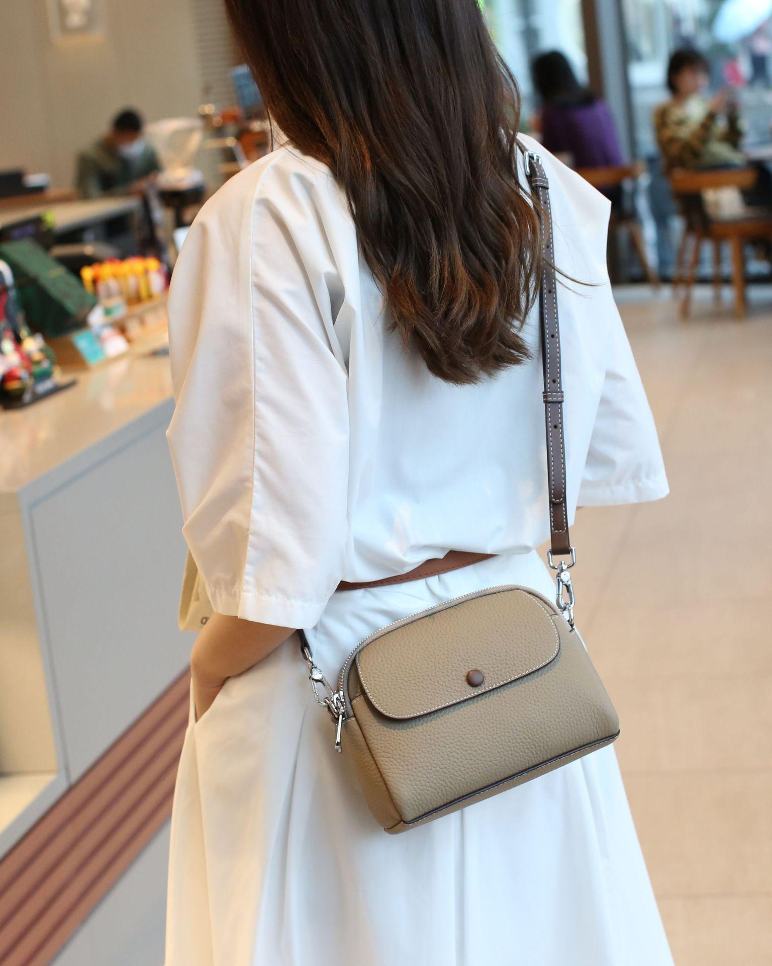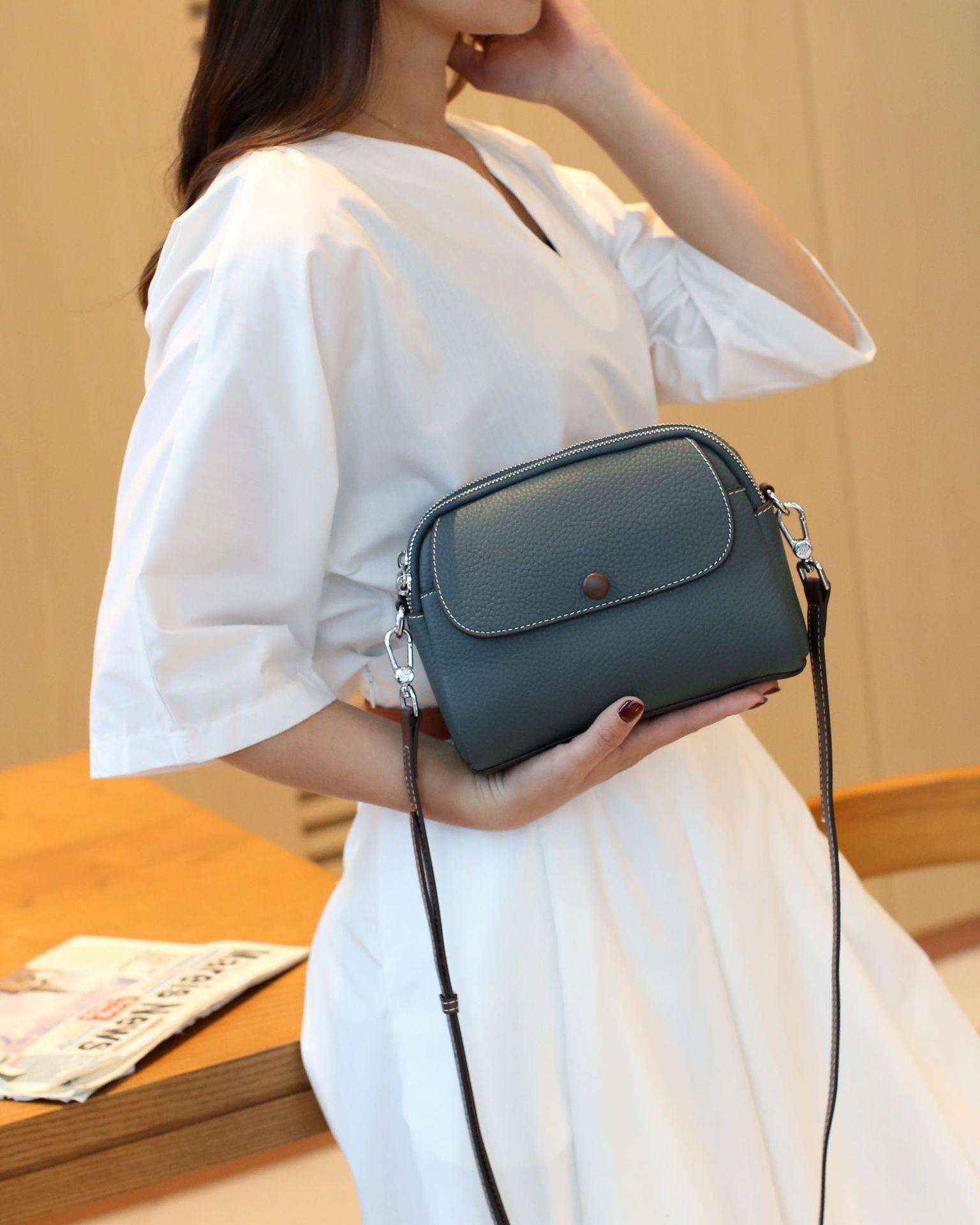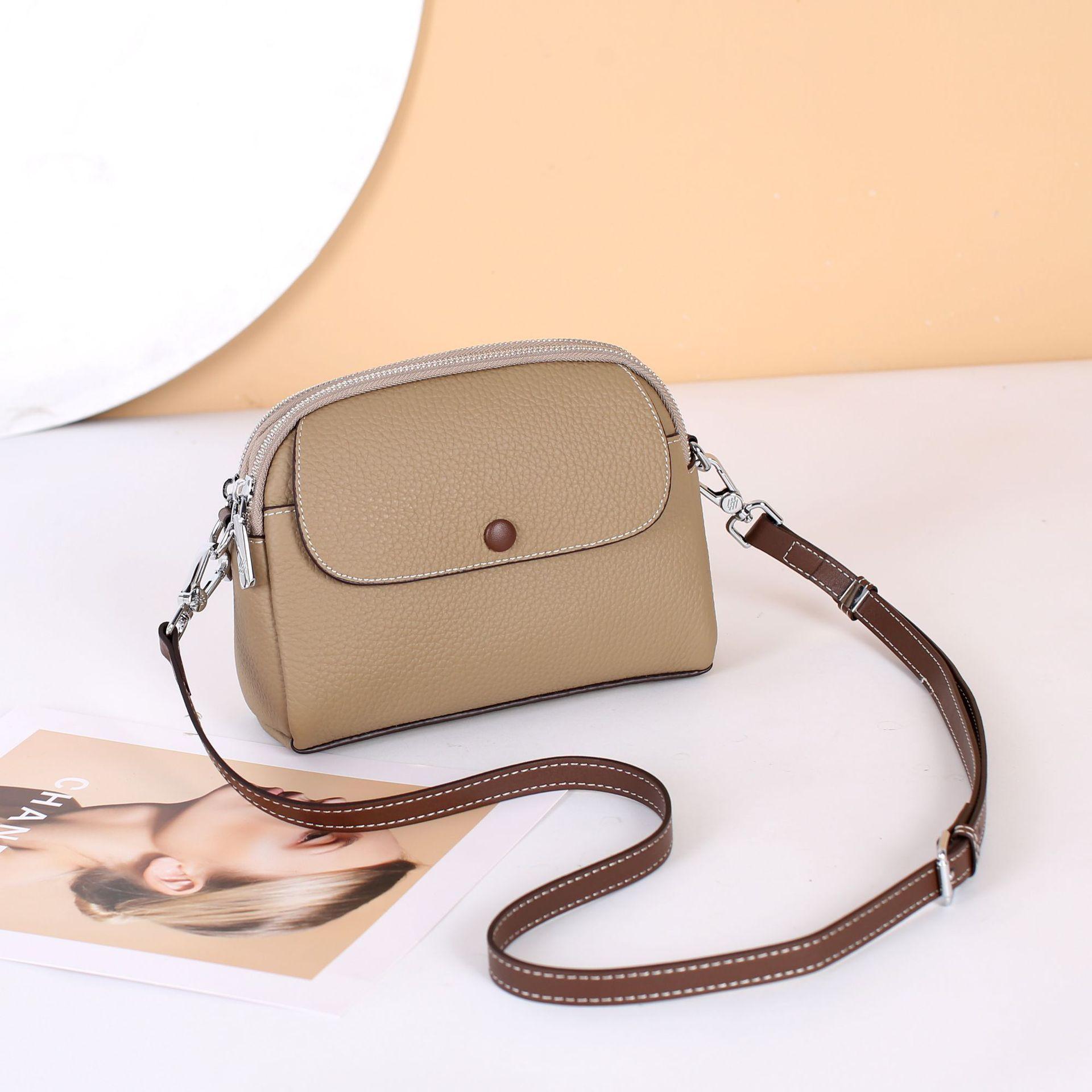 Bolso de mujer de piel de vaca de primera capa, bolso de hombro cruzado para mujer, práctico con múltiples compartimentos, monedero con contraste de color, bolso con forma de concha