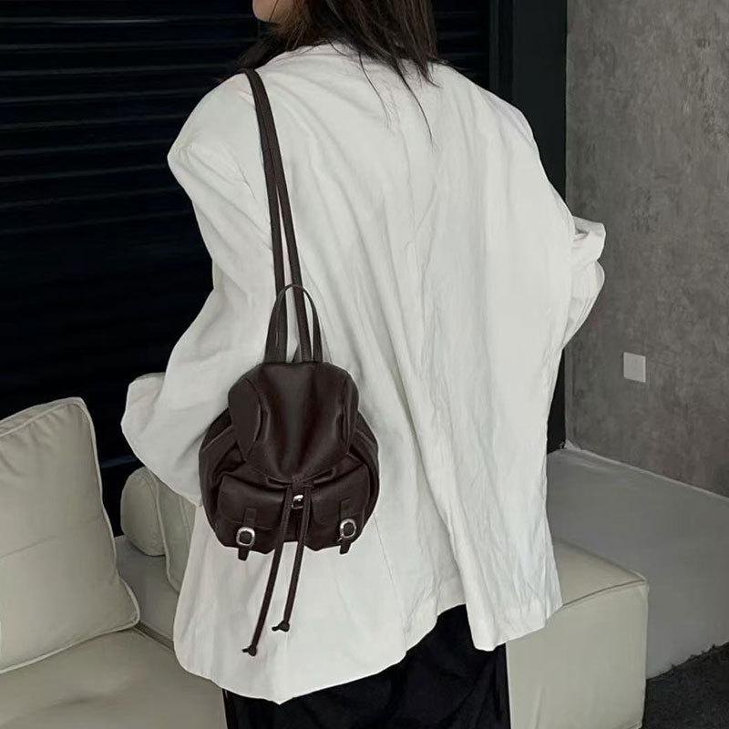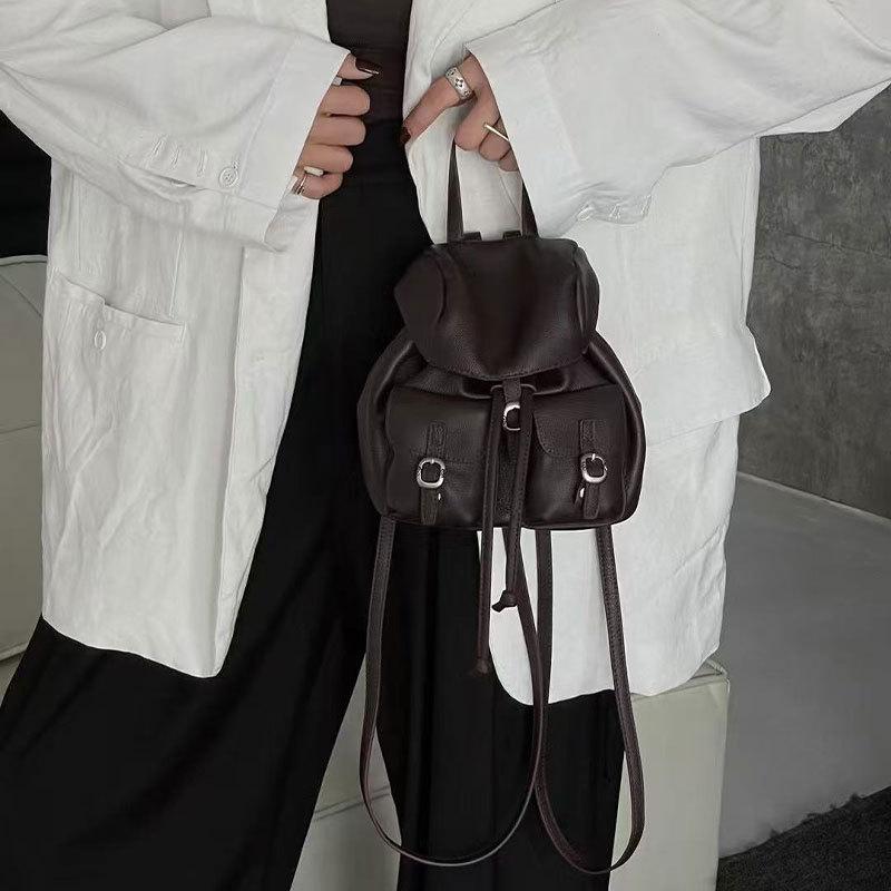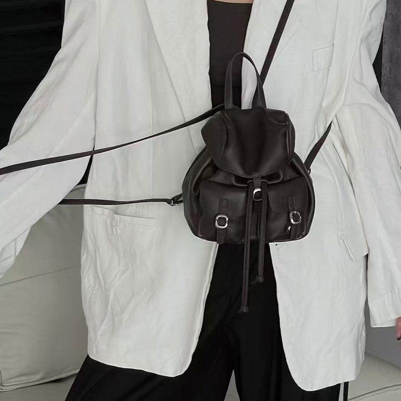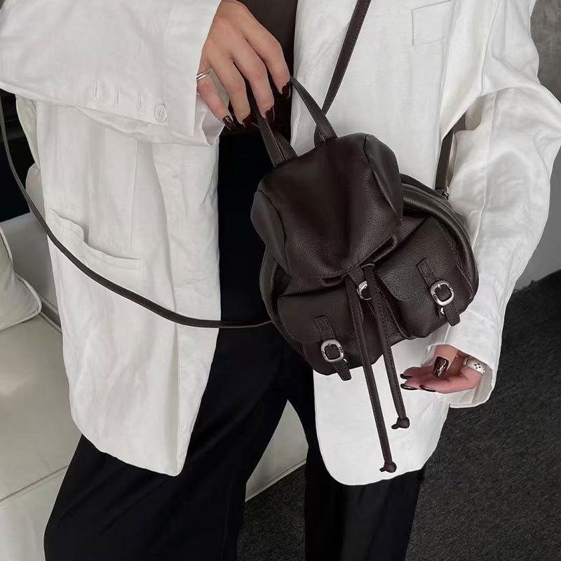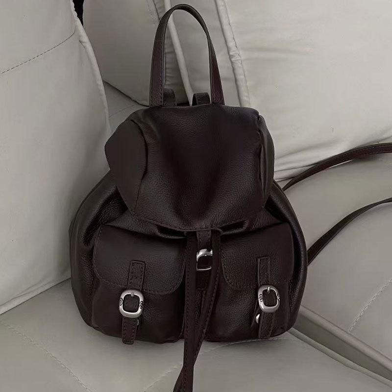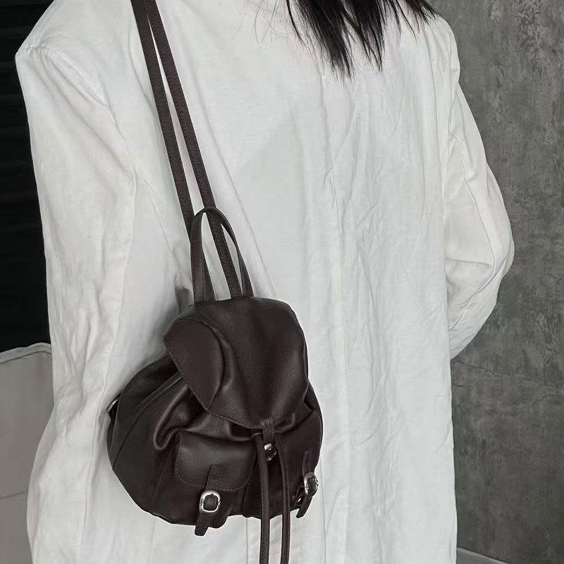 Nuevo Diseño de Mini Mochila de Cuero Bolsillo Doble Solapa Viajero Retro Cuero Vacuno Mochila Pequeña Bolso de Mujer