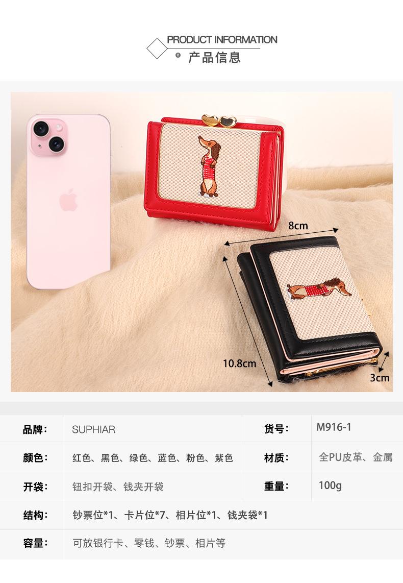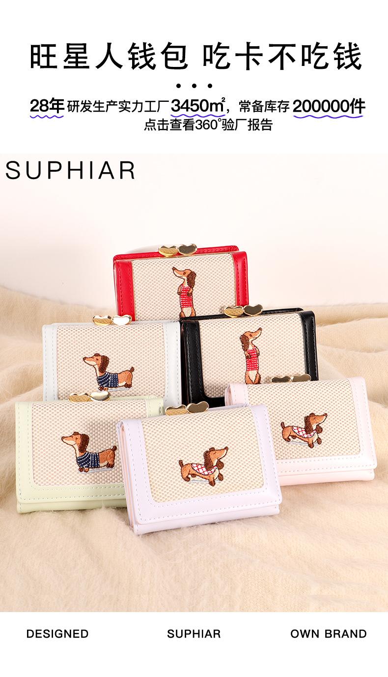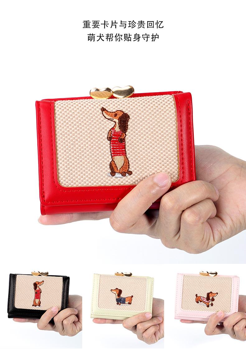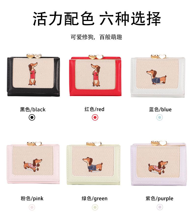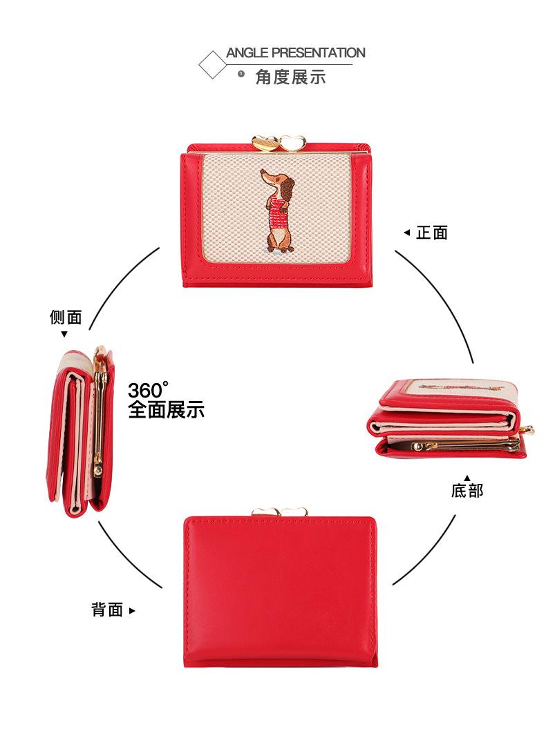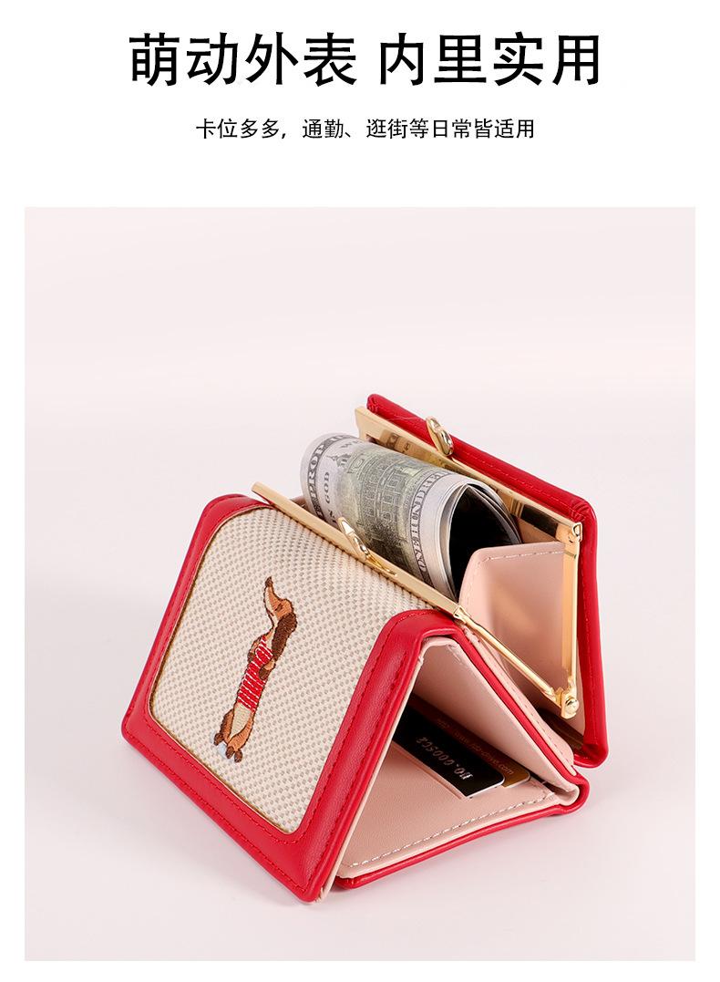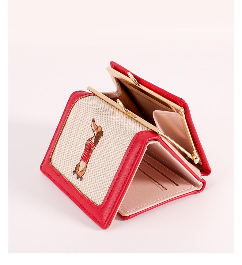 Nuevo Monedero de Cuero PU para Mujer, Estilo Simple y Artístico, Tarjetero, Compacto y Portátil, Cartera de Lona Bordada con Dibujos Animados para Mujer