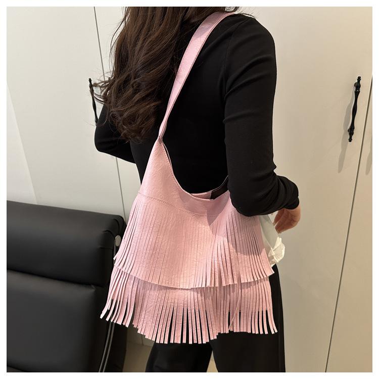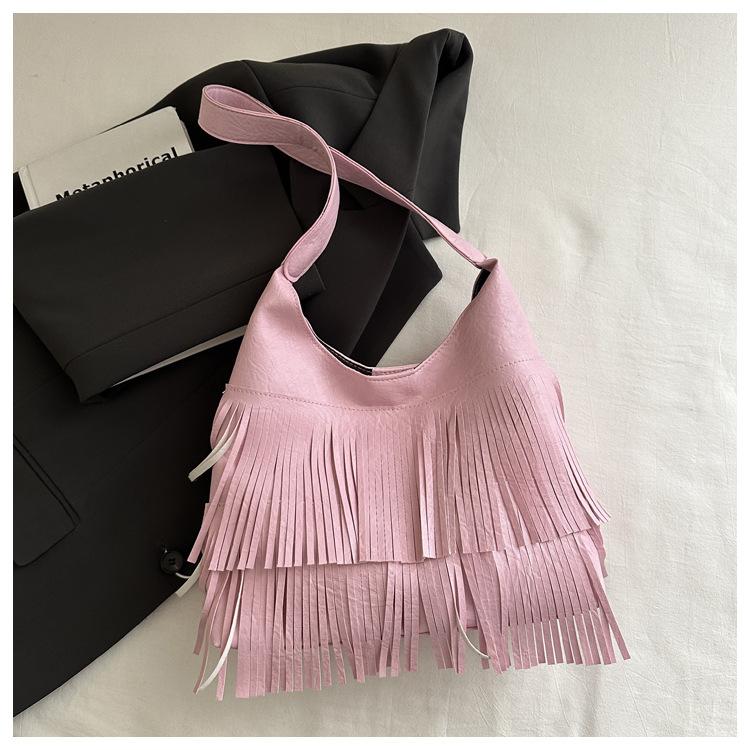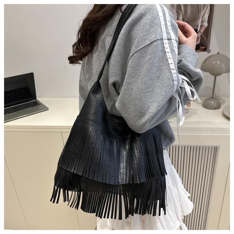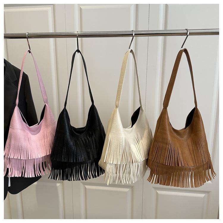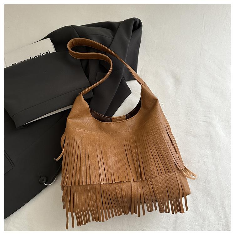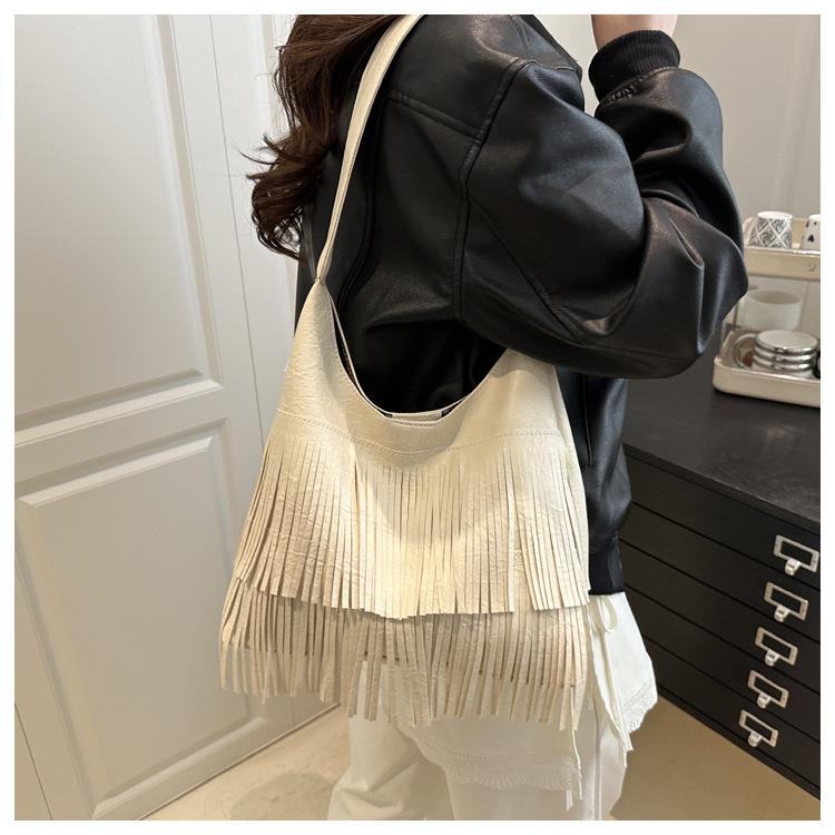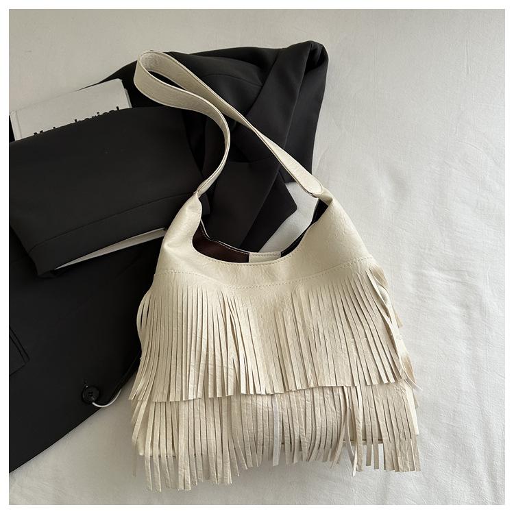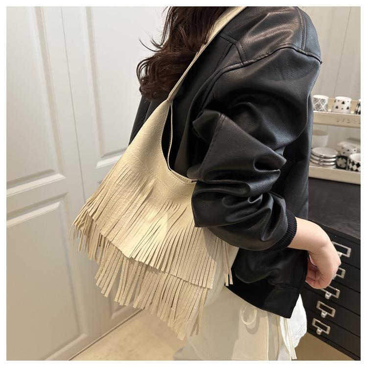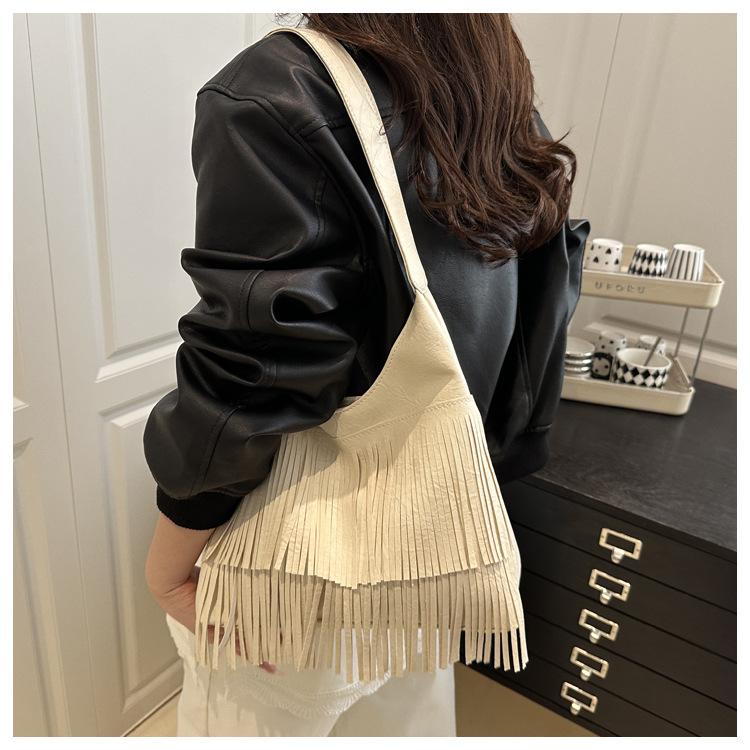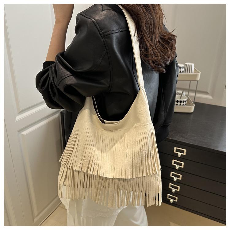 Bolso Bandolera Transfronterizo 2025 Verano Nuevo Bolso de Hombro con Borlas de Moda Retro para Mujer Bolso de Axila Nicho de Moda