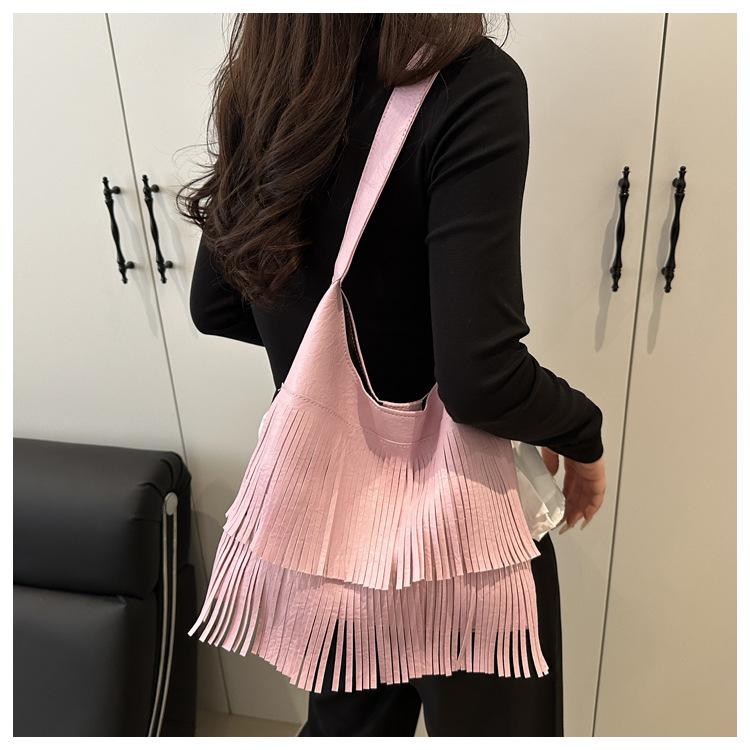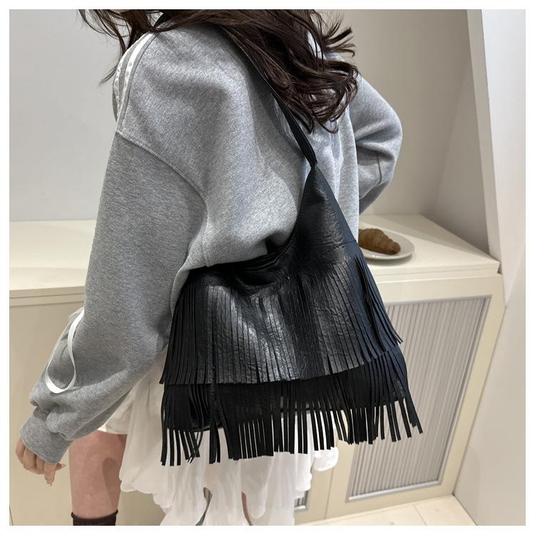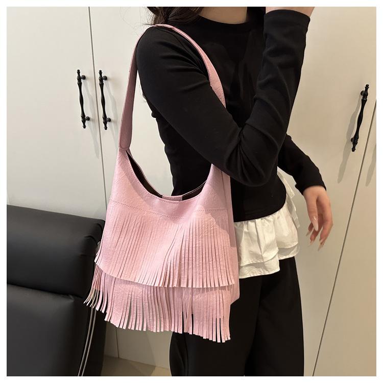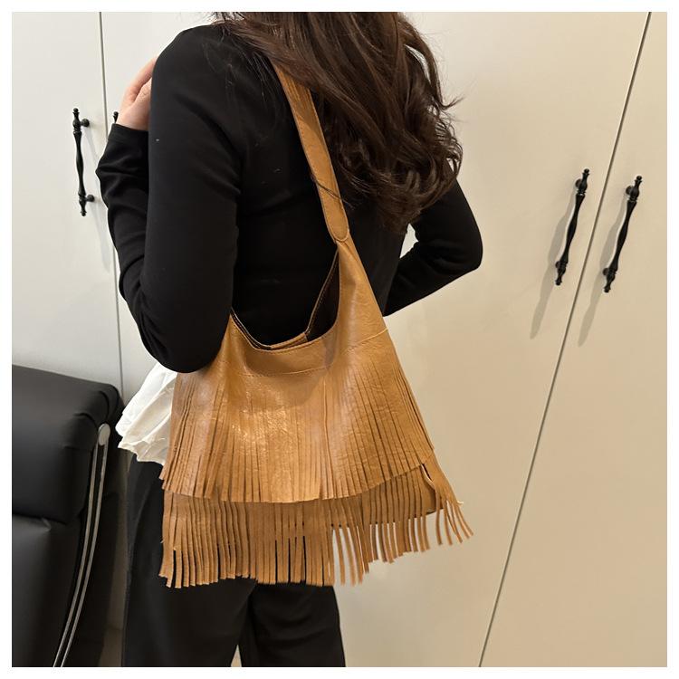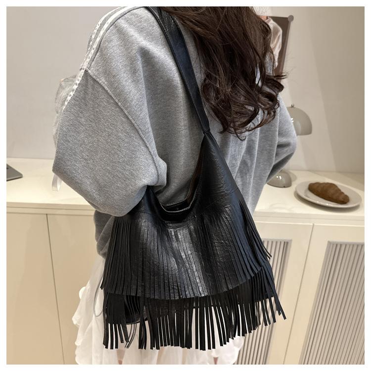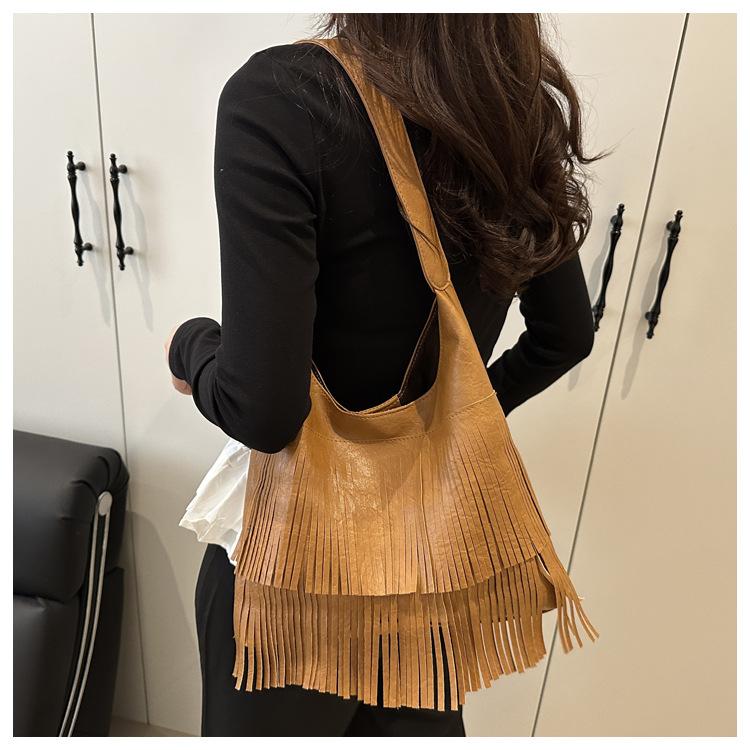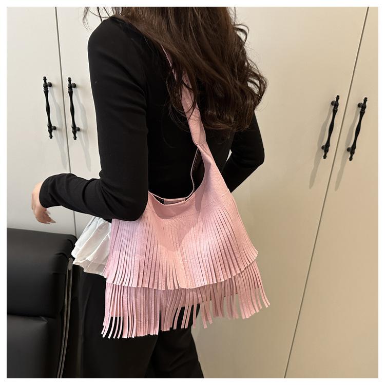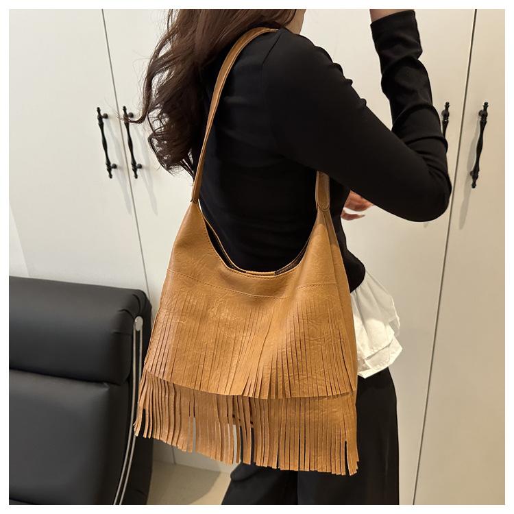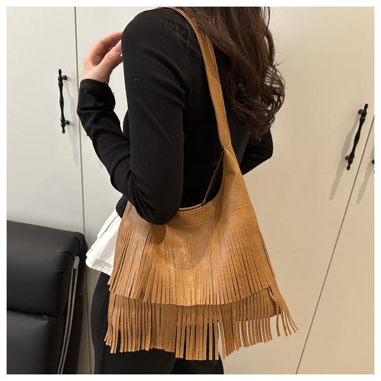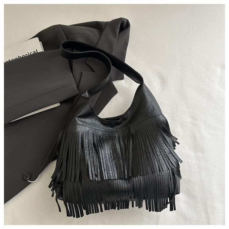 Bolso Bandolera Transfronterizo 2025 Verano Nuevo Bolso de Hombro con Borlas de Moda Retro para Mujer Bolso de Axila Nicho de Moda