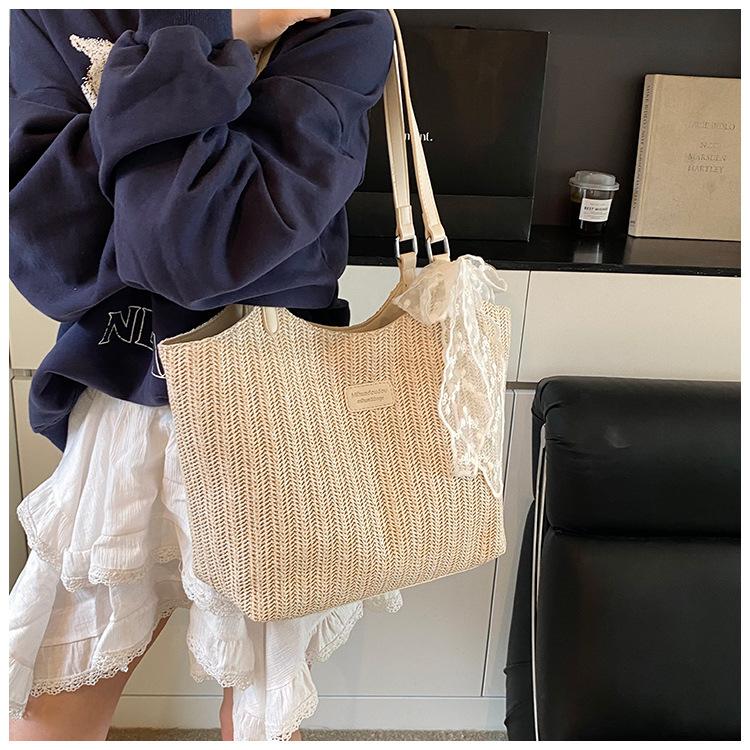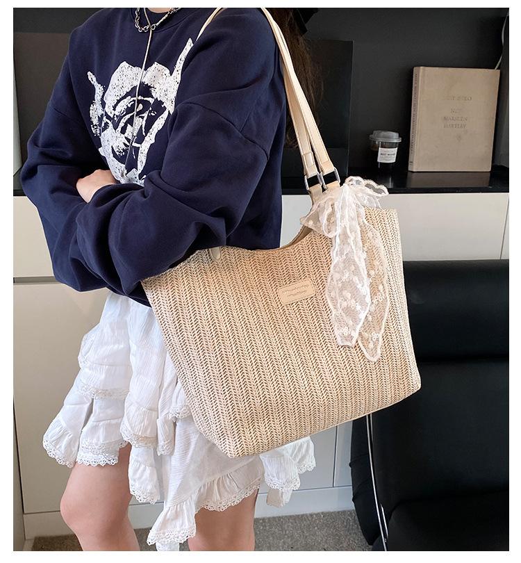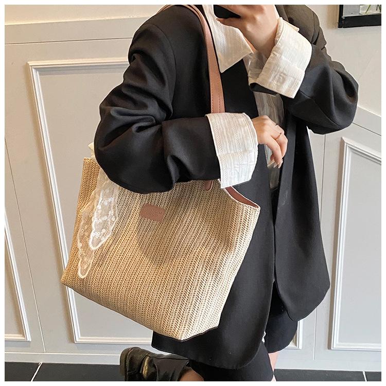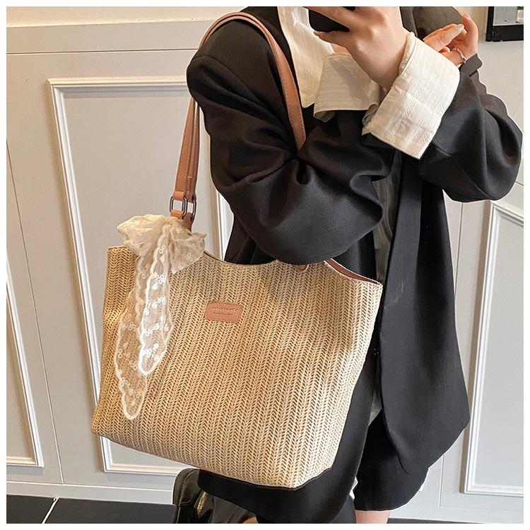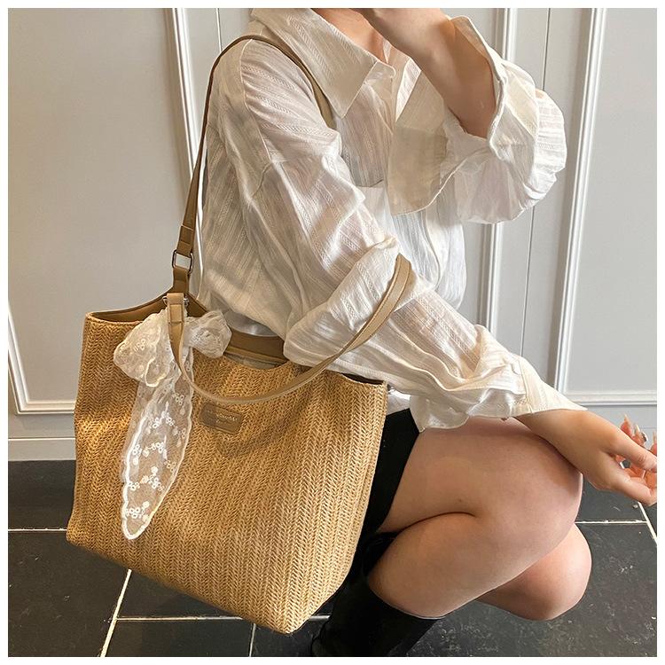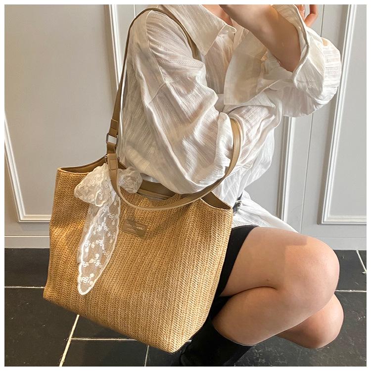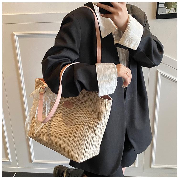 Bolso Tote Retro Tejido 2025 Gran Capacidad Bolso de Paja Moda Europea y Americana Nuevo Bolso de Mujer de Moda Bolso de Hombro