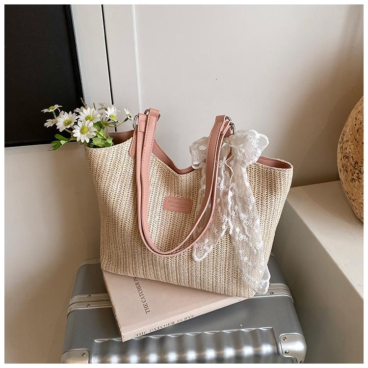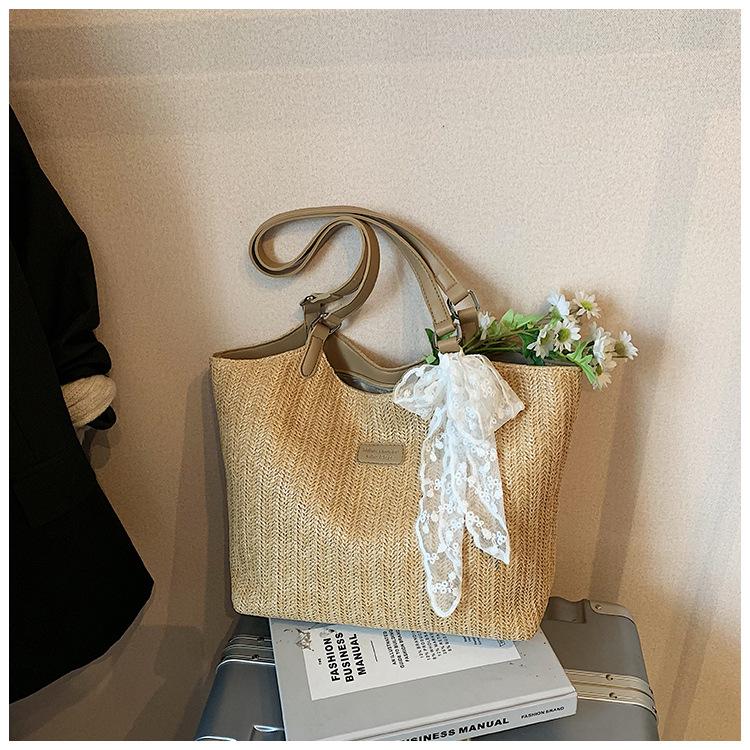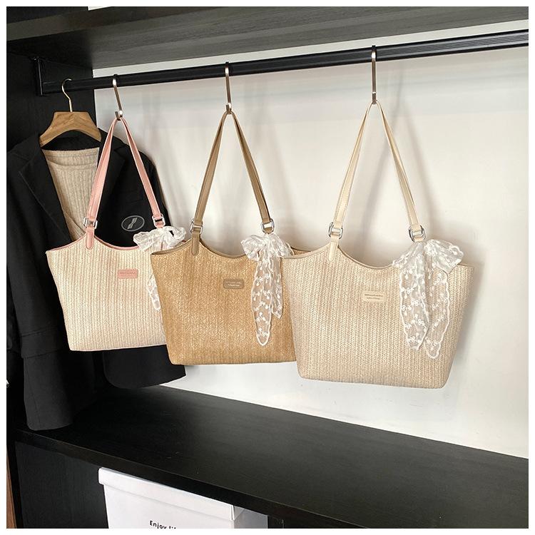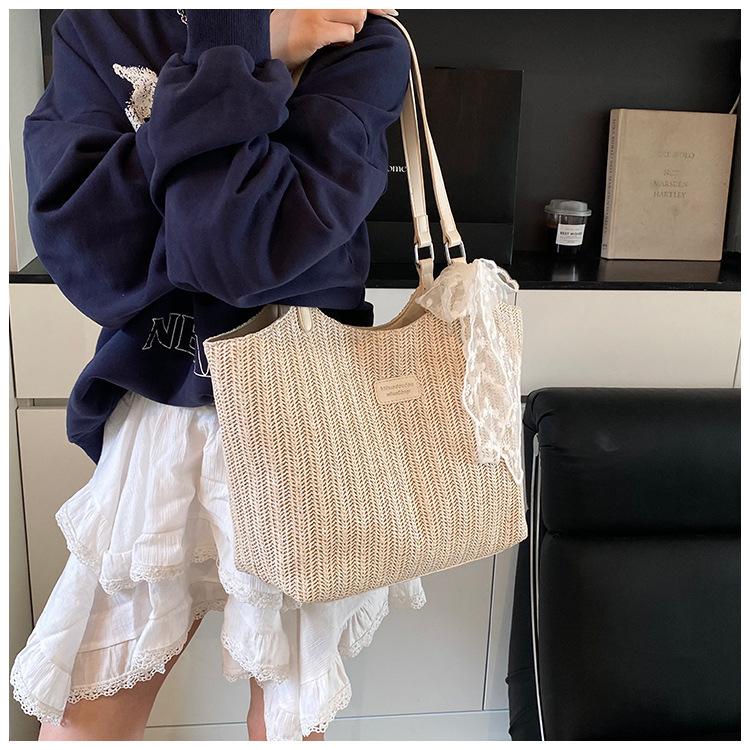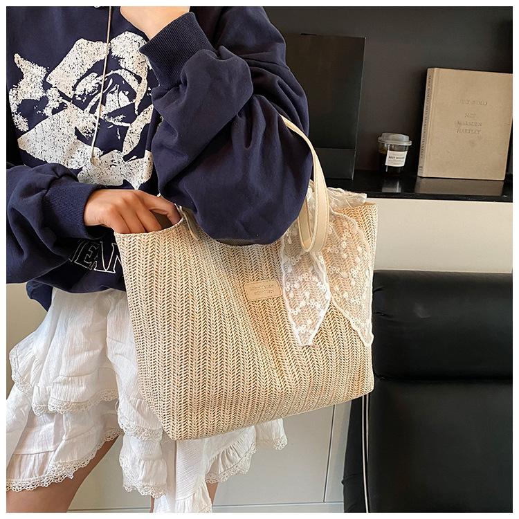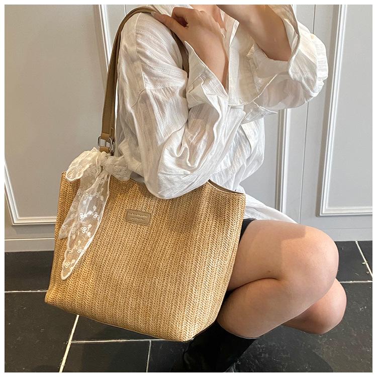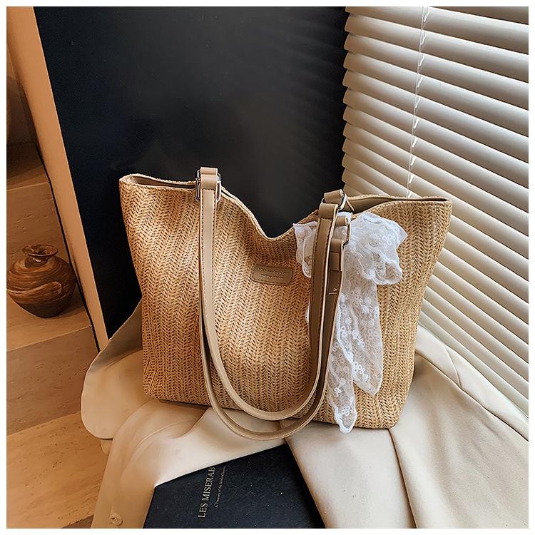 Bolso Tote Retro Tejido 2025 Gran Capacidad Bolso de Paja Moda Europea y Americana Nuevo Bolso de Mujer de Moda Bolso de Hombro