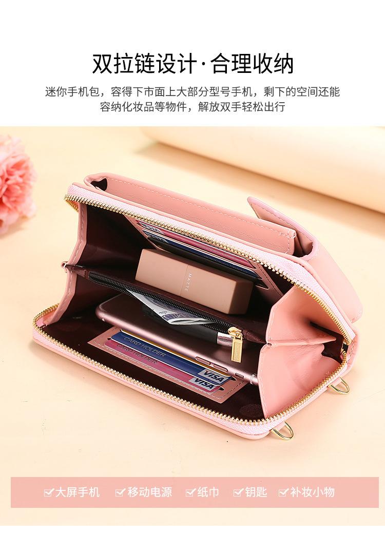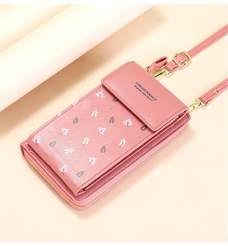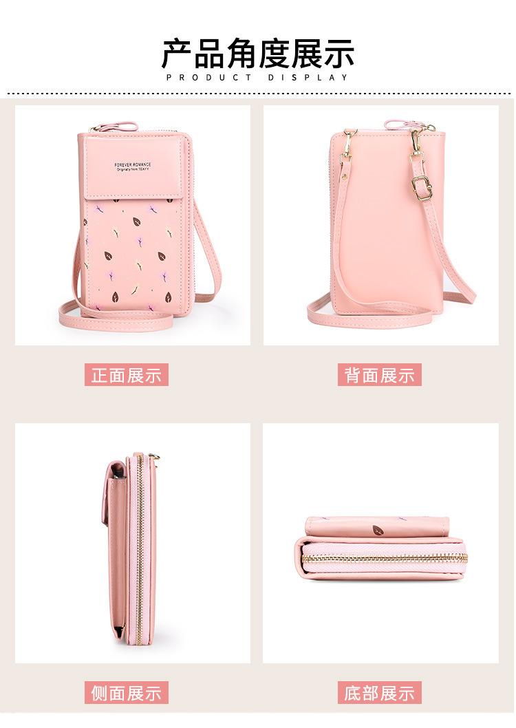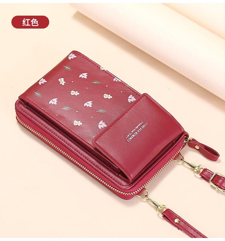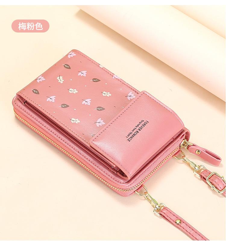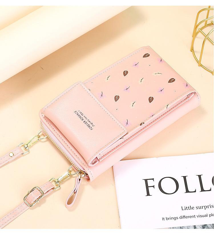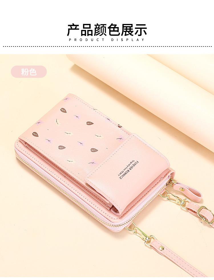 Cartera de Moda para Mujer con Estampado de Color Puro, Estilo Japonés y Coreano, de Cuero PU, Bolso para Teléfono Móvil para Mujer con Almacenamiento Multicapa, Bolso de Hombro