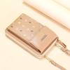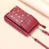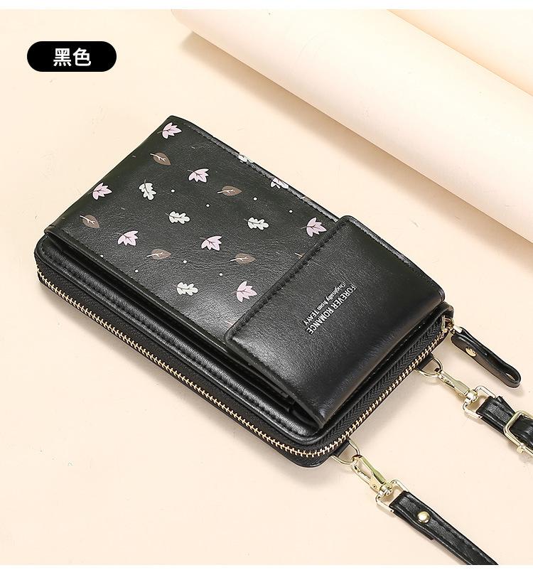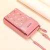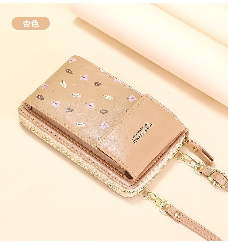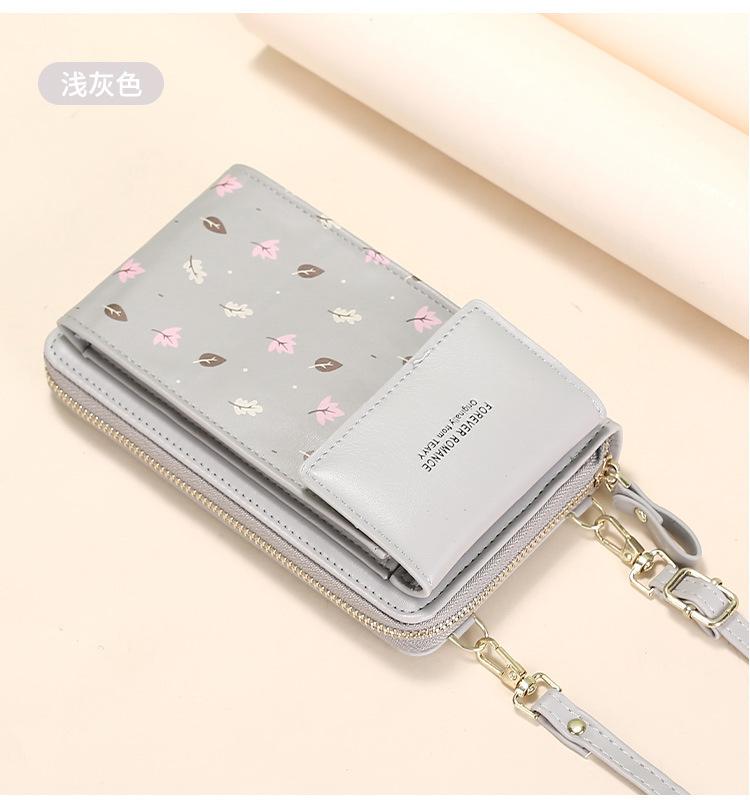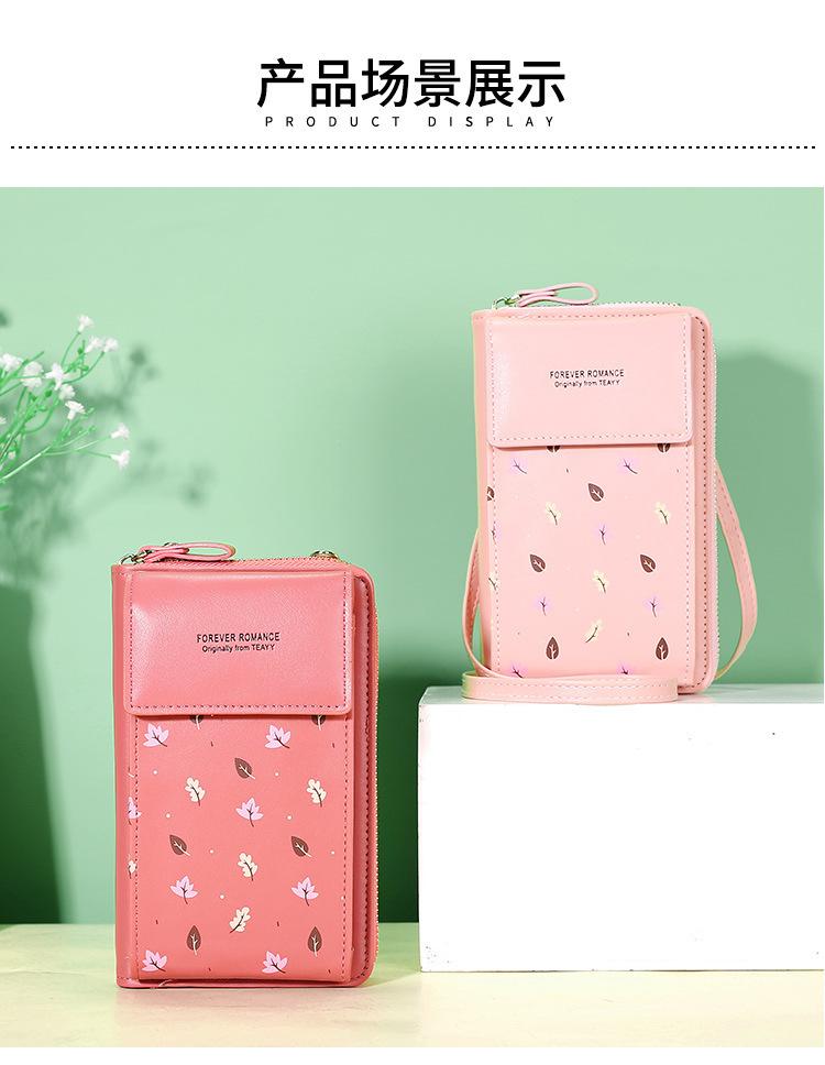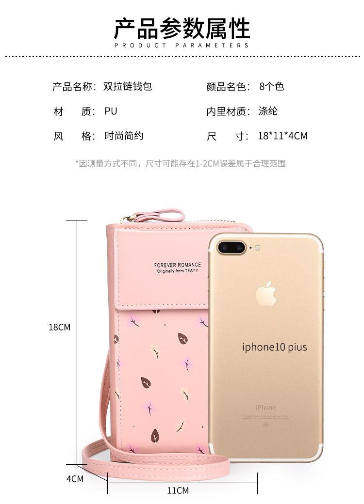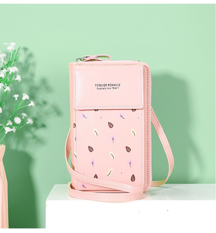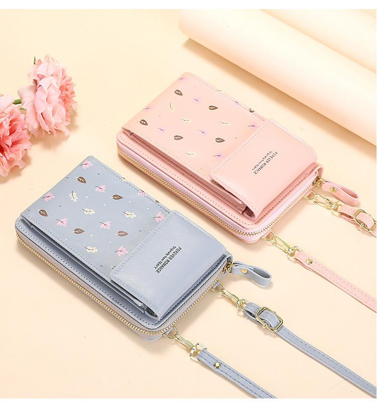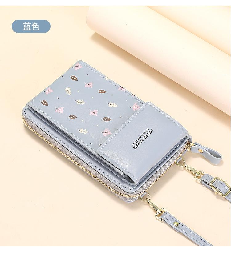 Cartera de Moda para Mujer con Estampado de Color Puro, Estilo Japonés y Coreano, de Cuero PU, Bolso para Teléfono Móvil para Mujer con Almacenamiento Multicapa, Bolso de Hombro