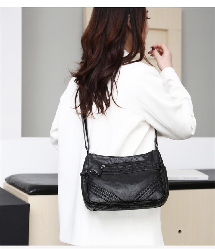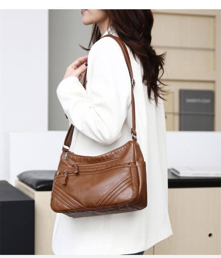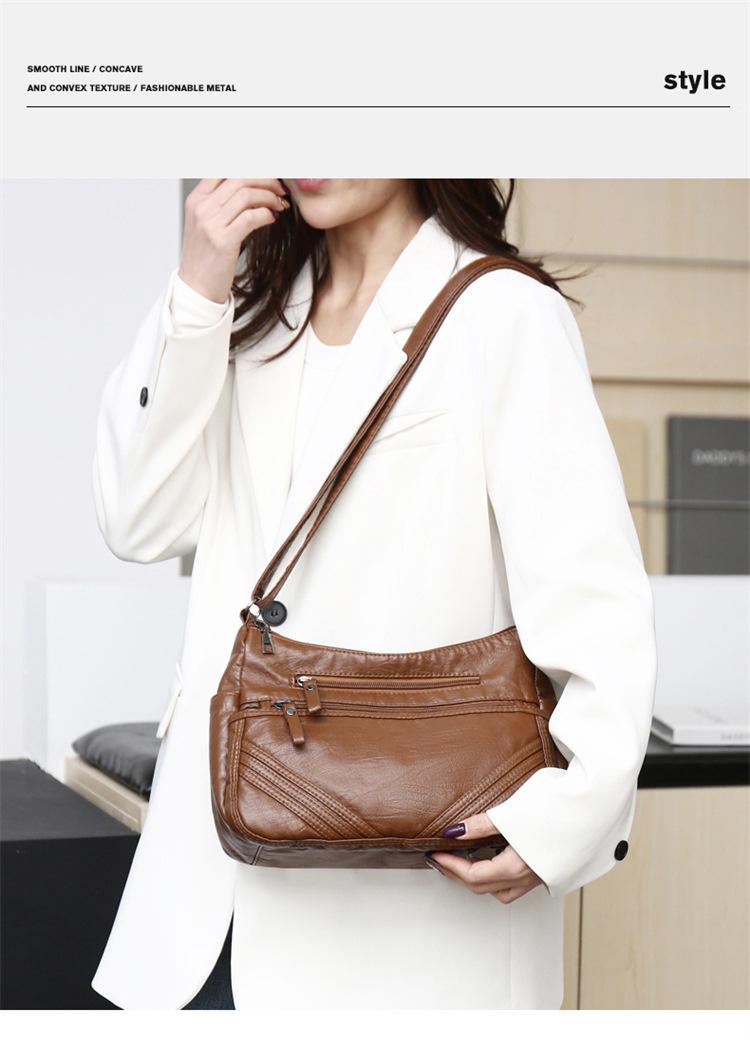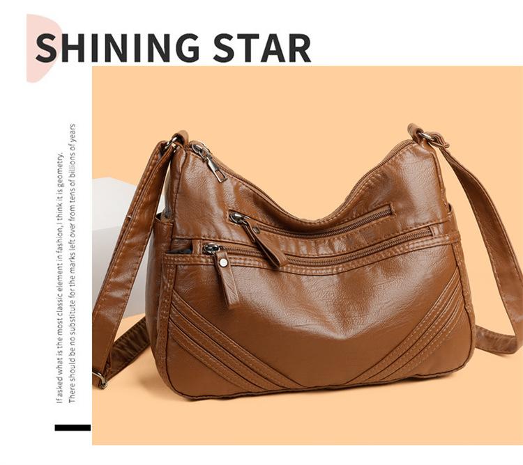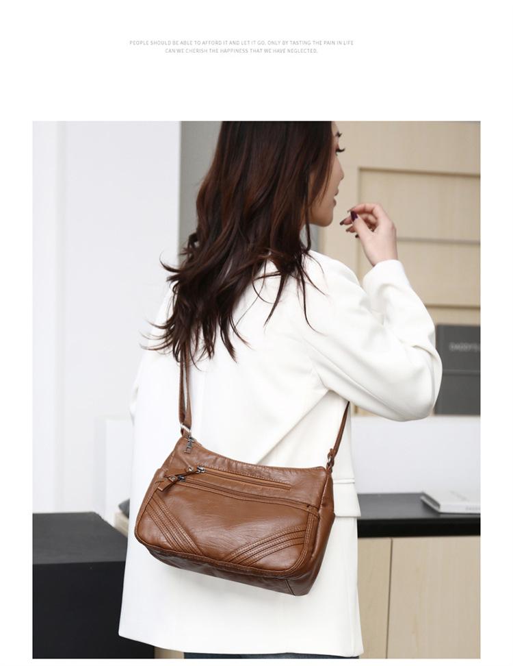 Bolso de Hombro con Cremallera Multicapa Bolso Pequeño para Mujer Bolso Cruzado para Madre Bolso para Teléfono Móvil Bolso para Compras de Mujeres de Mediana Edad Billetera de Cuero Suave Moda