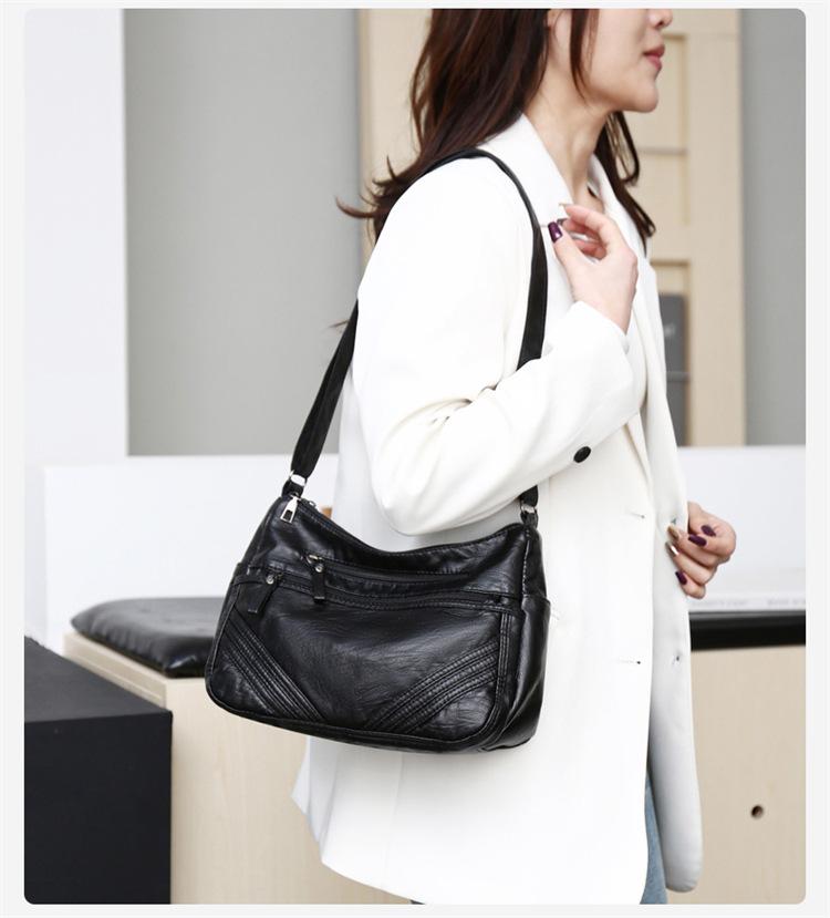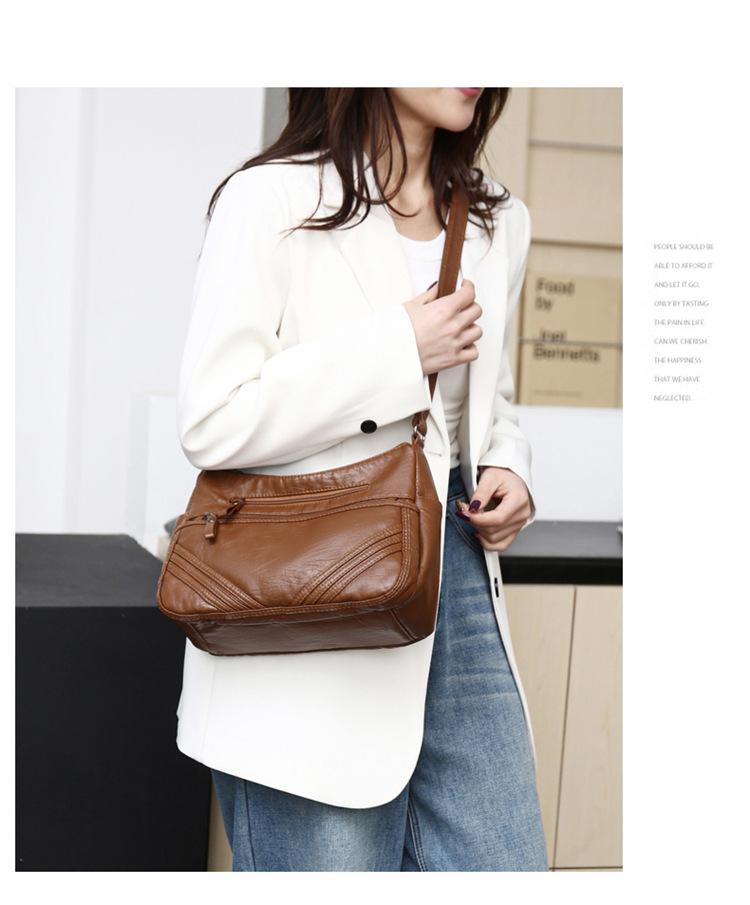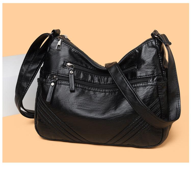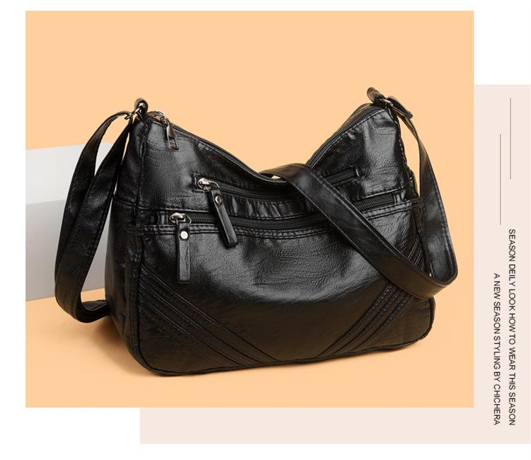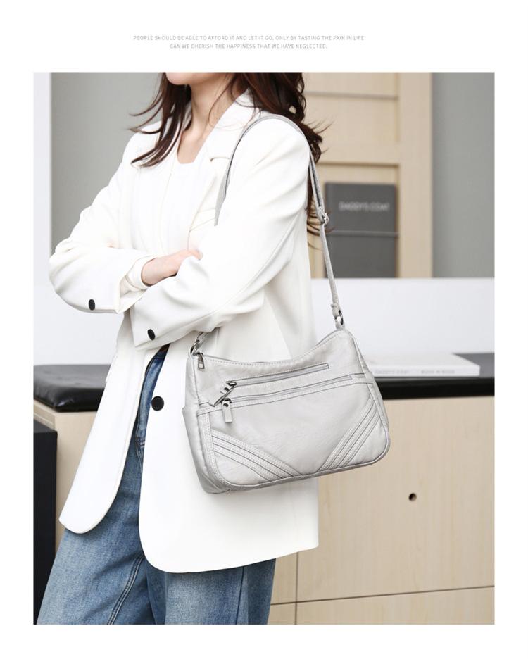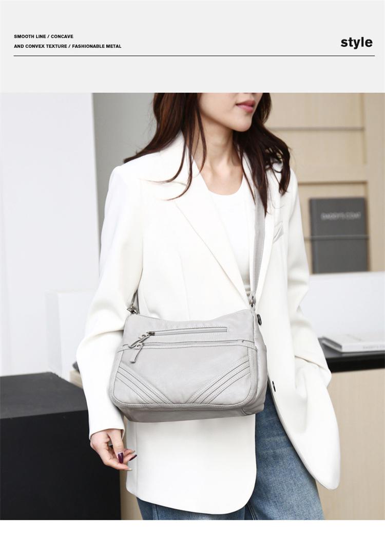 Bolso de Hombro con Cremallera Multicapa Bolso Pequeño para Mujer Bolso Cruzado para Madre Bolso para Teléfono Móvil Bolso para Compras de Mujeres de Mediana Edad Billetera de Cuero Suave Moda
