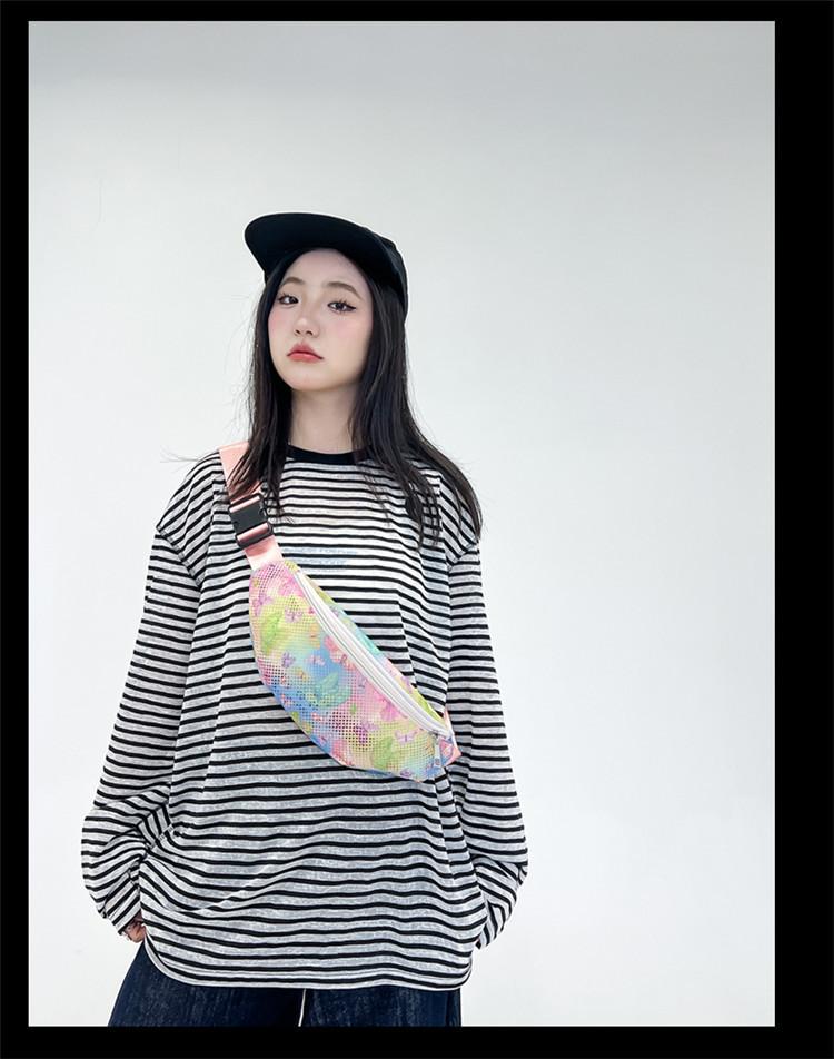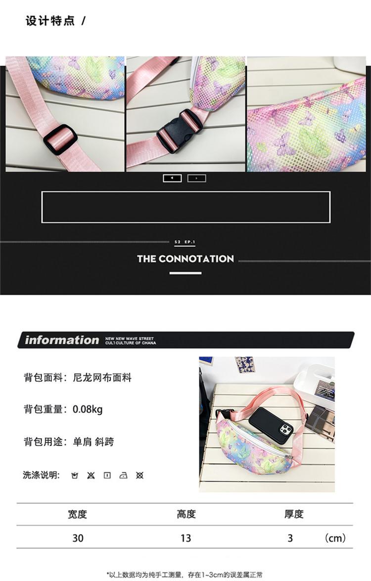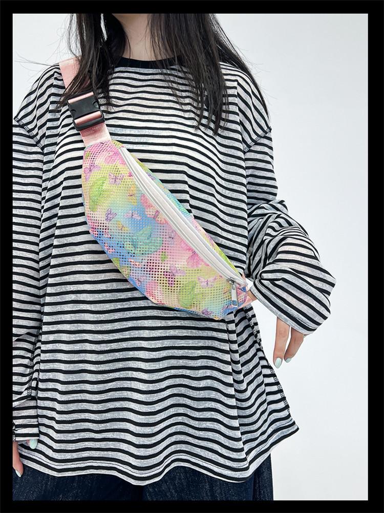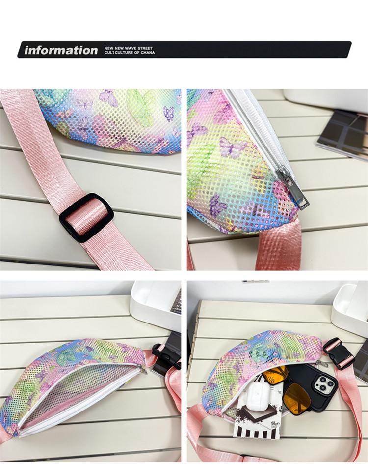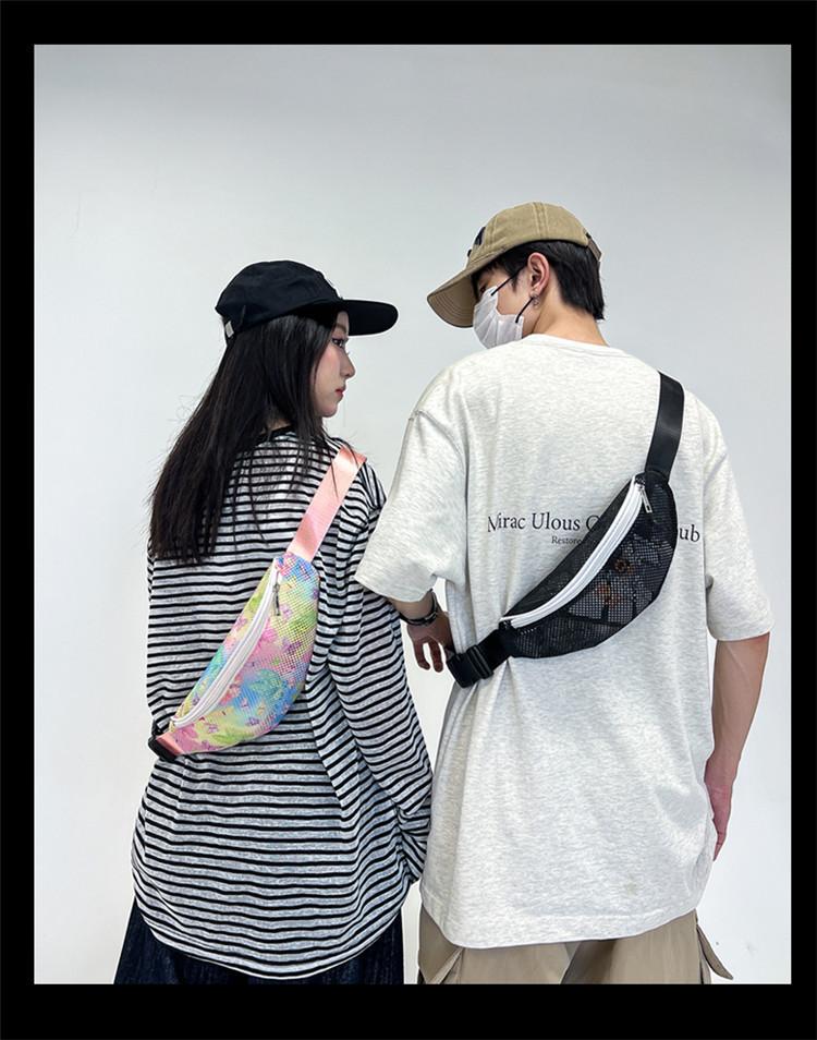 Nueva Tendencia Malla Transpirable Bandolera de Pecho Impresión Hueca Bolsa de Playa Gran Capacidad Senderismo Deportes Ciclismo Riñonera