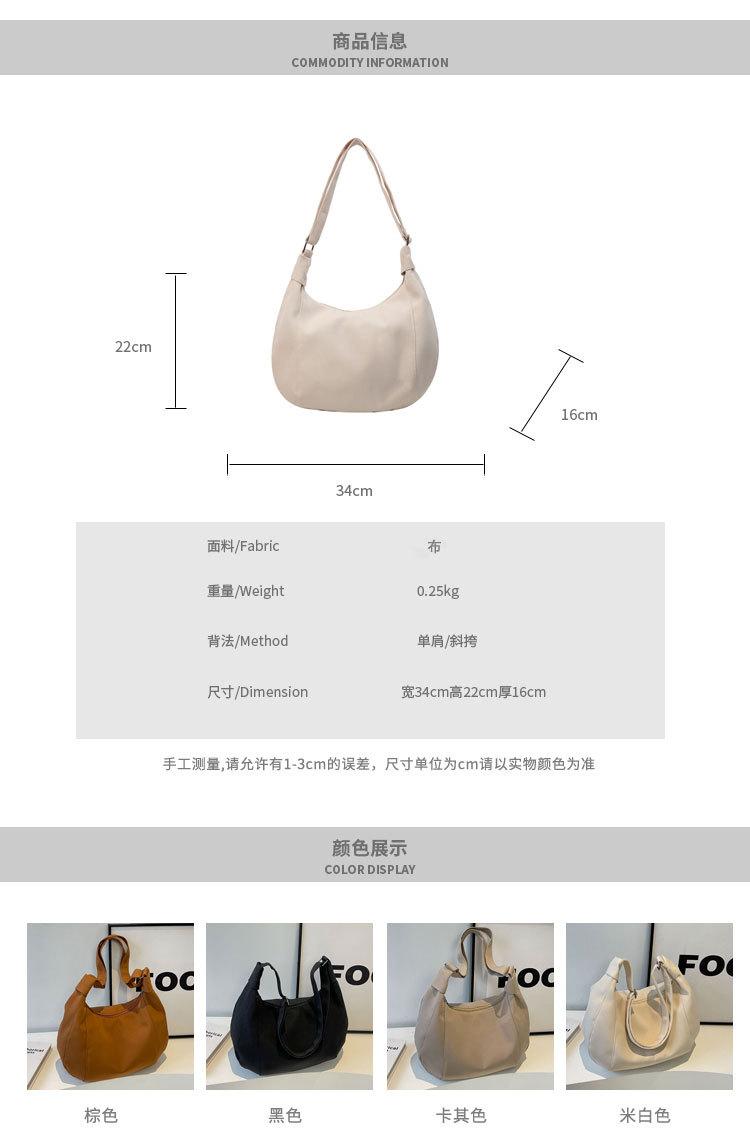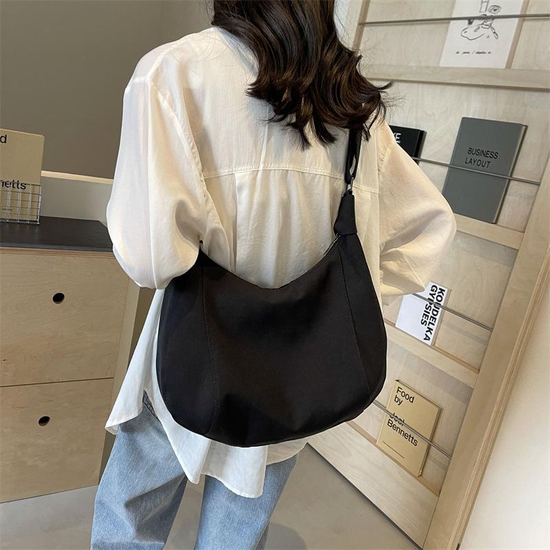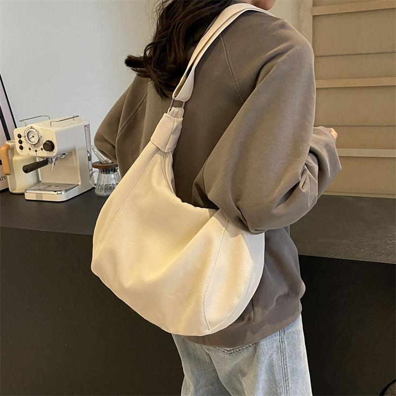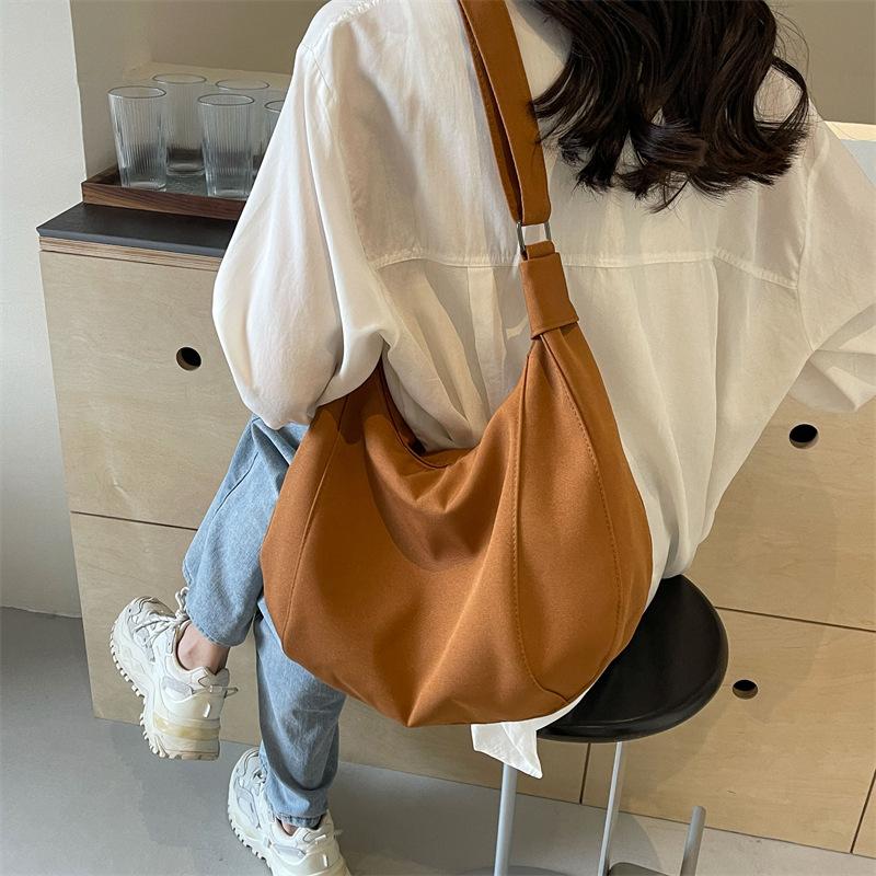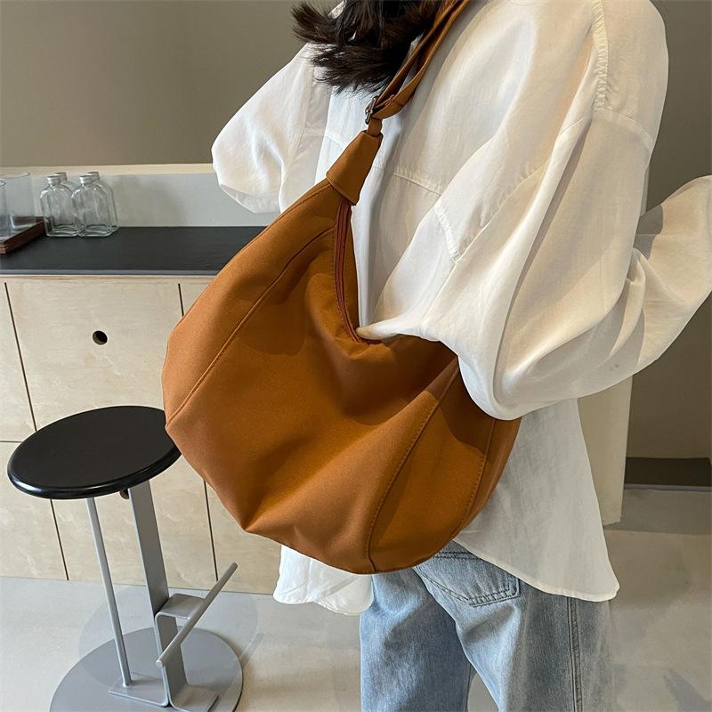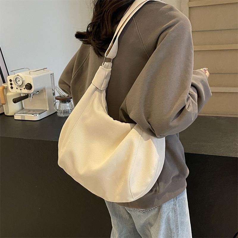 Bolso de Lona Bolso de Mujer 2024 Nuevo Color Sólido Casual Moda Gran Capacidad Bolso Dumpling Hombro Bandolera Viajero Bolso de Mujer