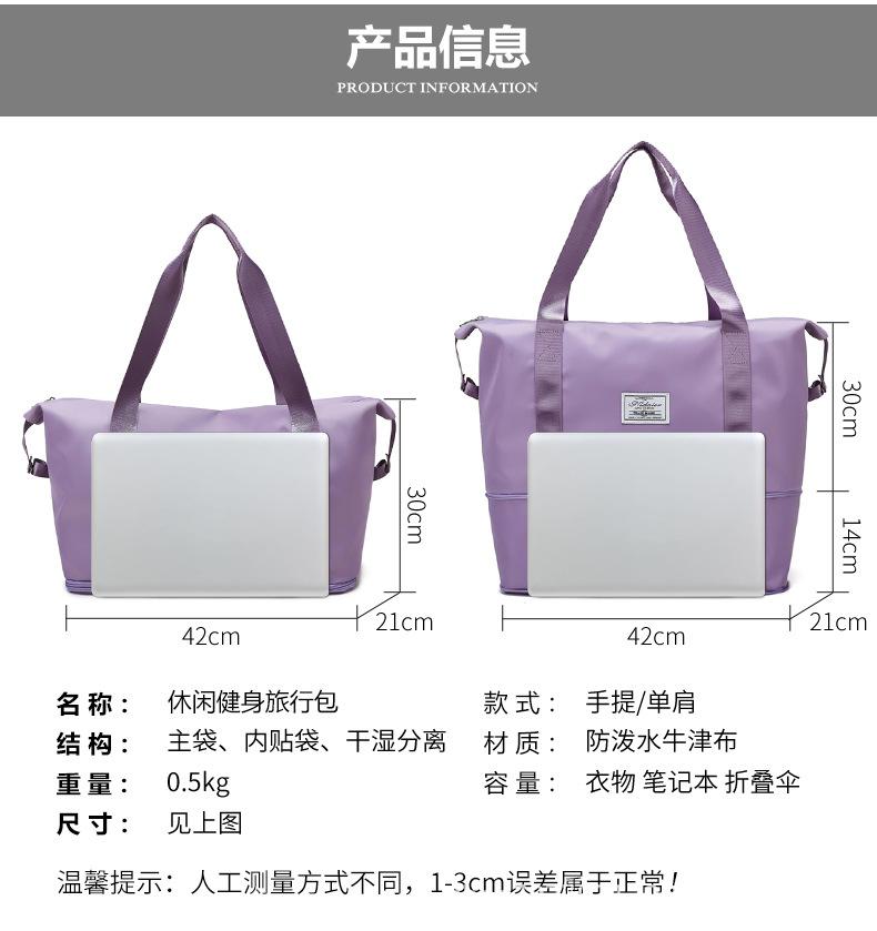 Bolsa de viaje al por mayor de fábrica con separación húmeda y seca, bolsa deportiva para fitness, nueva bolsa de entrenamiento de yoga de gran capacidad para viajes cortos.