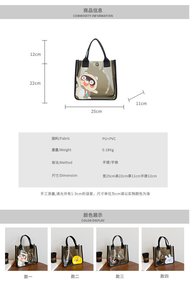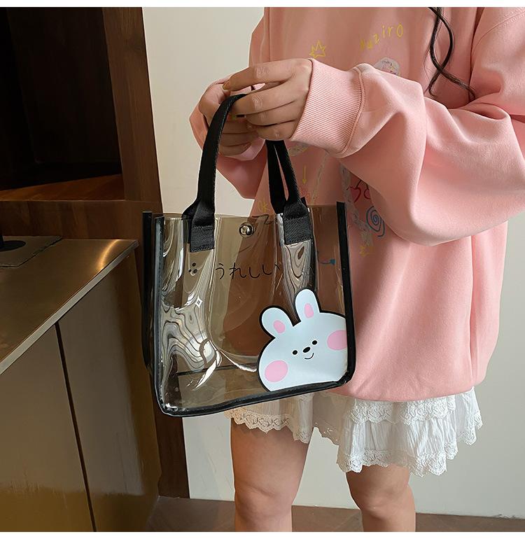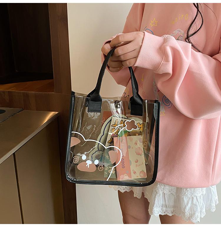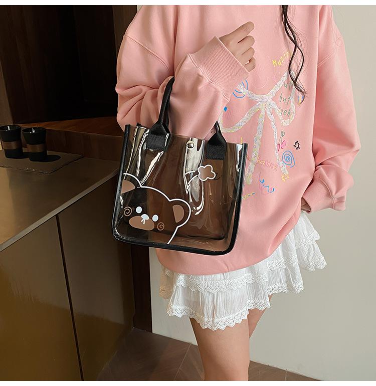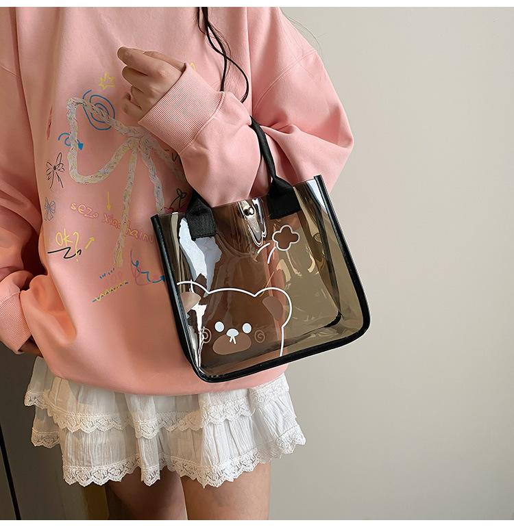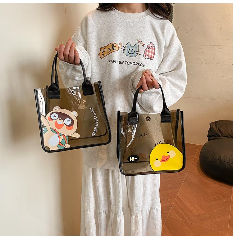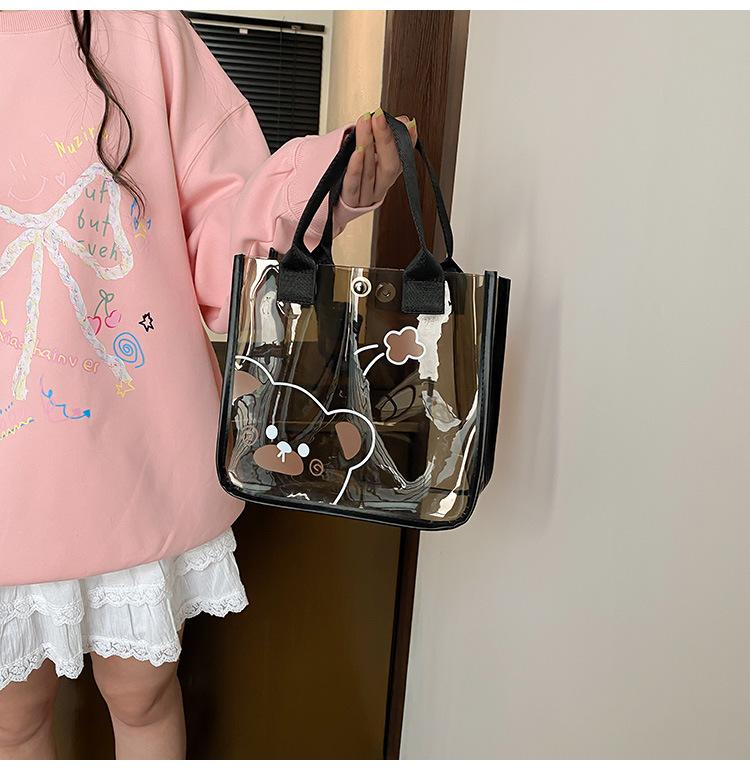 Bolsa Transparente de Gran Capacidad Bolso de Mujer 2025 Verano Nueva Moda Bolsa de Gelatina de Dibujos Animados Bolso de Mano Versátil y a la Moda