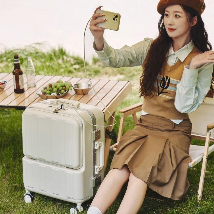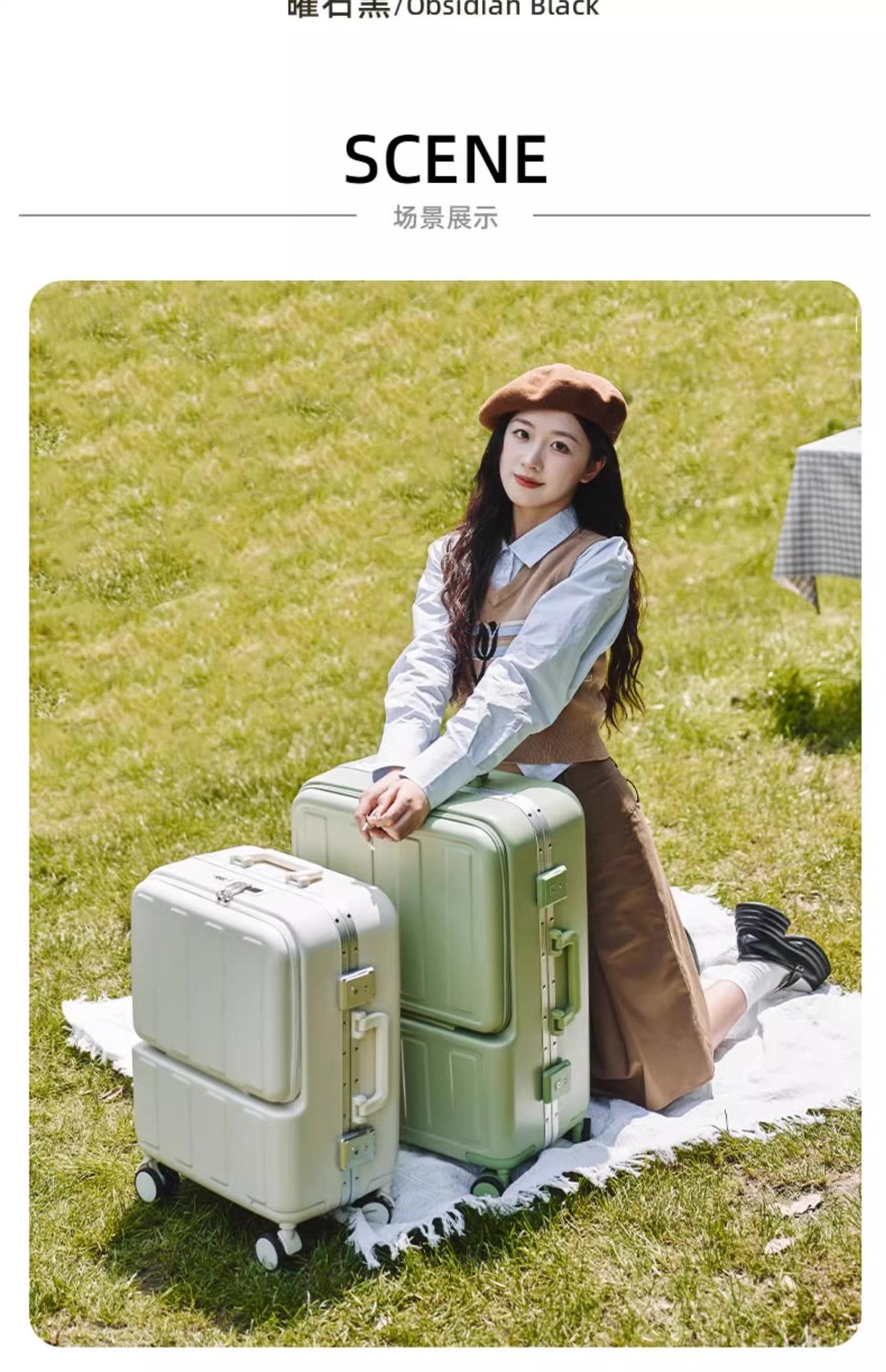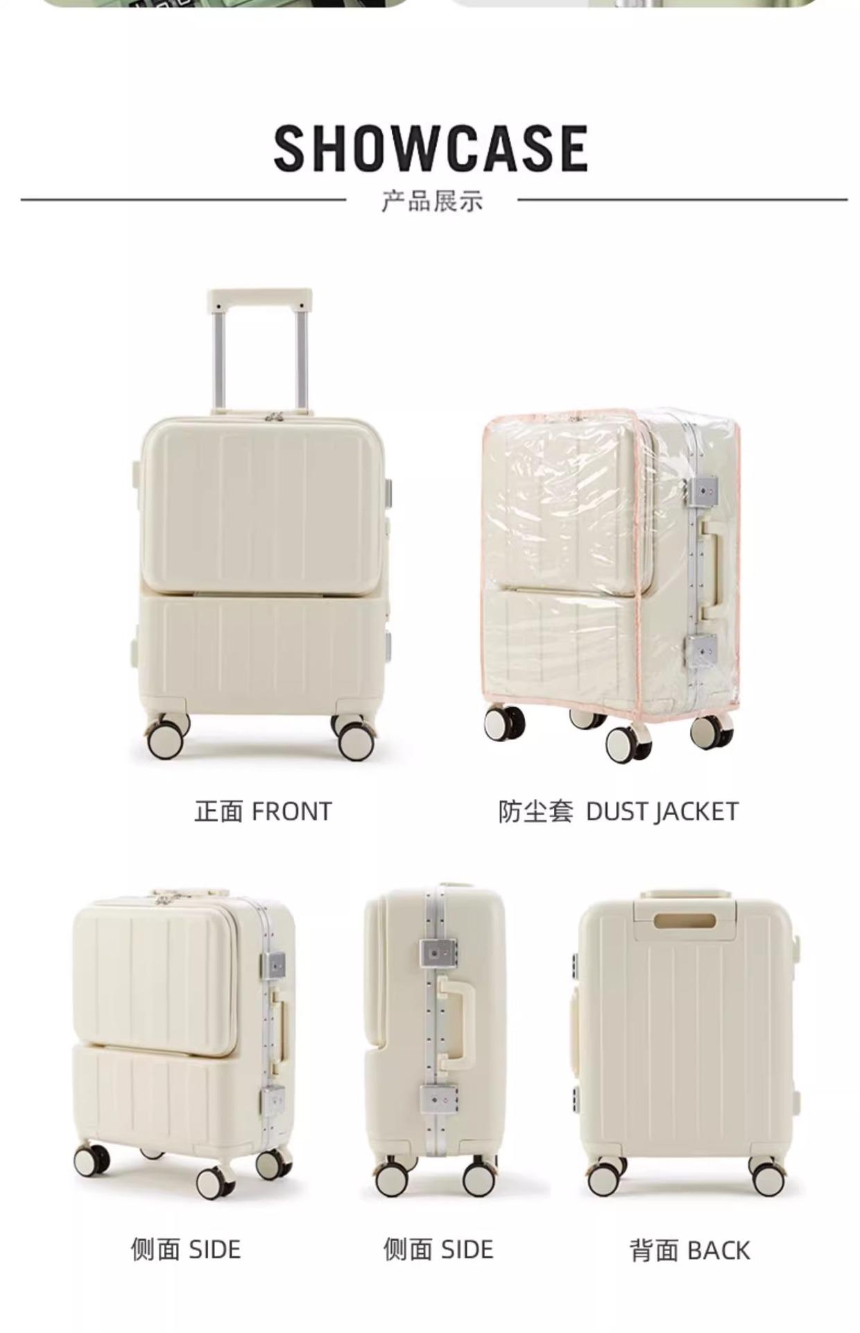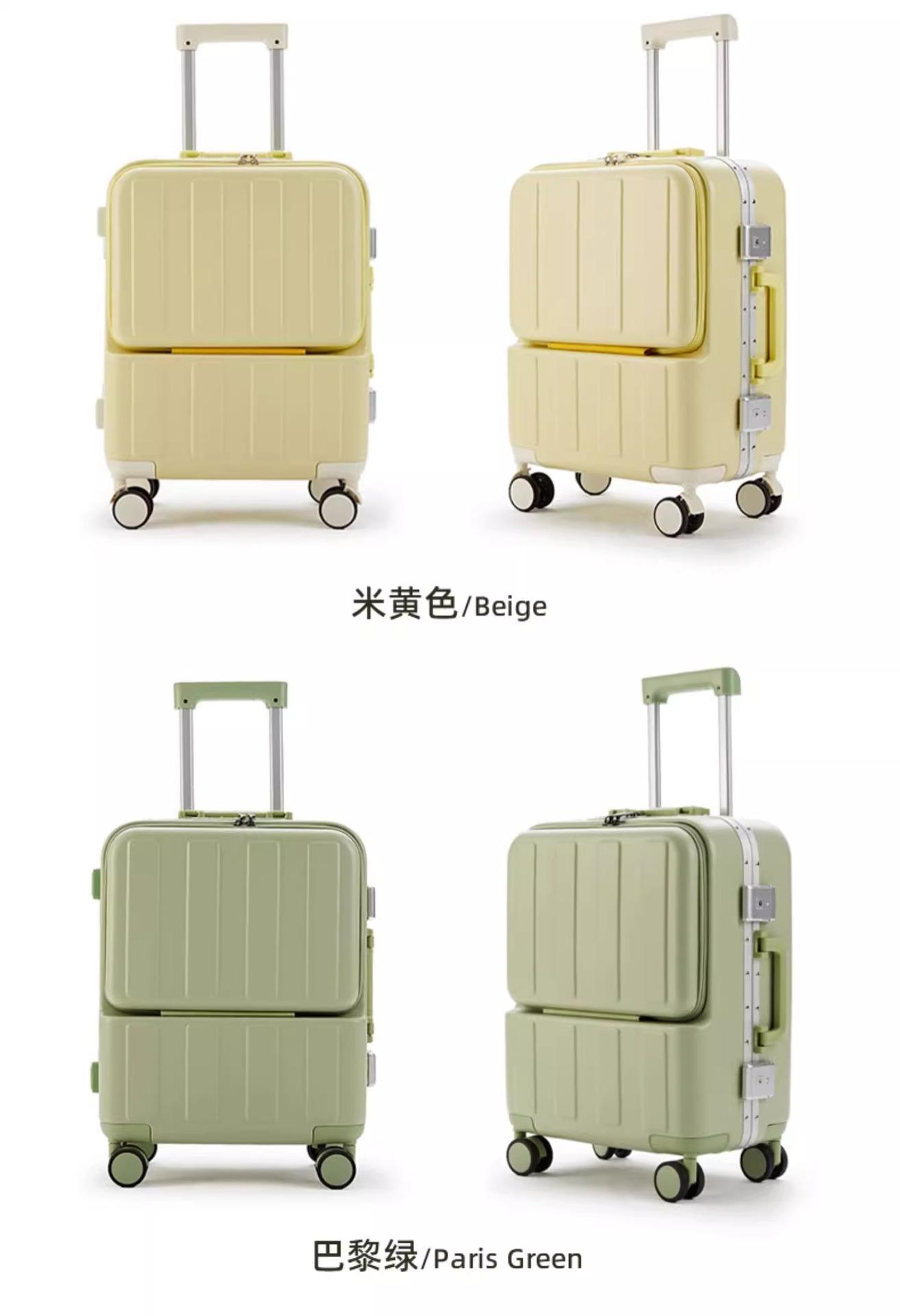 Maleta Trolley de Apertura Frontal Seleccionada Cuidadosamente para Mujer, Pequeña para Abordo, Maleta con Marco de Aluminio, Contraseña, Portátil