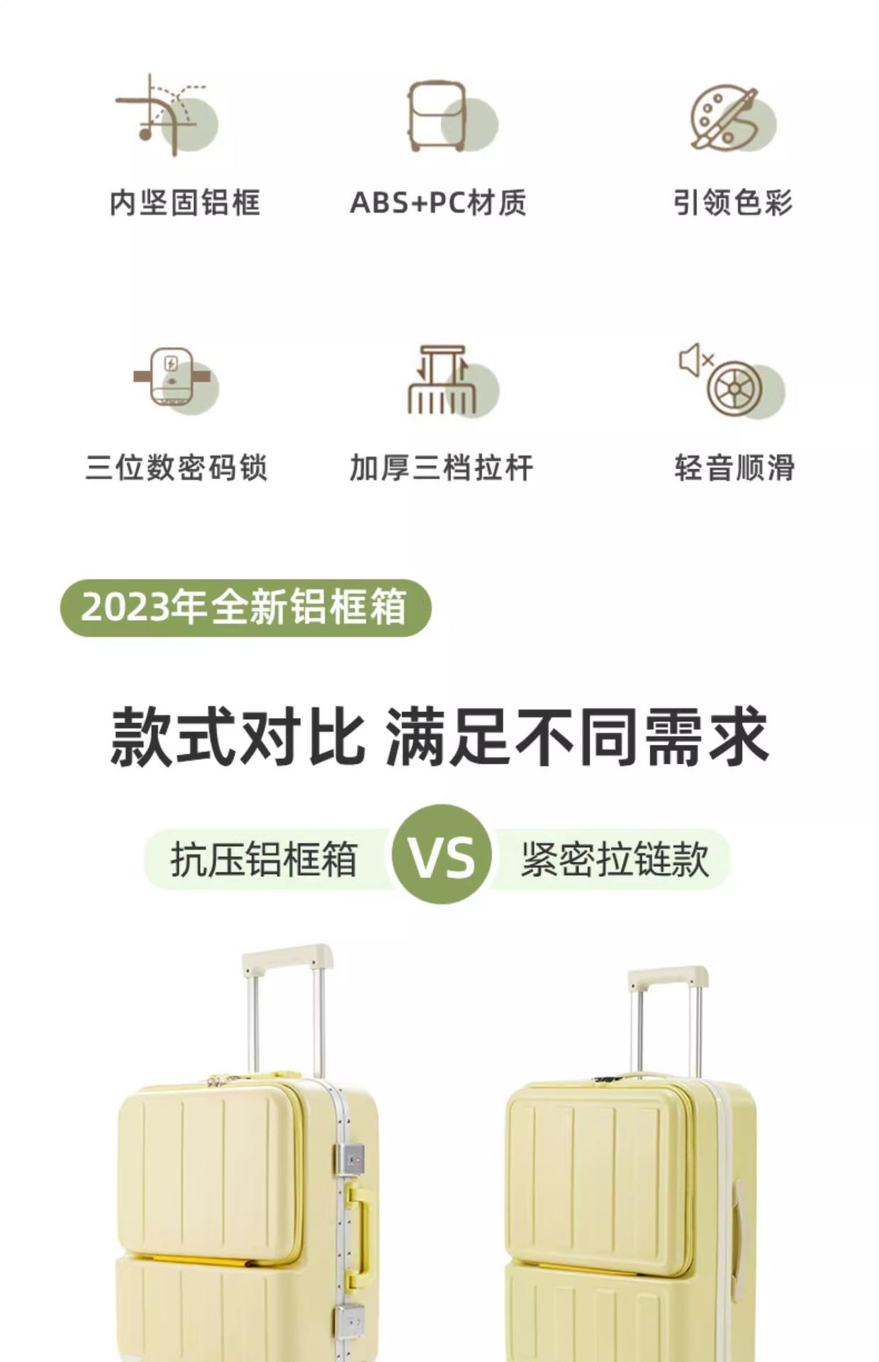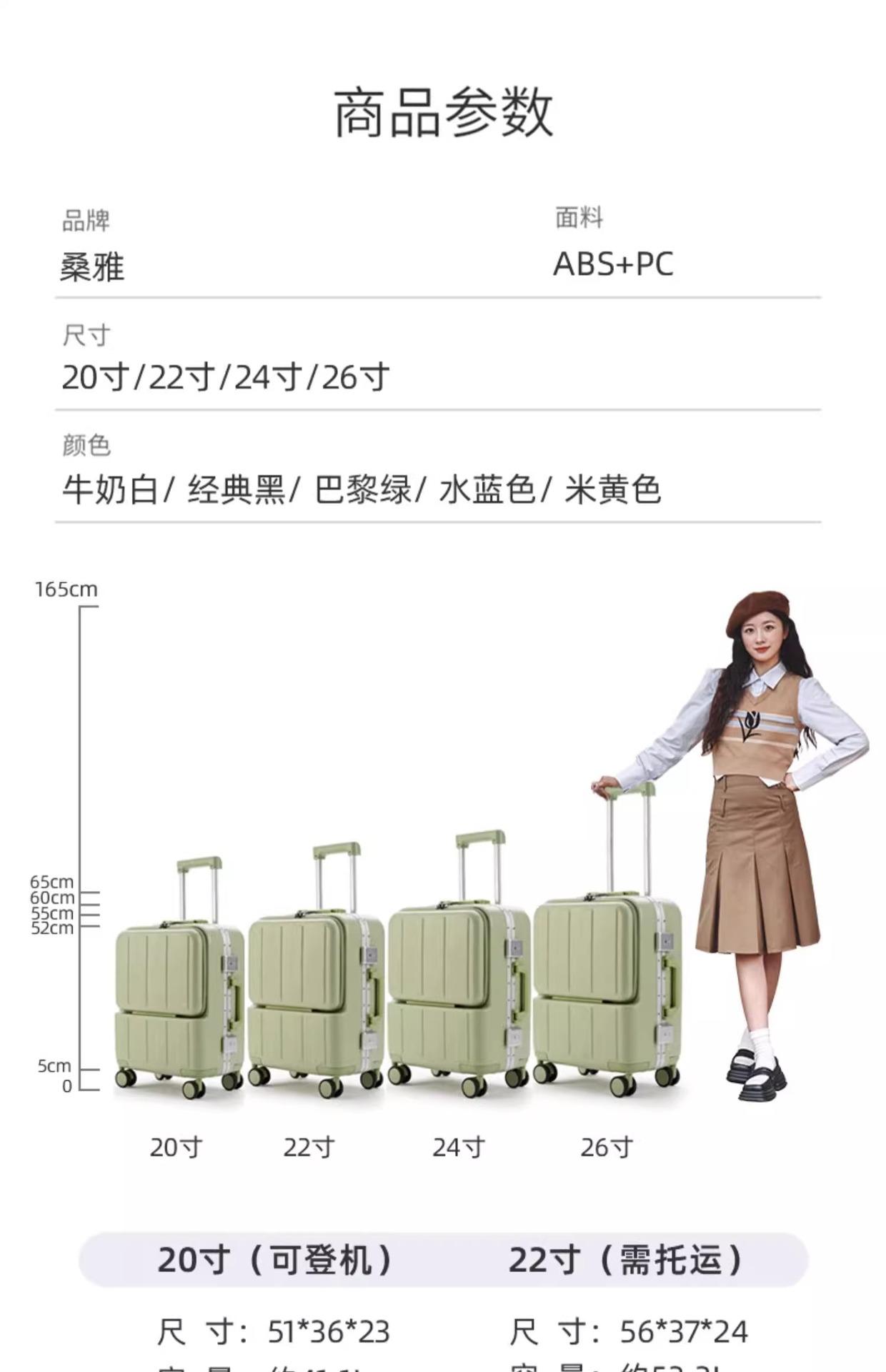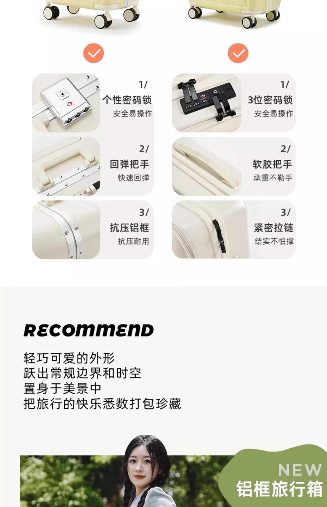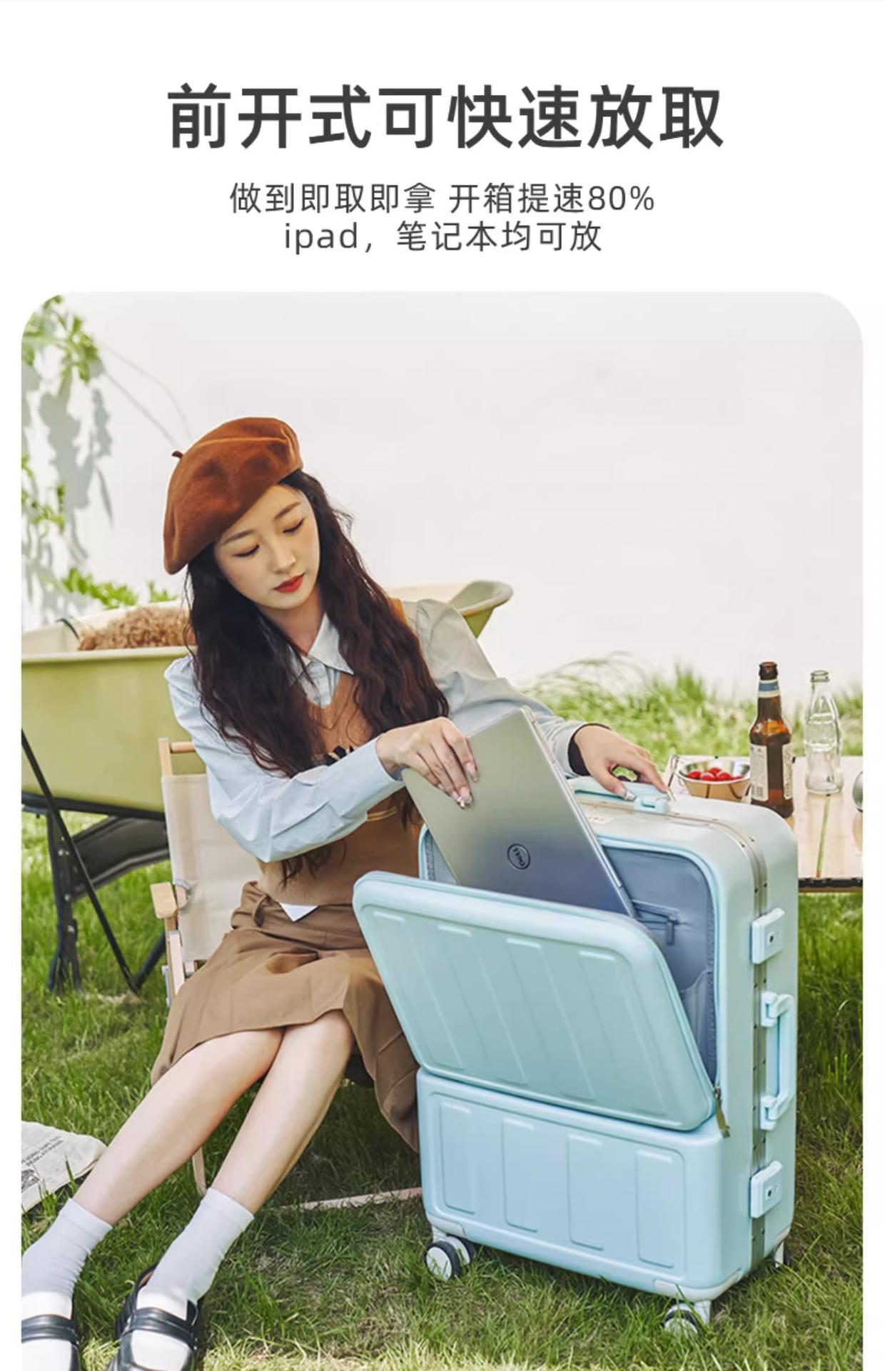 Maleta Trolley de Apertura Frontal Seleccionada Cuidadosamente para Mujer, Pequeña para Abordo, Maleta con Marco de Aluminio, Contraseña, Portátil