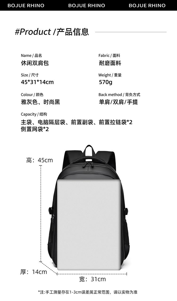 Mochila para Hombre de Negocios Gran Capacidad Multifuncional Bolsa Escolar para Estudiante Ocio al Aire Libre Viaje Bolsa para Laptop
