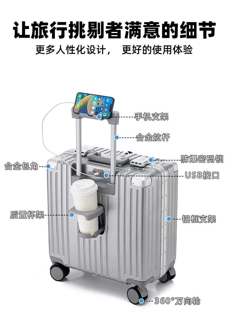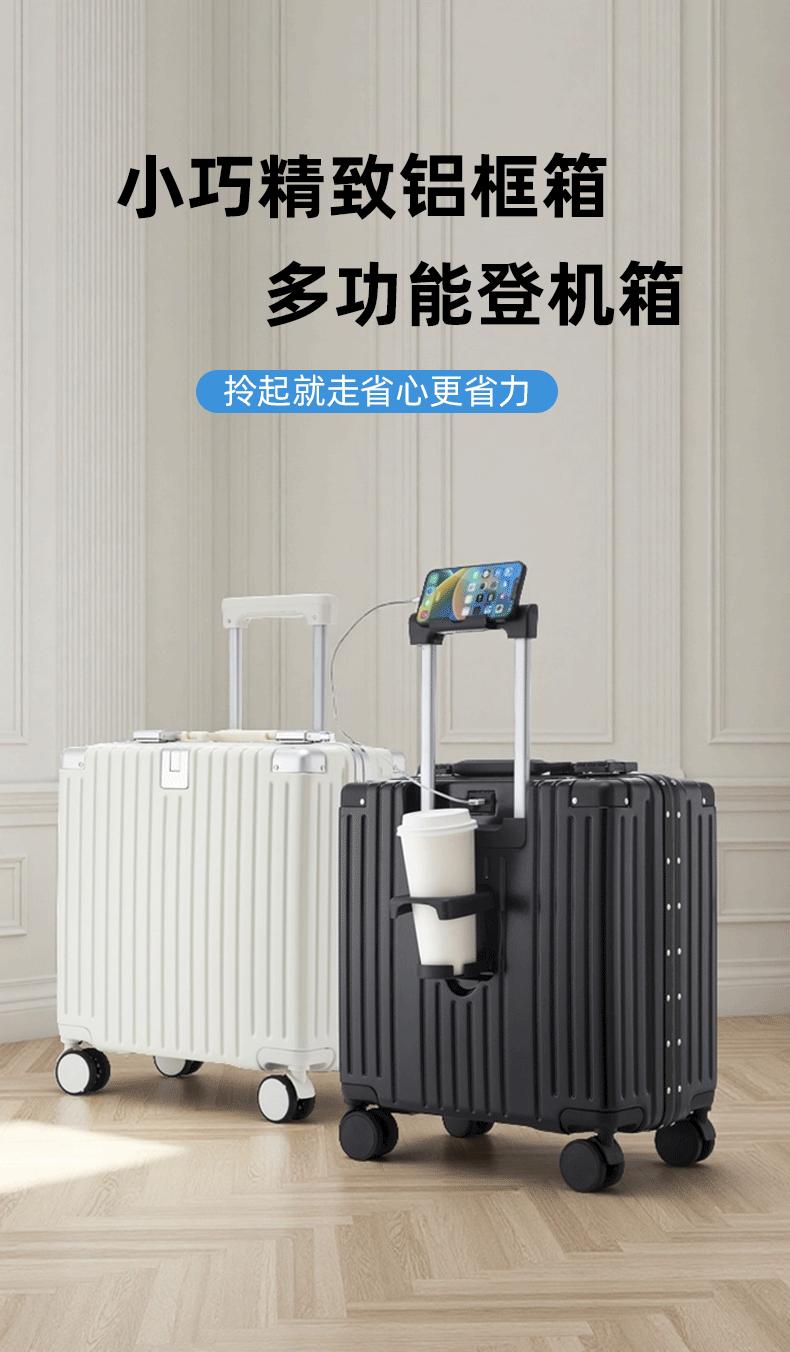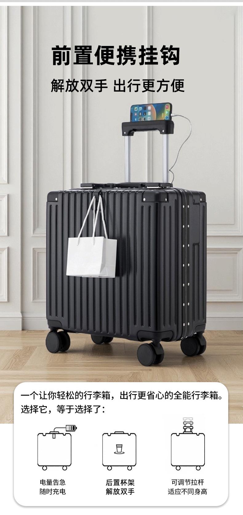 Maleta de 18 pulgadas con marco de aluminio para abordar, nueva maleta con ruedas, maleta con ruedas, maleta con contraseña, ligera, pequeña y duradera