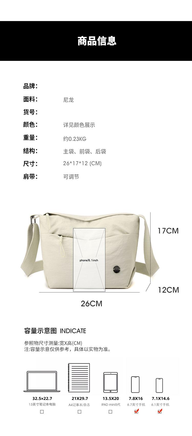 Bolsa de Tela de Nylon para Mujer de Alta Gama Ligera para Hombro Cruzada 2025 Nueva Bolsa de Lona Casual Versátil Transfronteriza