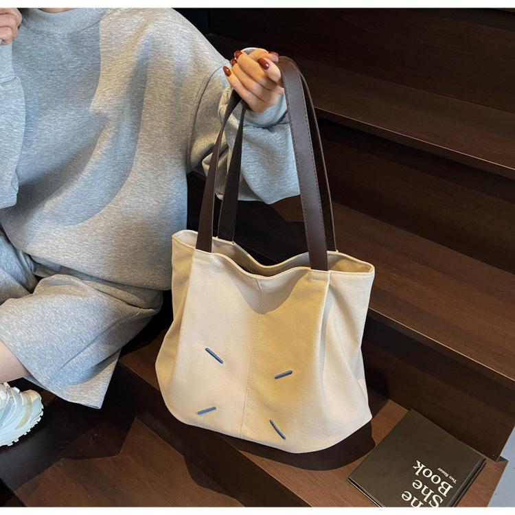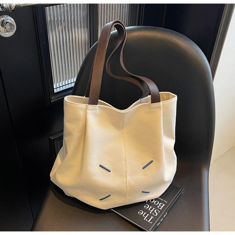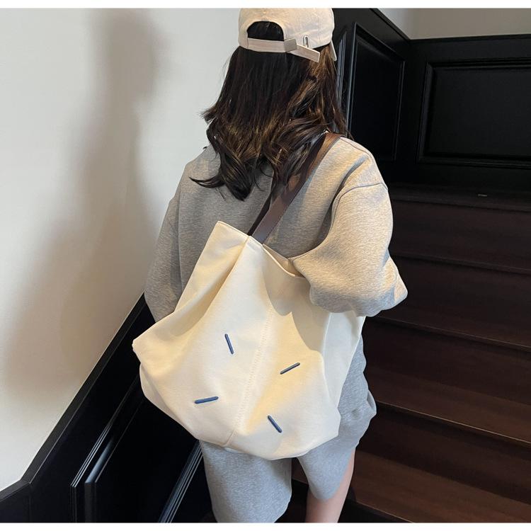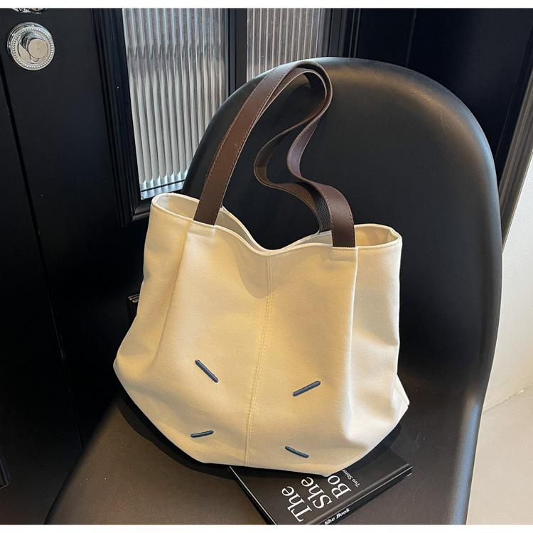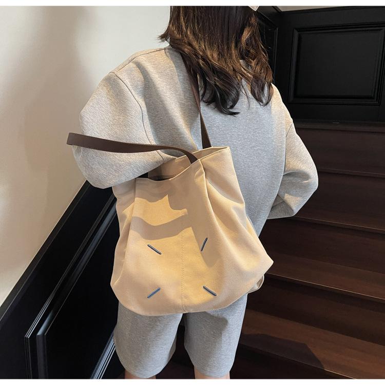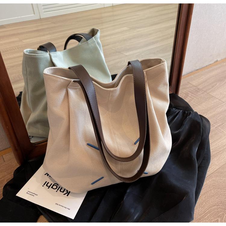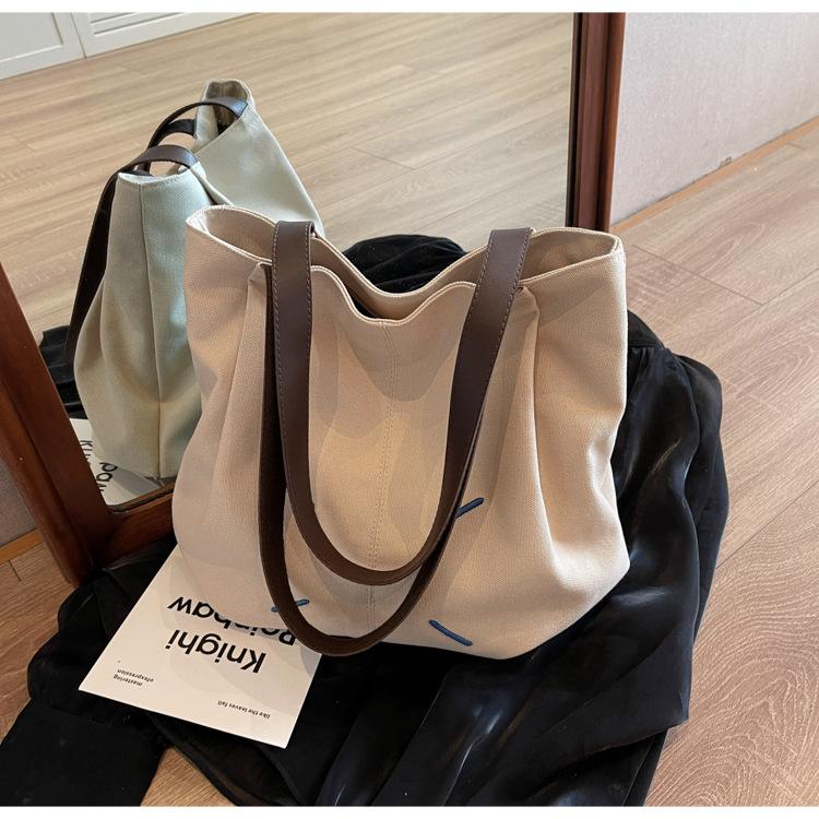 Bolso de Lona Mujer 2025 Nuevo Bolso de Gran Capacidad Simple Versátil Bolso de Hombro Casual Estudiante Universitario Clase Bolso Tote