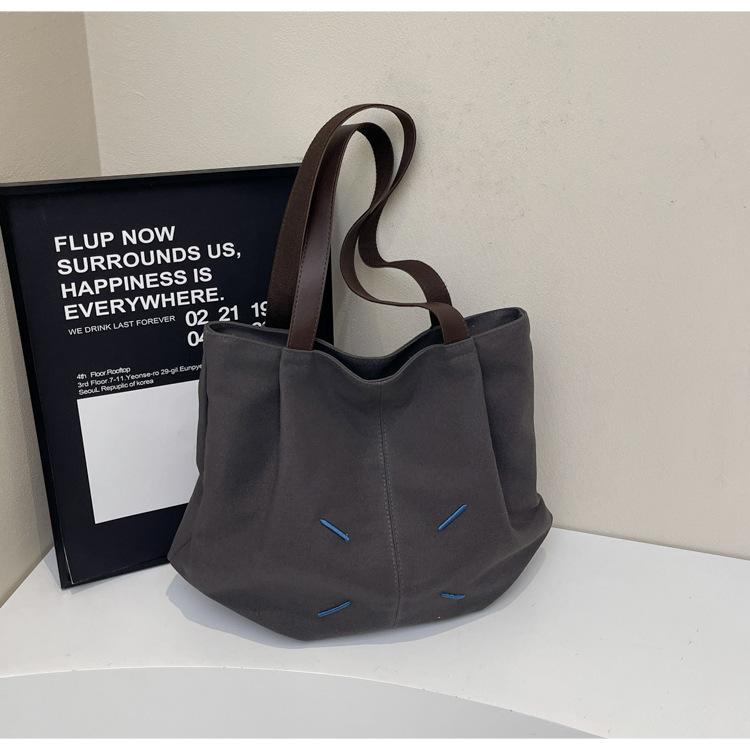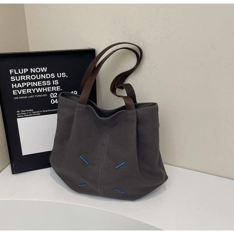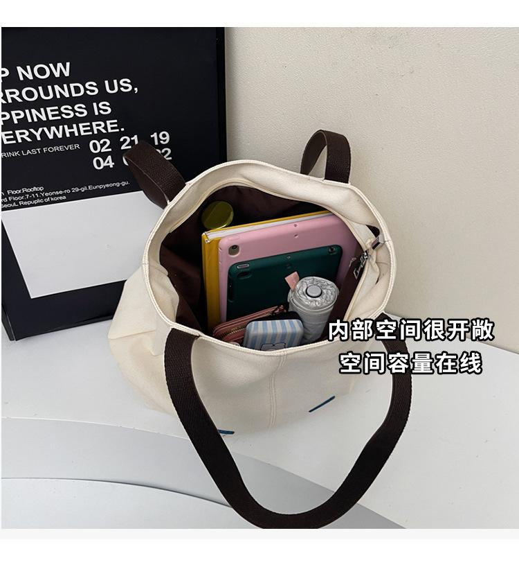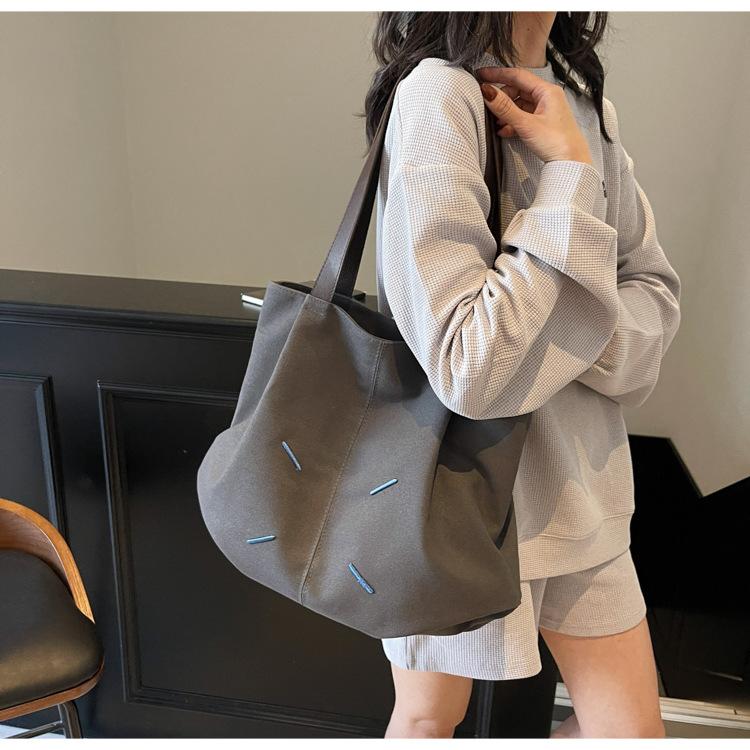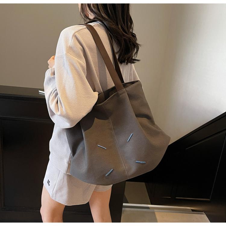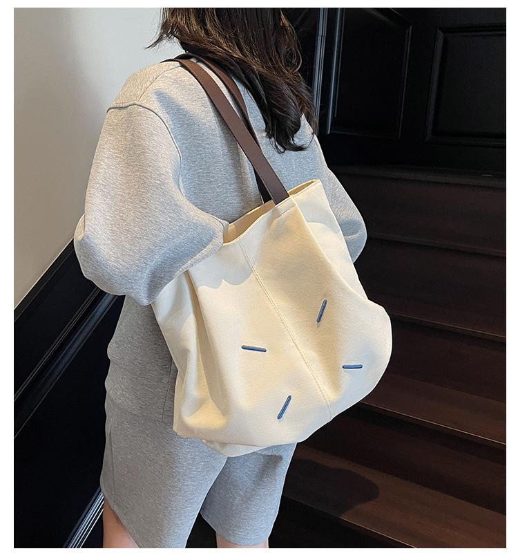 Bolso de Lona Mujer 2025 Nuevo Bolso de Gran Capacidad Simple Versátil Bolso de Hombro Casual Estudiante Universitario Clase Bolso Tote