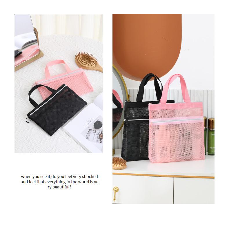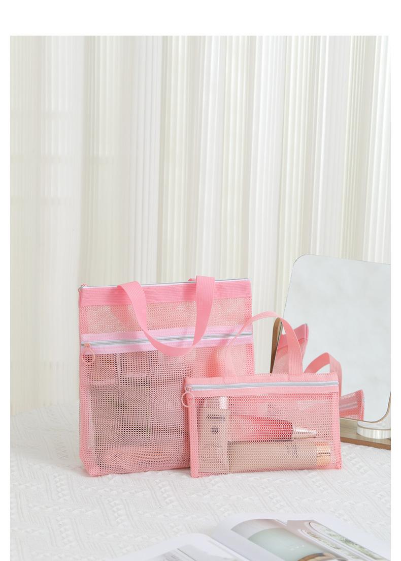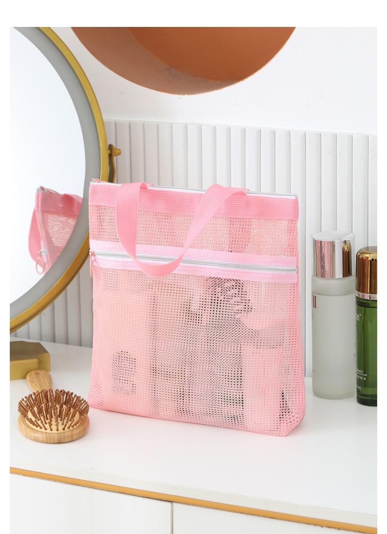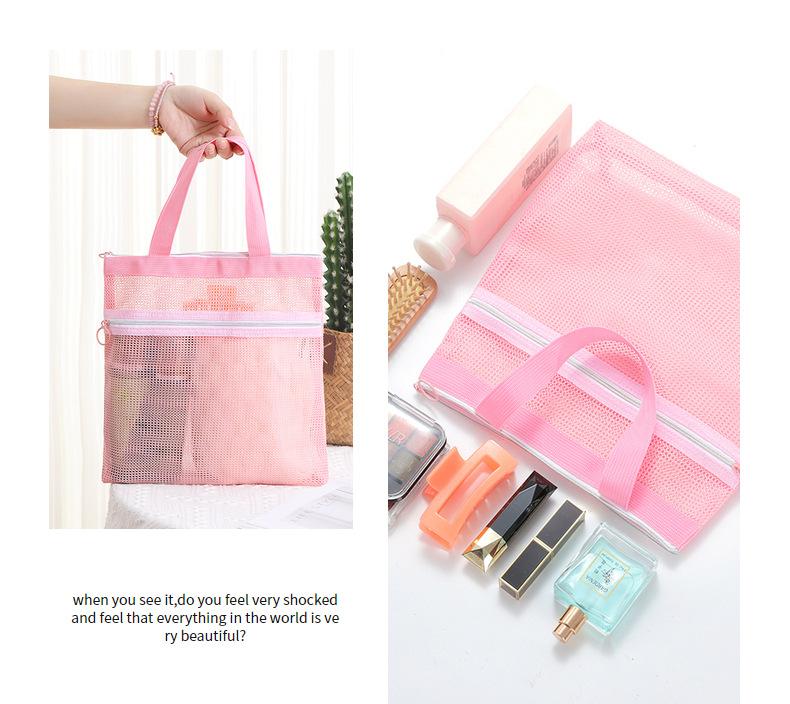 Bolsa de playa de malla portátil para maquillaje, viaje, almacenamiento, neceser, gran capacidad, portátil, multibolsillo, bolsa de playa, bolsa de natación