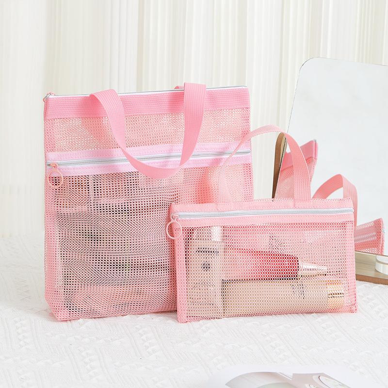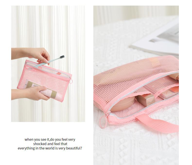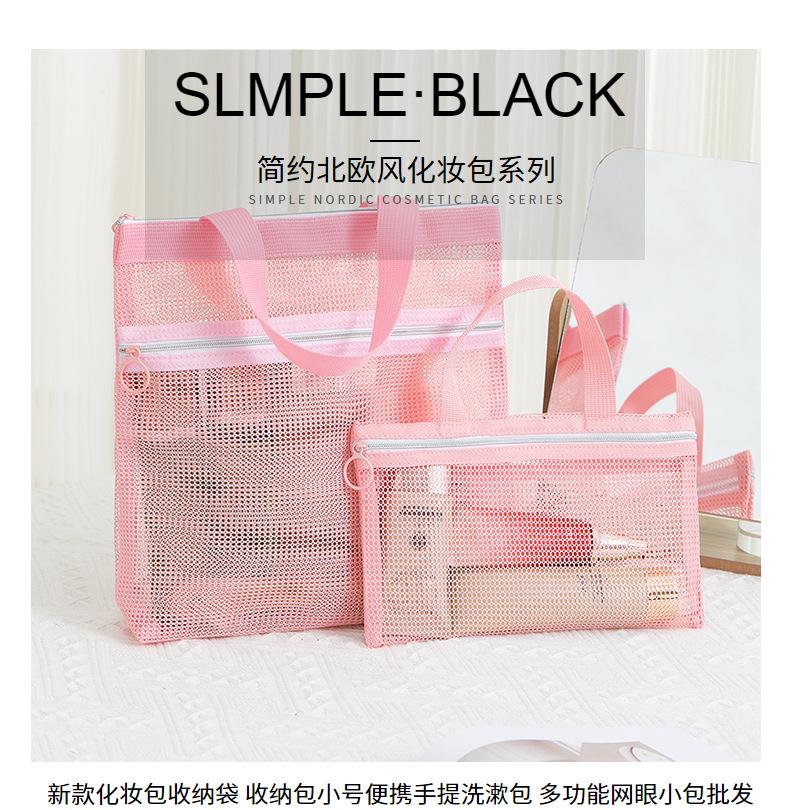 Bolsa cosmética nueva bolsa de almacenamiento bolsa de almacenamiento pequeña portátil de mano bolsa de aseo multifuncional de malla bolsa pequeña al por mayor