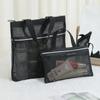 Bolsa de aseo de viaje de malla, bolsa de hombro para nadar en la playa, bolsa portátil para guardar artículos de aseo, bolsa de compras plegable hueca