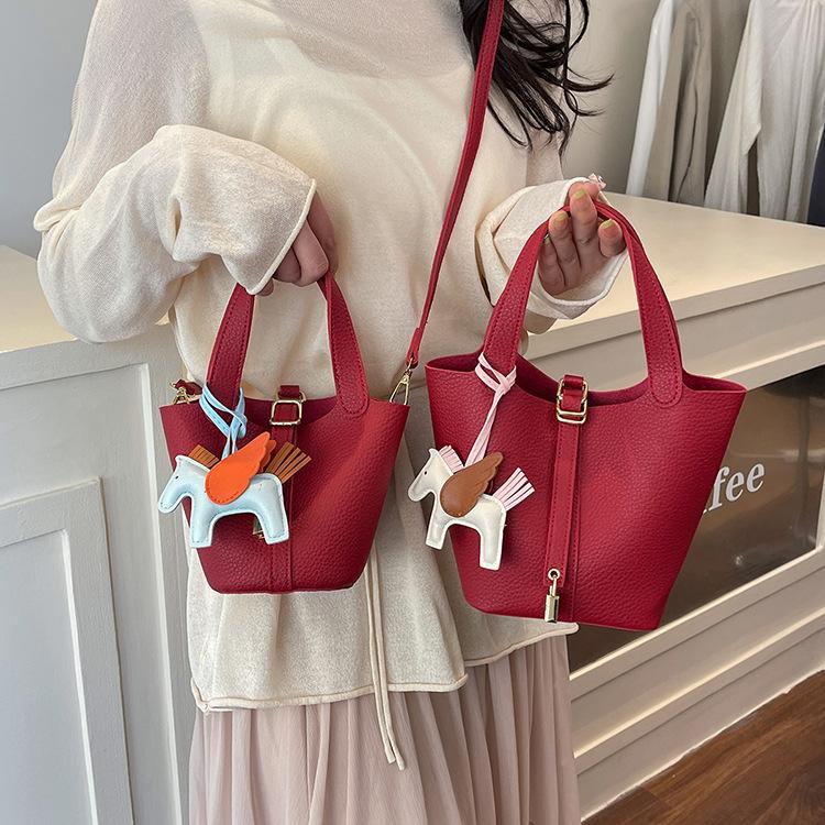 Bolso de Mano Versátil de Alta Gama para Mujer Estilo Coreano 2025 Nueva Moda Simple Casual Bolso Balde Coreano Bandolera
