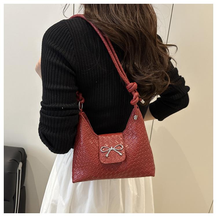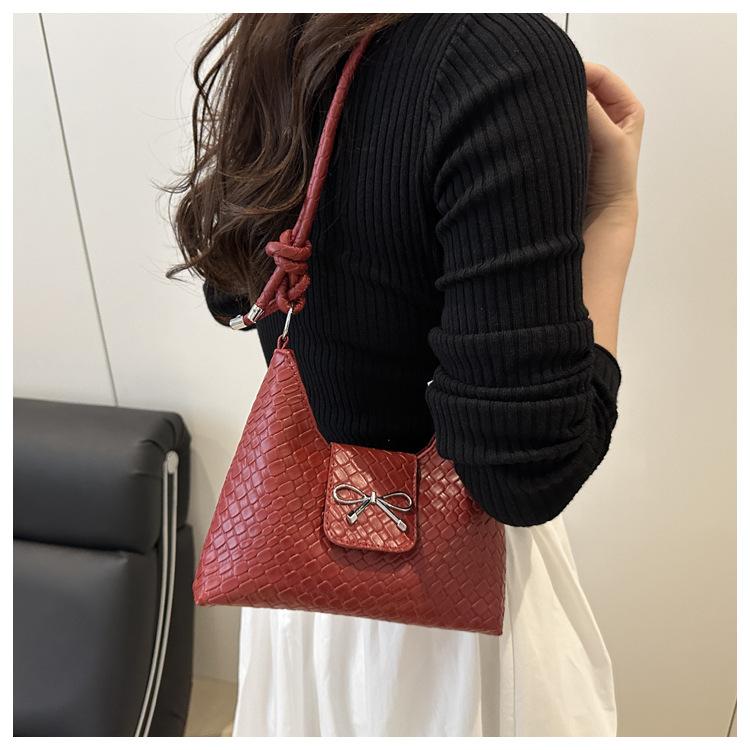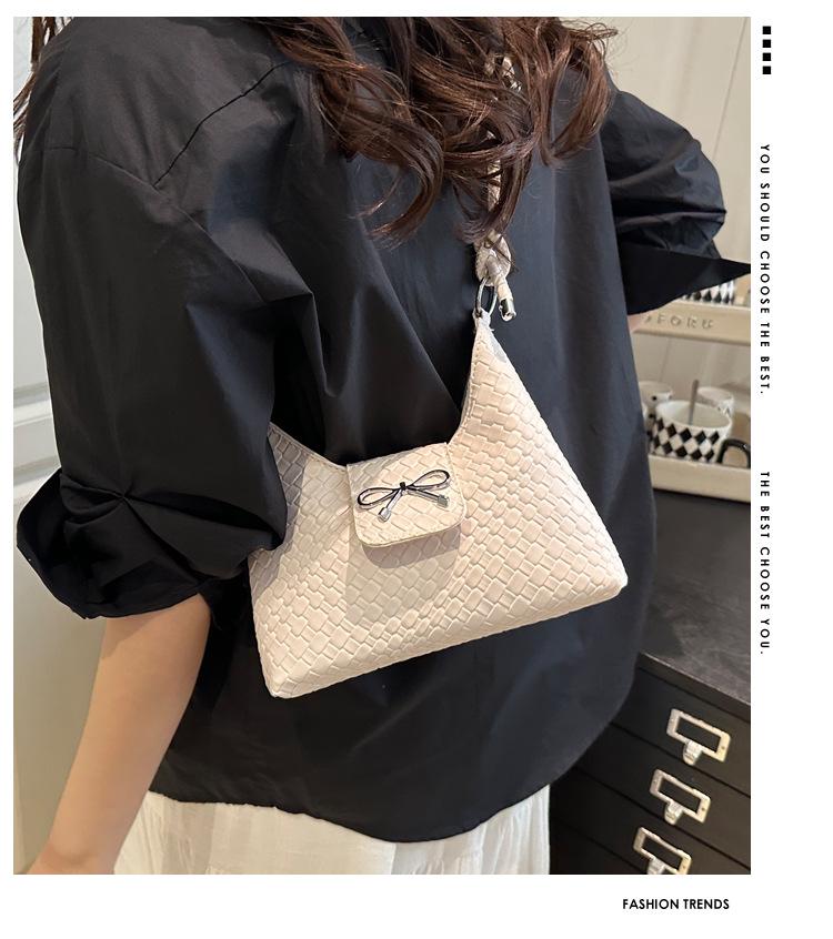 Bolso Casual de Gran Capacidad para Axila 2025 Nuevo Color Puro Moda Estilo Coreano Simple Lazo Un Hombro Cruzado Bolso de Mujer