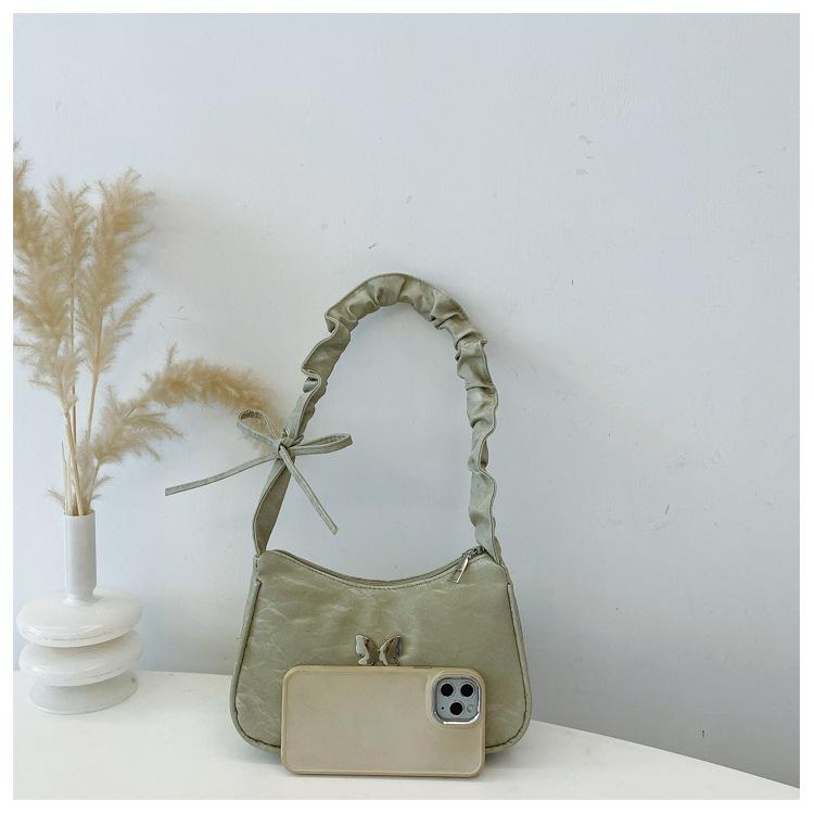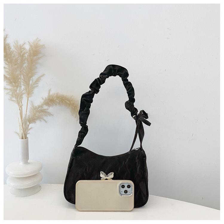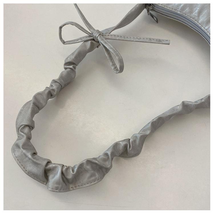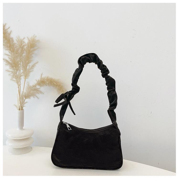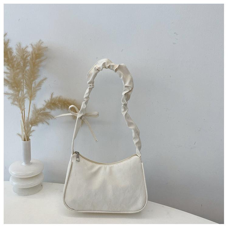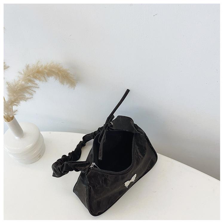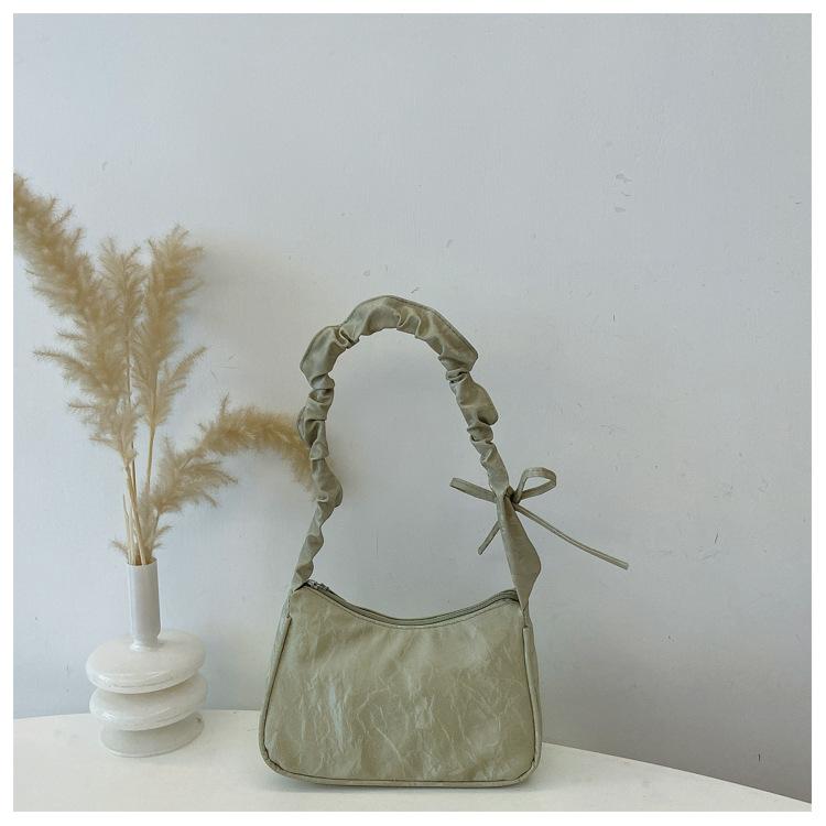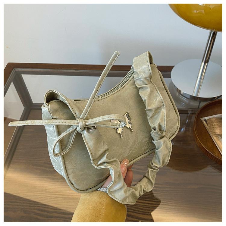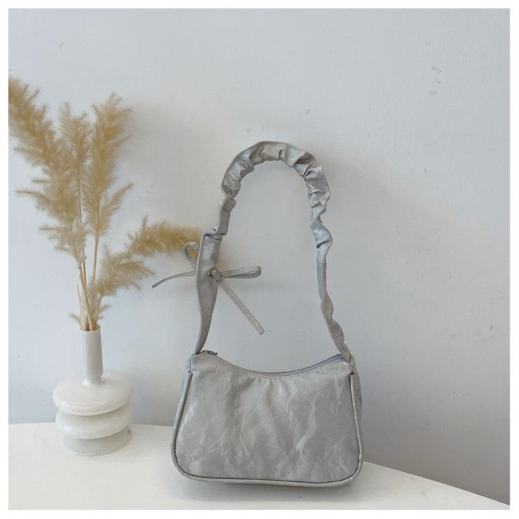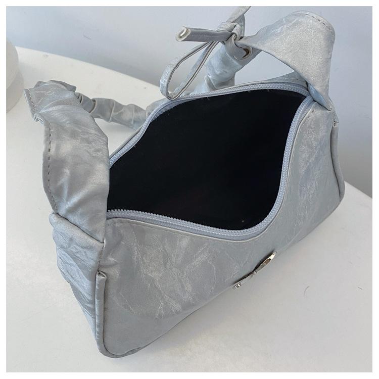 Bolso de Mano Plisado Casual Simple Nuevo Elegante Lazo Color Sólido de Moda 2025 Hombro Cruzado Axilar para Mujer
