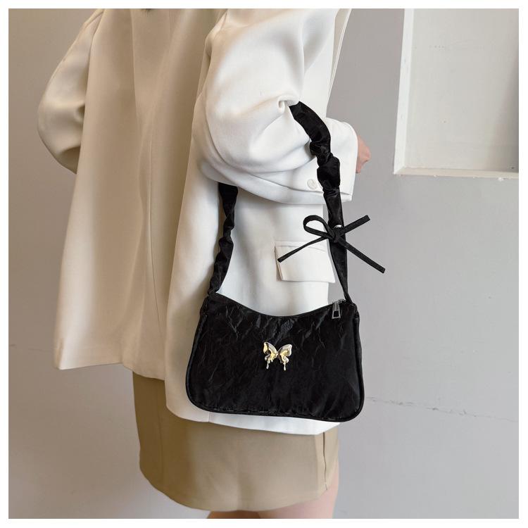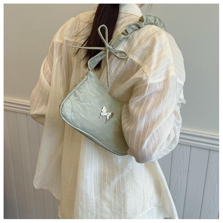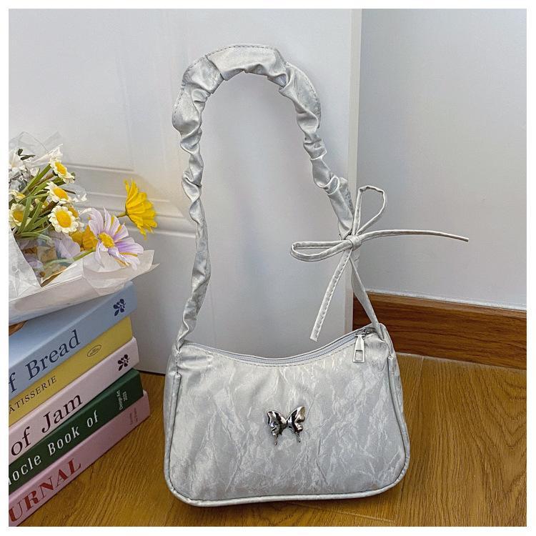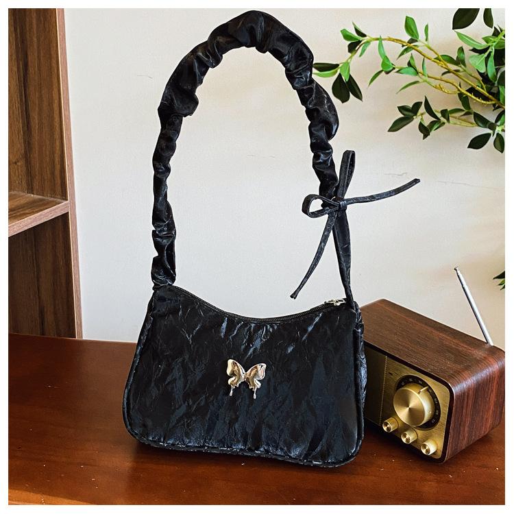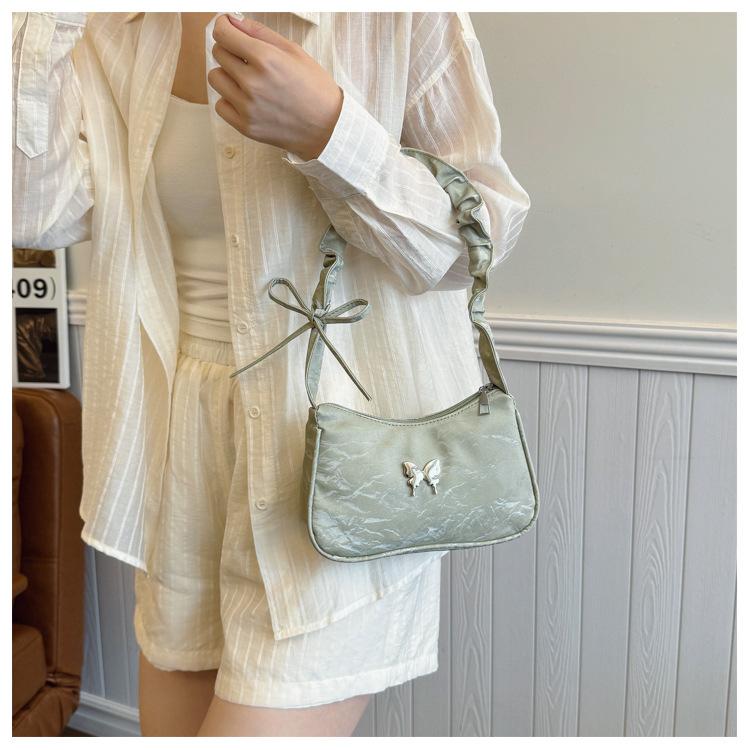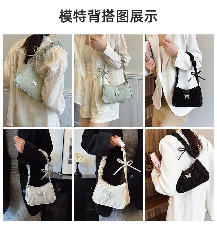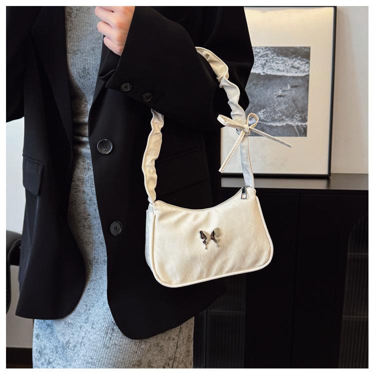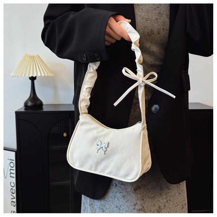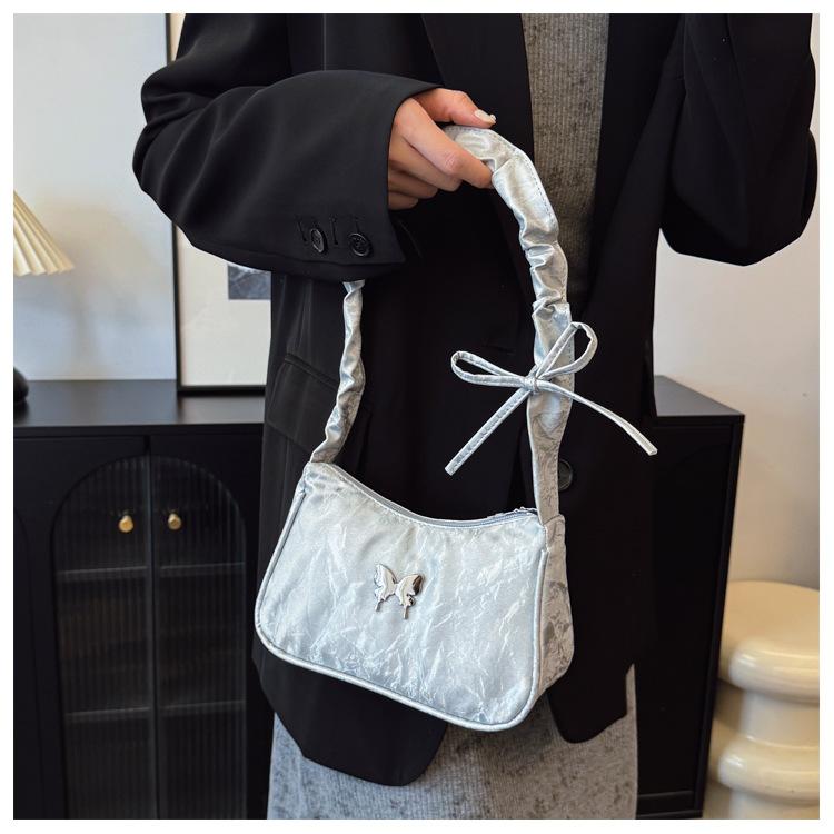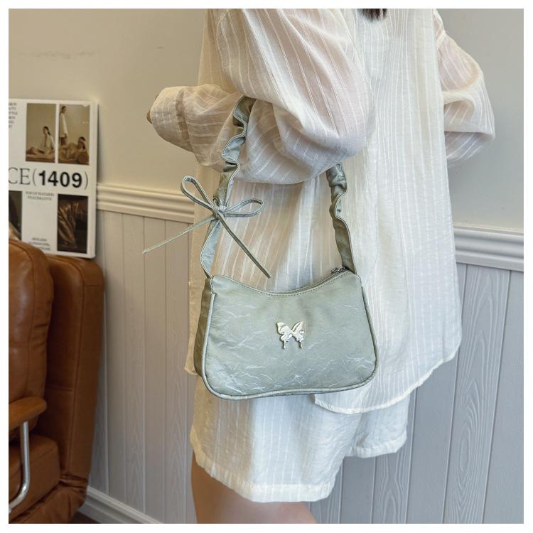 Bolso de Mano Plisado Casual Simple Nuevo Elegante Lazo Color Sólido de Moda 2025 Hombro Cruzado Axilar para Mujer