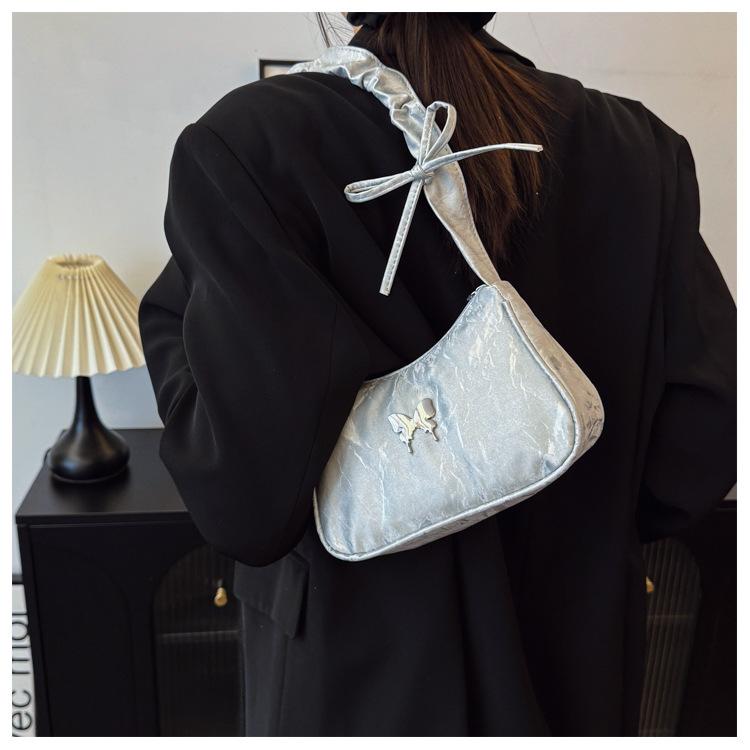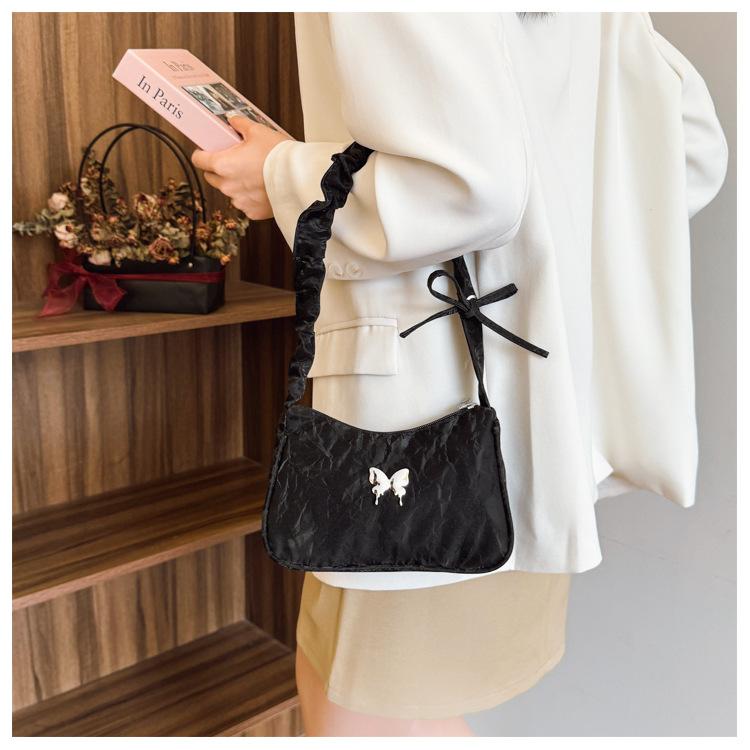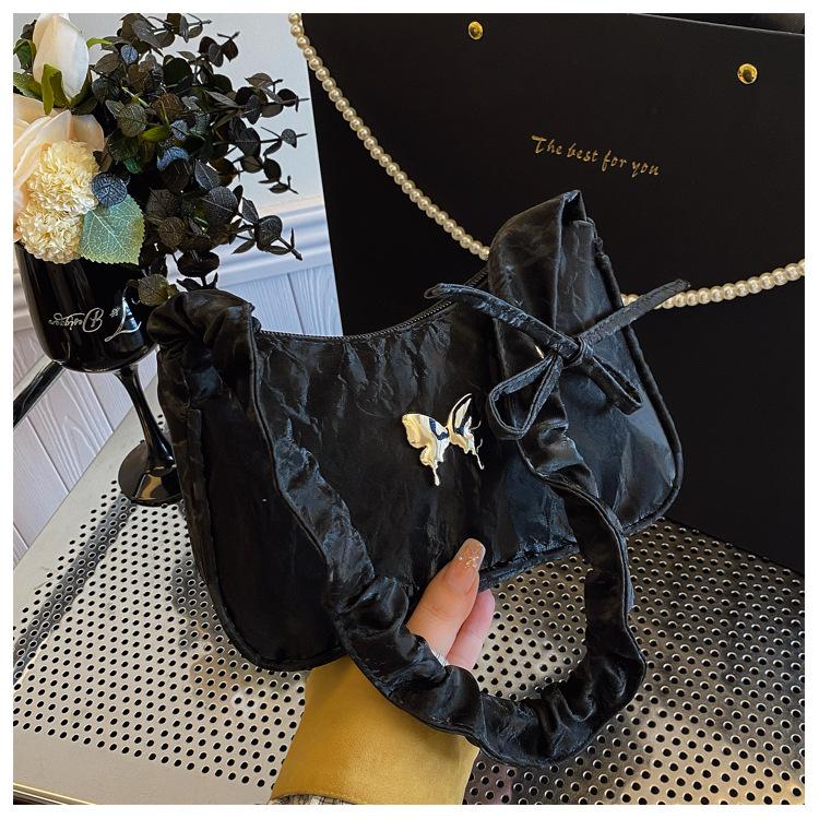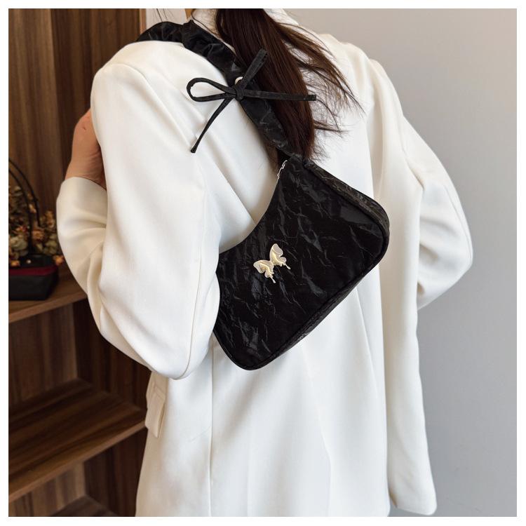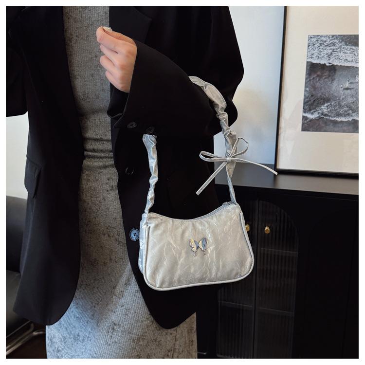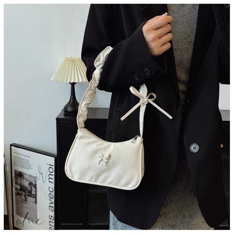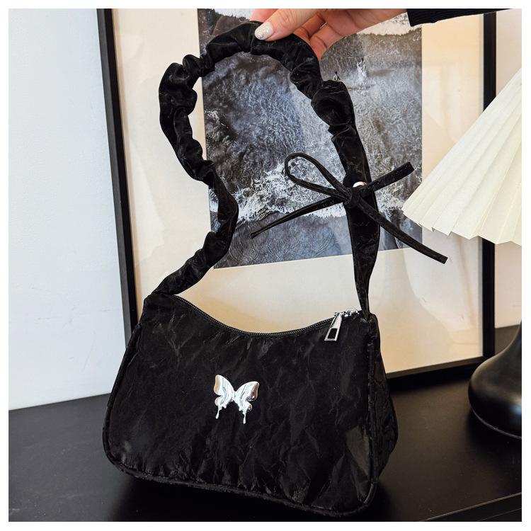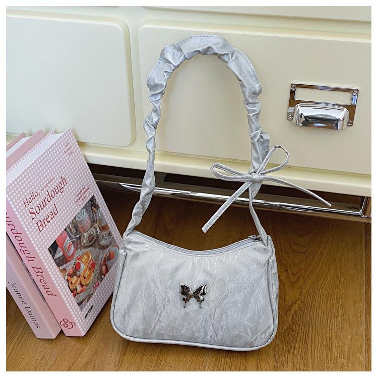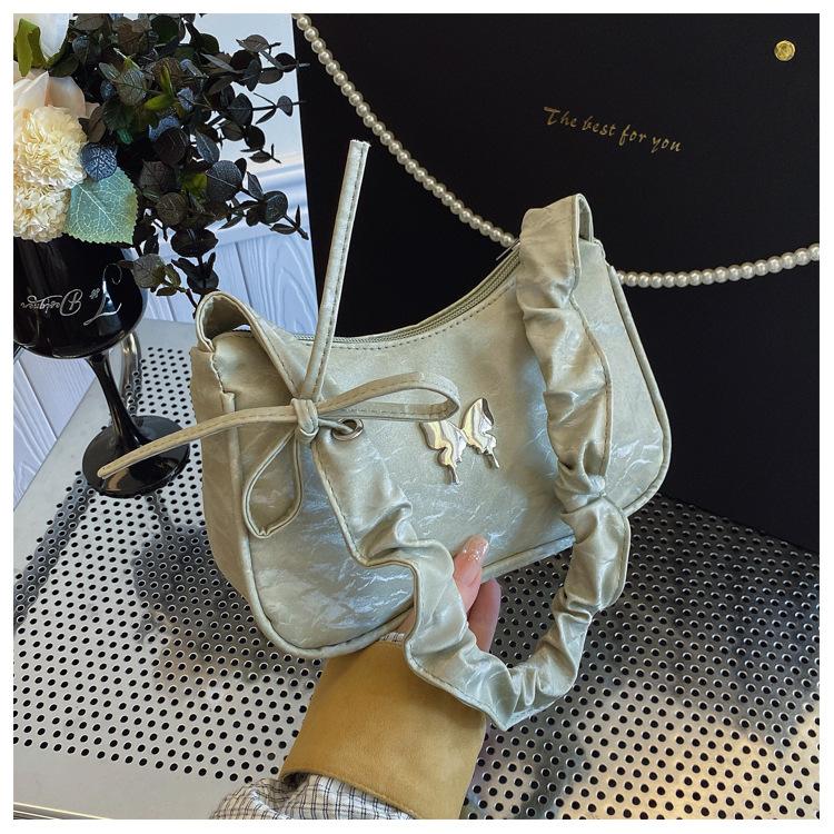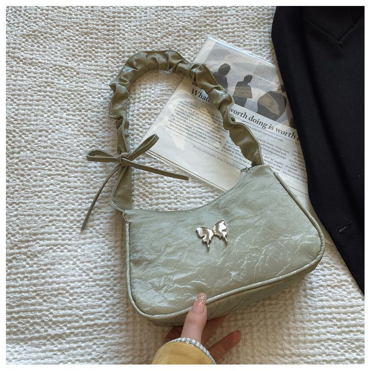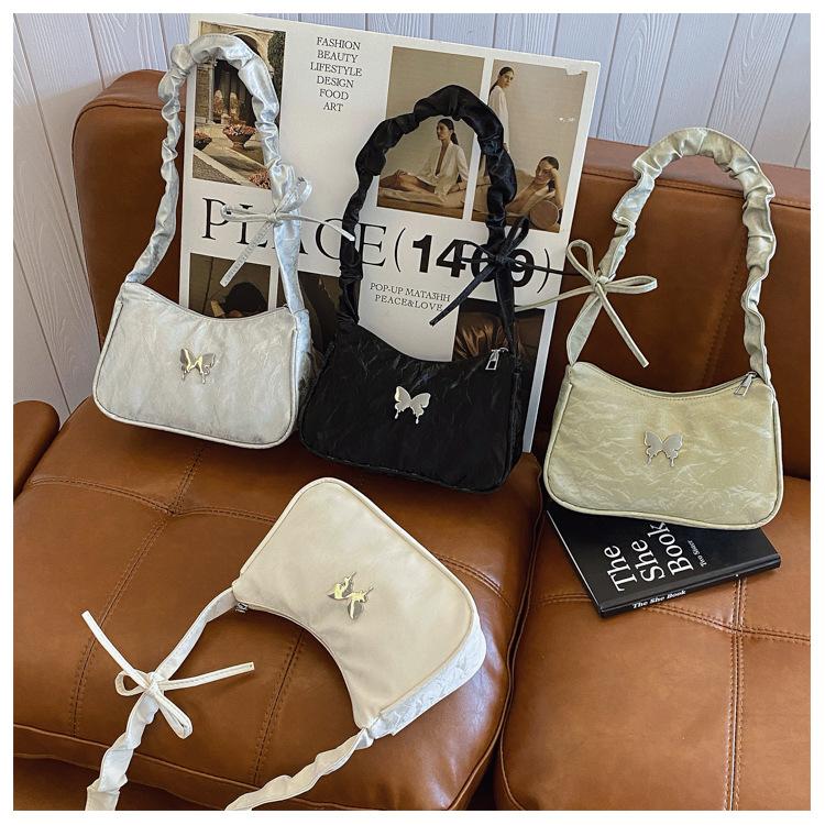 Bolso de Mano Plisado Casual Simple Nuevo Elegante Lazo Color Sólido de Moda 2025 Hombro Cruzado Axilar para Mujer