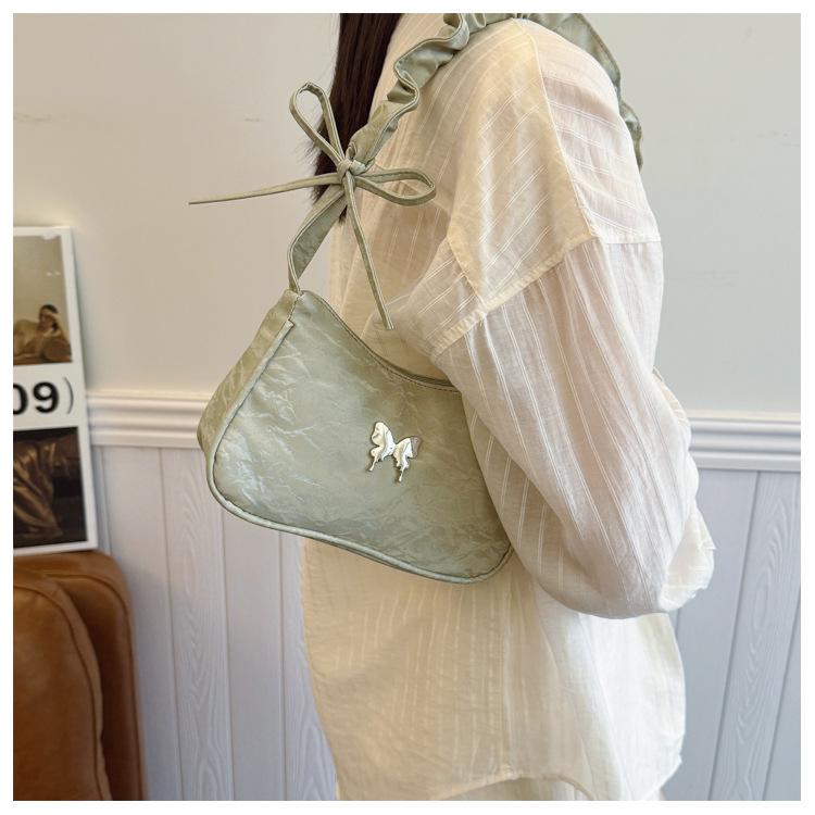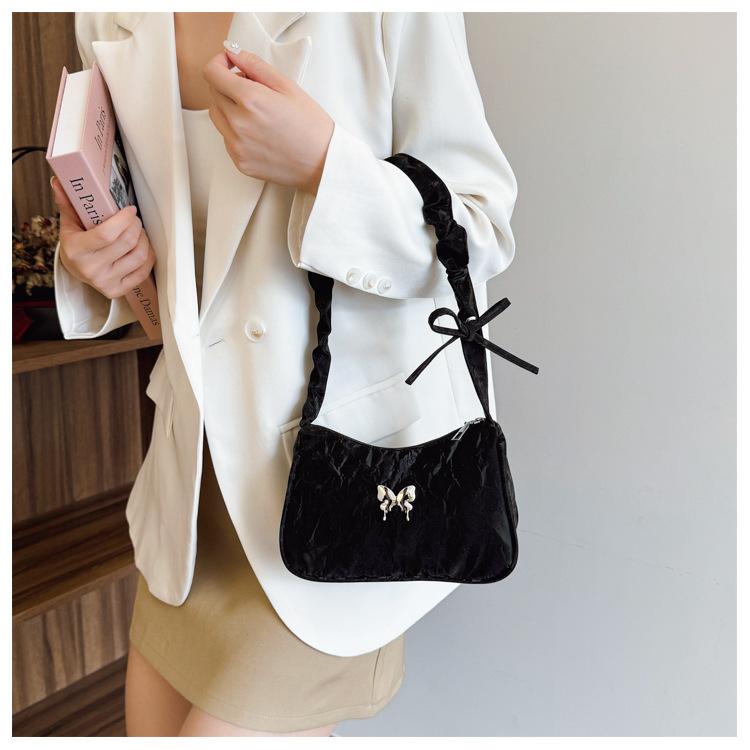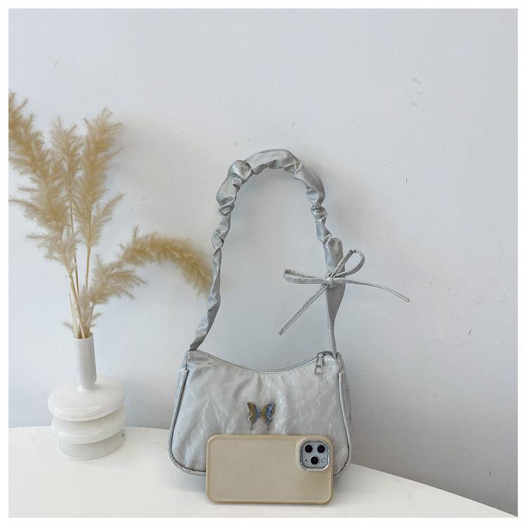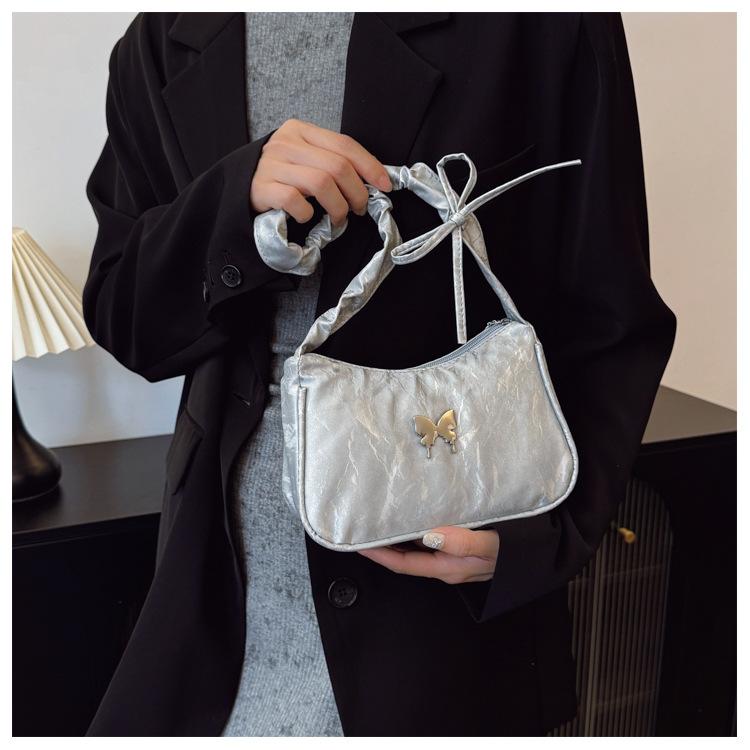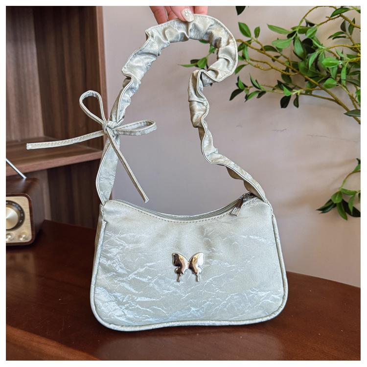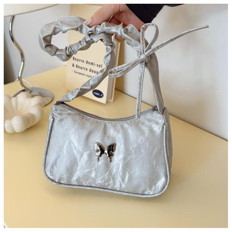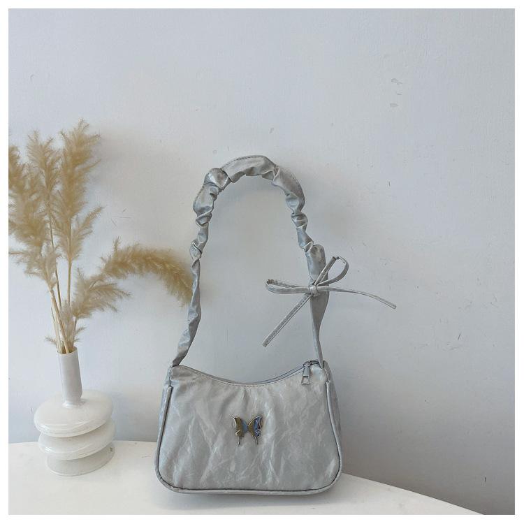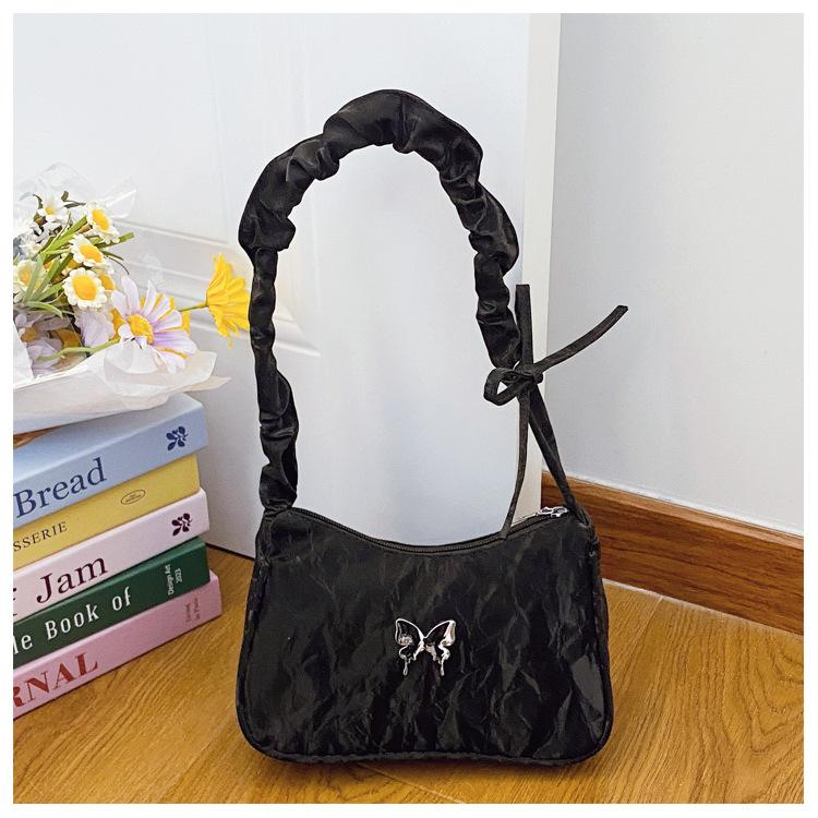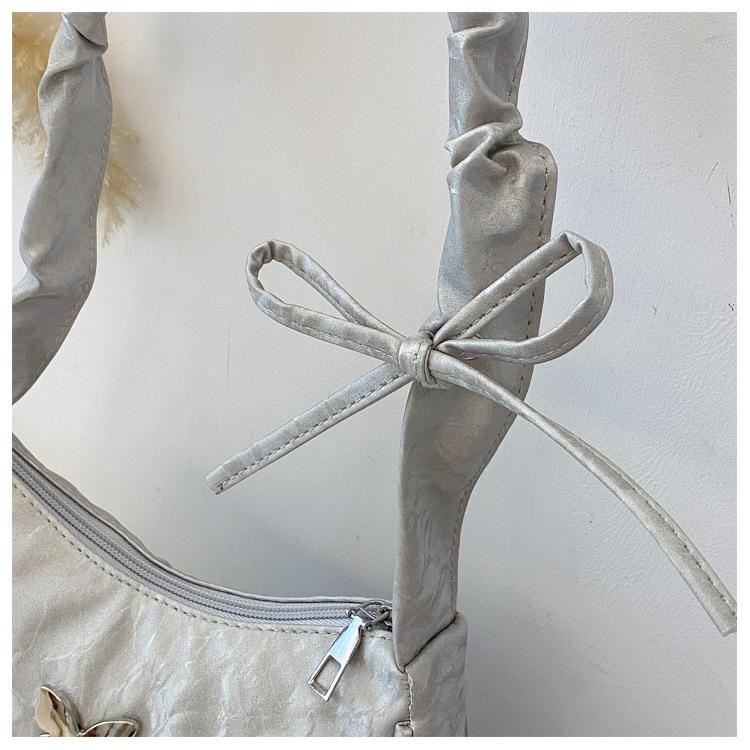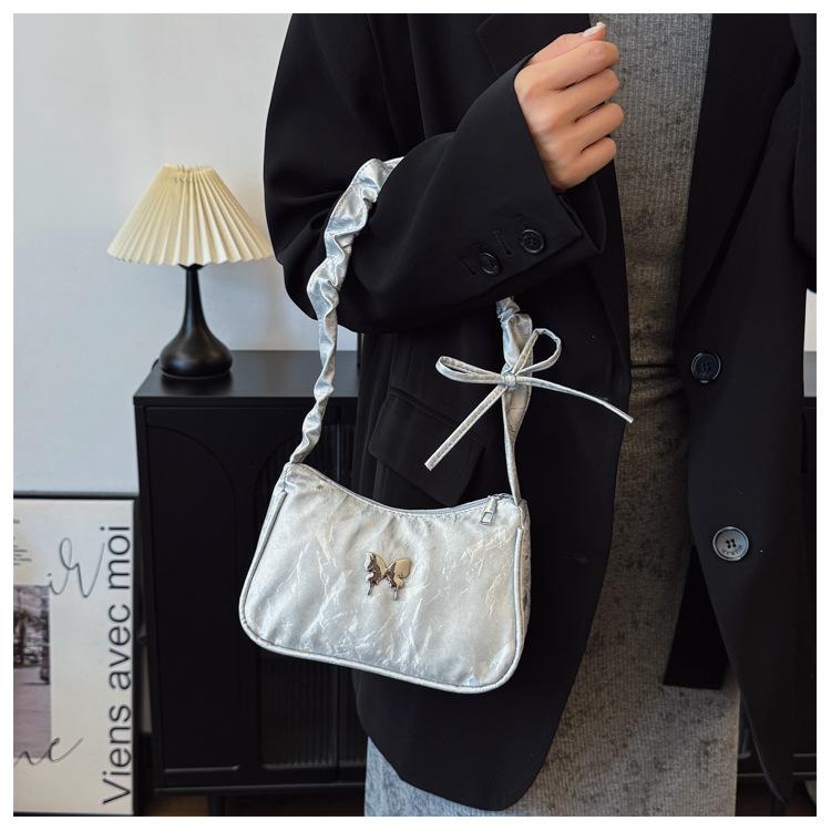 Bolso de Mano Plisado Casual Simple Nuevo Elegante Lazo Color Sólido de Moda 2025 Hombro Cruzado Axilar para Mujer