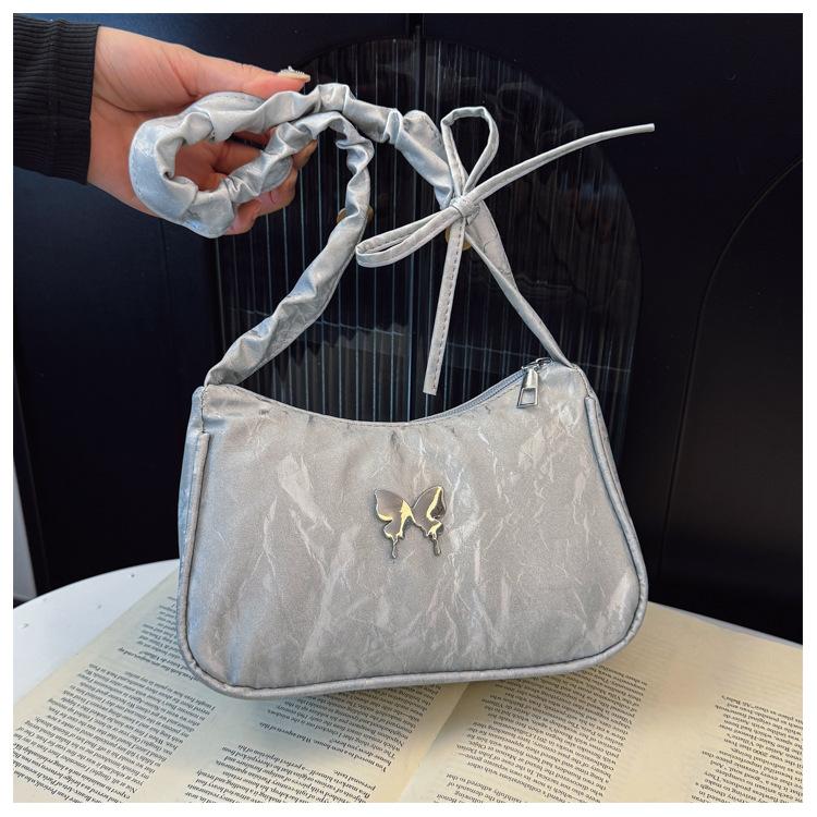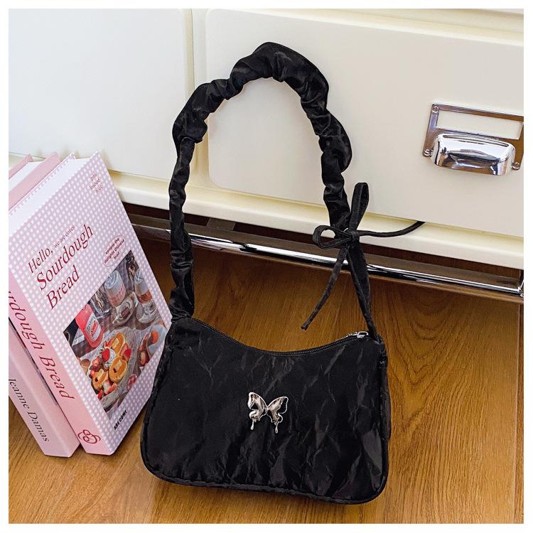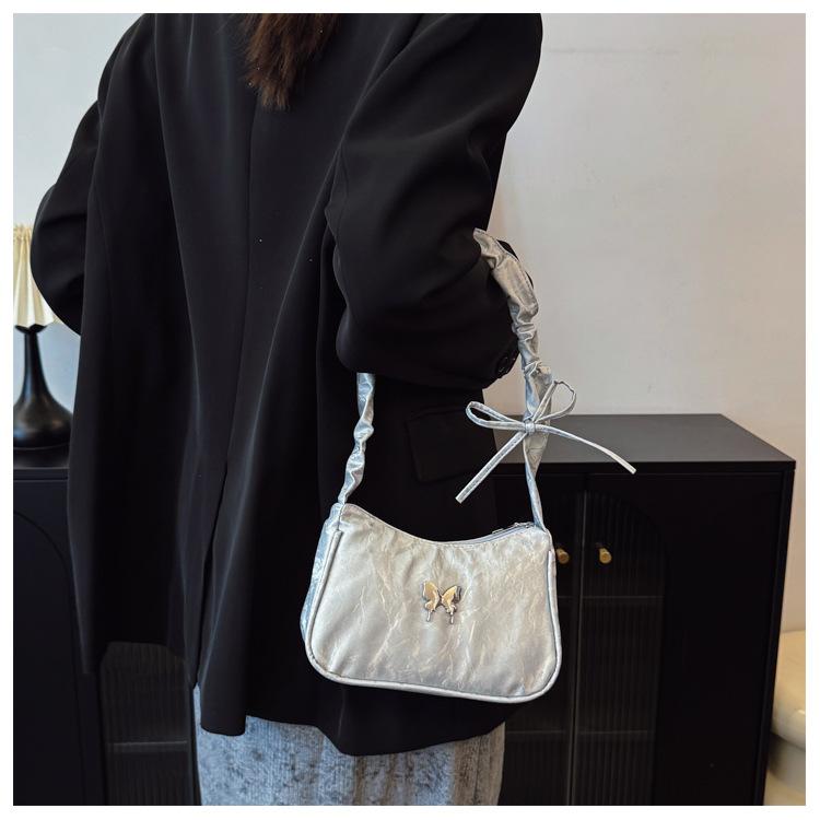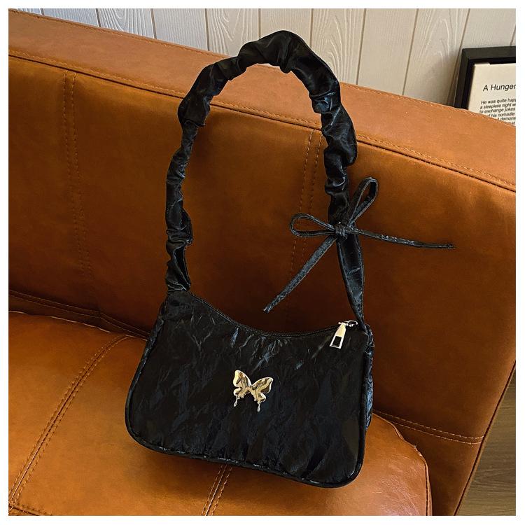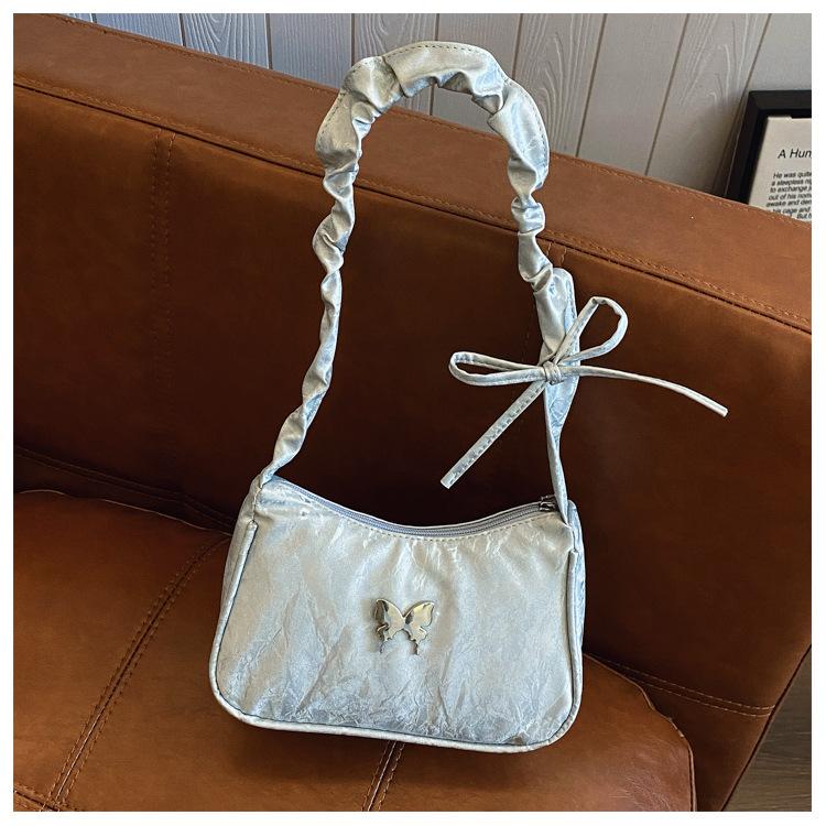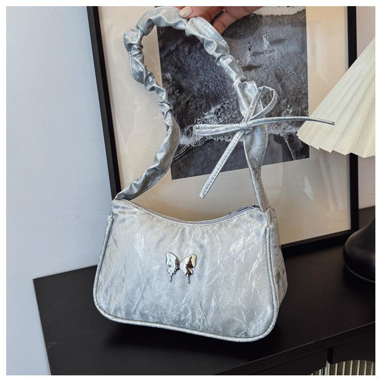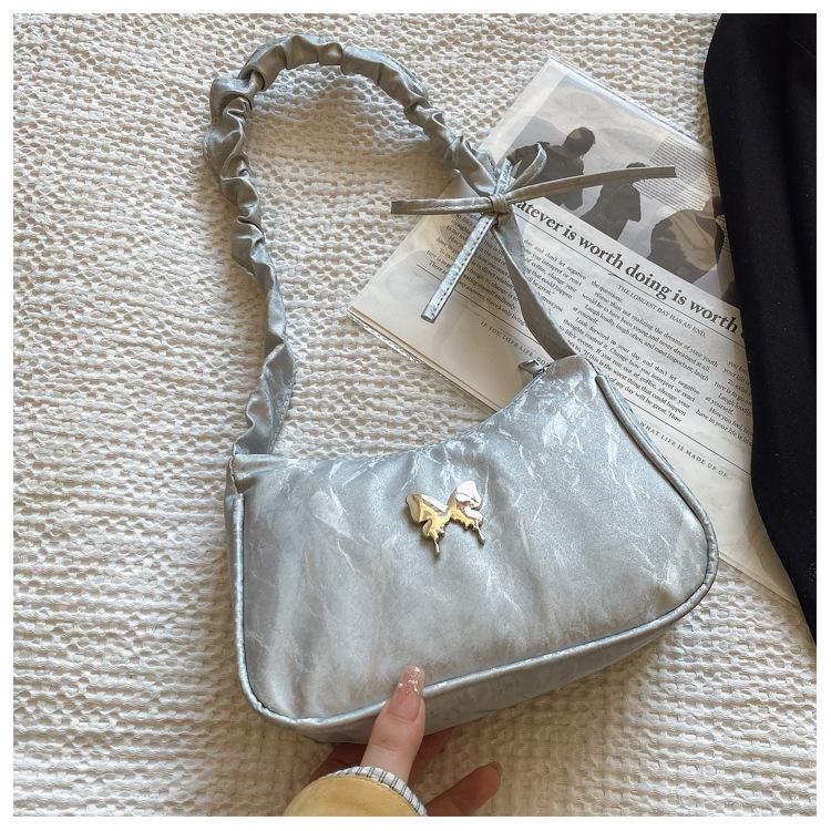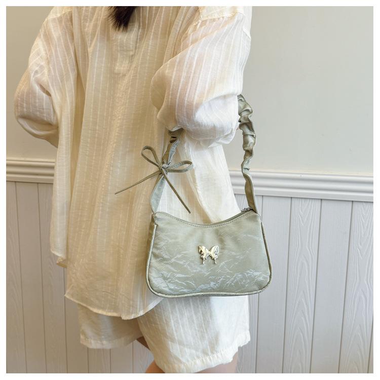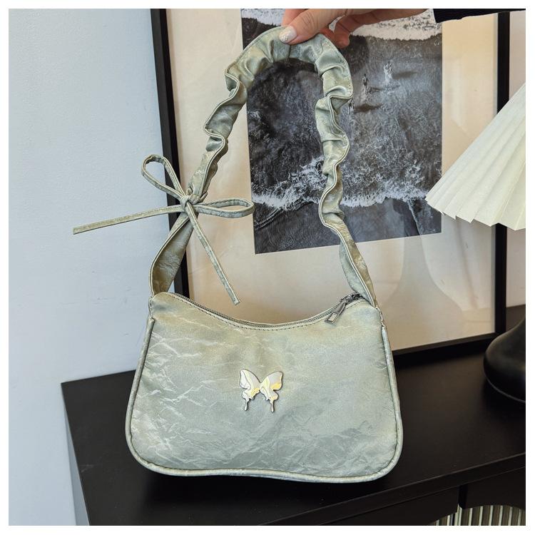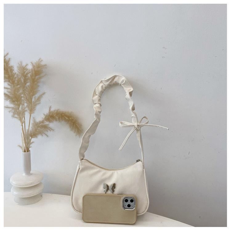Bolso de Mano Plisado Casual Simple Nuevo Elegante Lazo Color Sólido de Moda 2025 Hombro Cruzado Axilar para Mujer