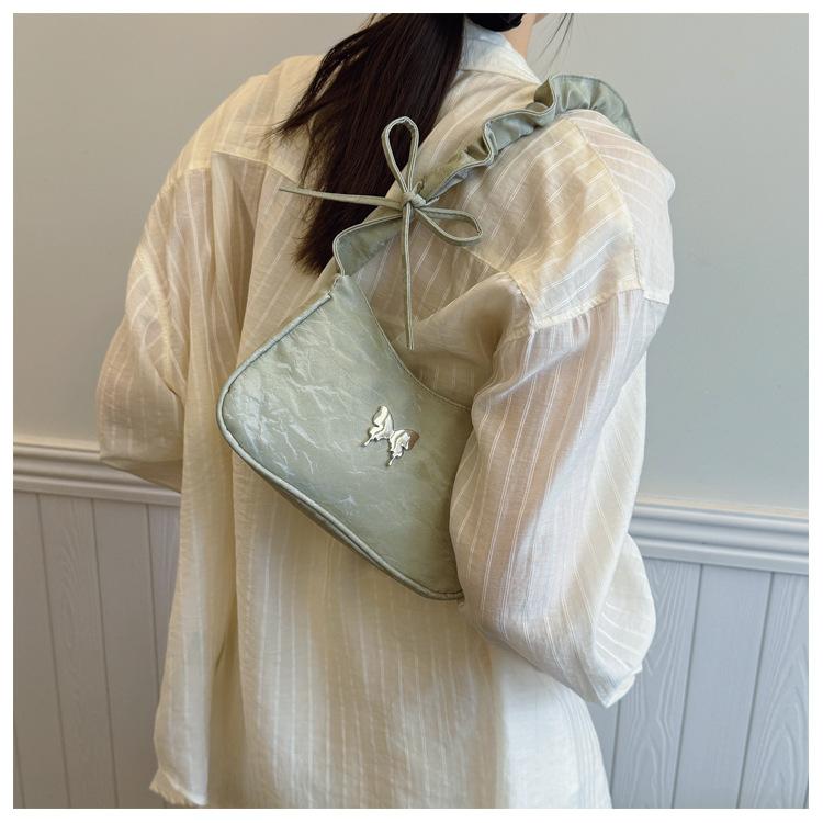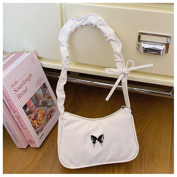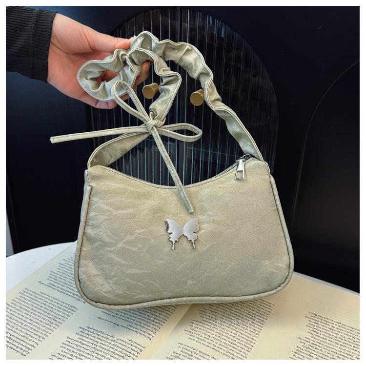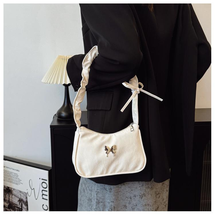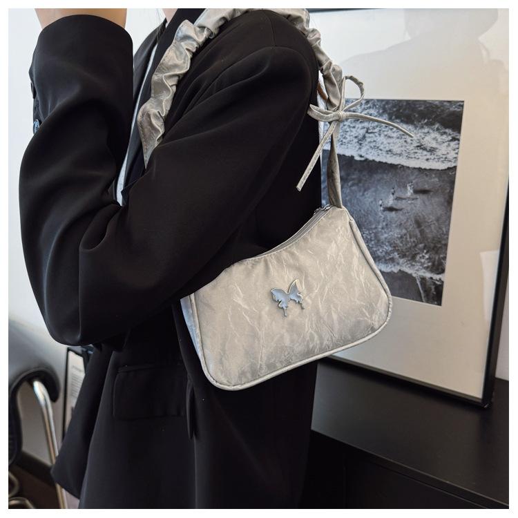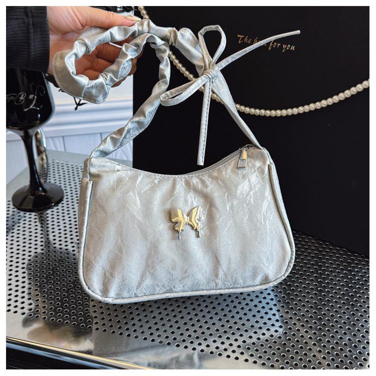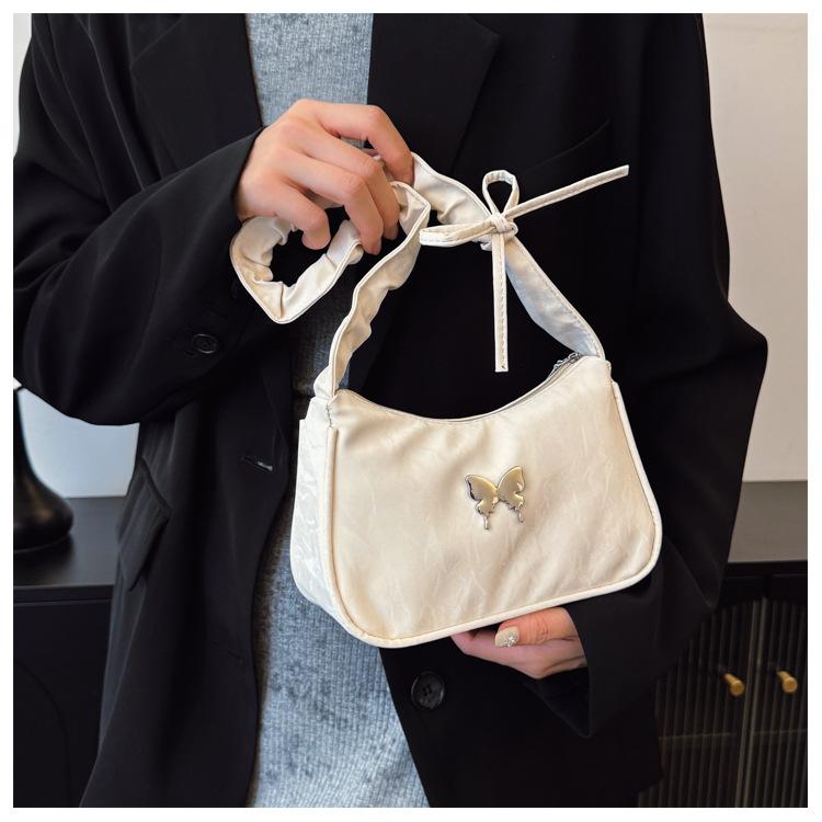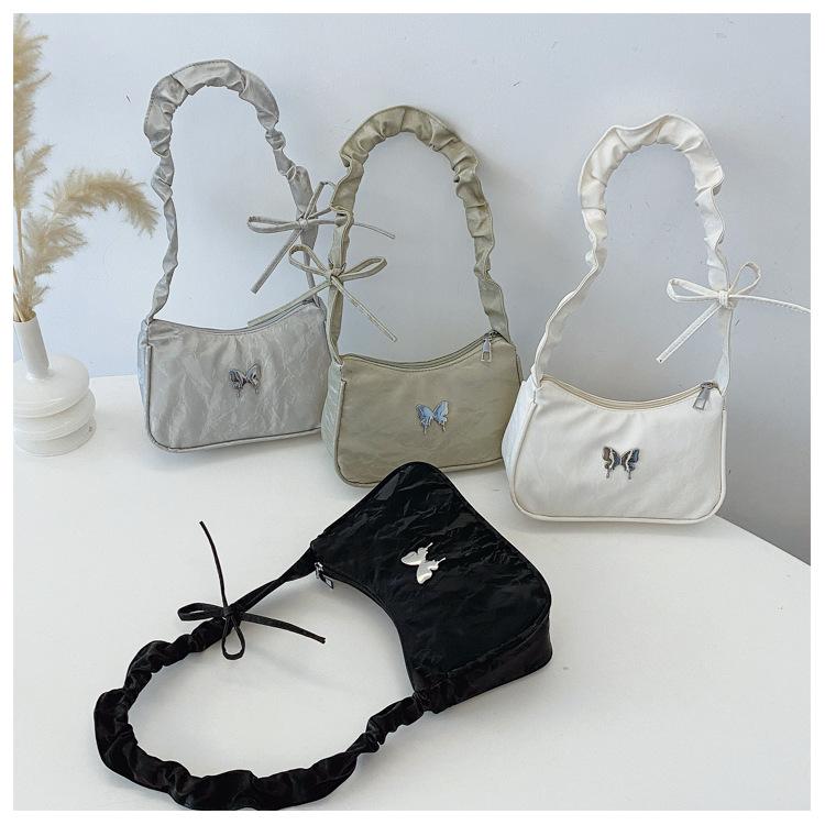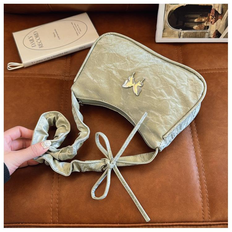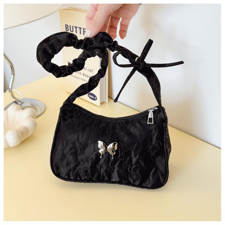 Bolso de Mano Plisado Casual Simple Nuevo Elegante Lazo Color Sólido de Moda 2025 Hombro Cruzado Axilar para Mujer
