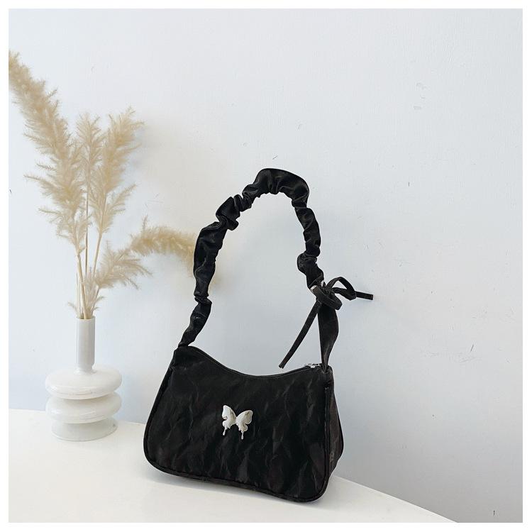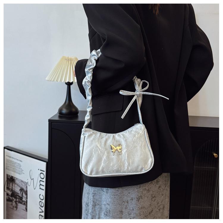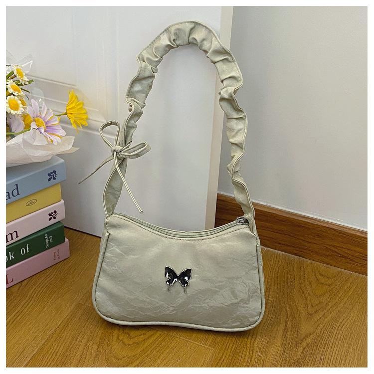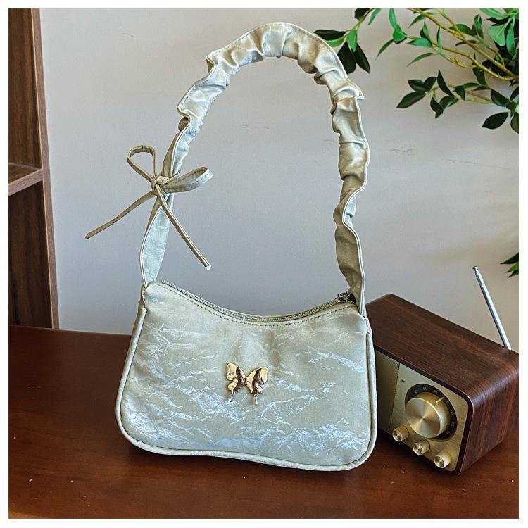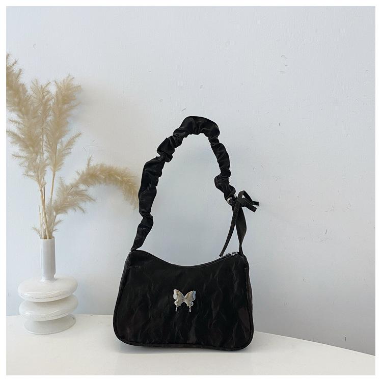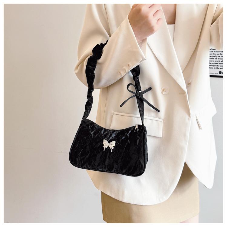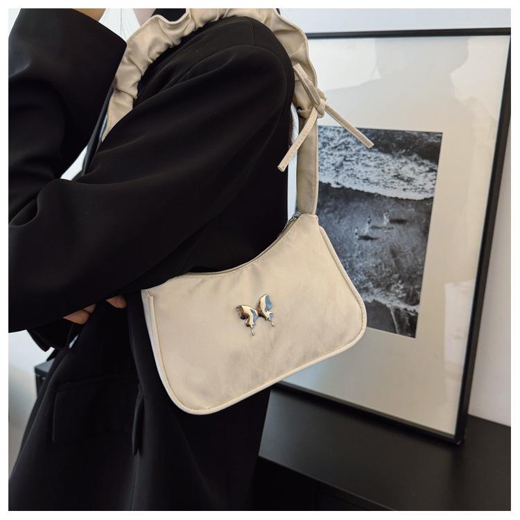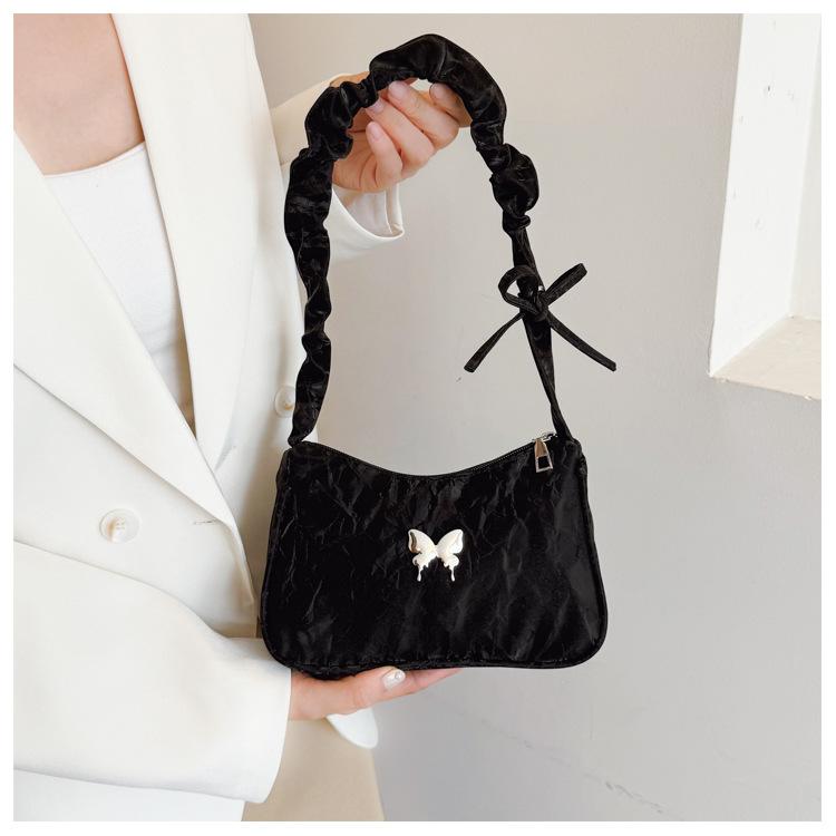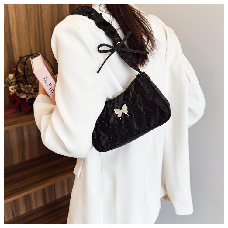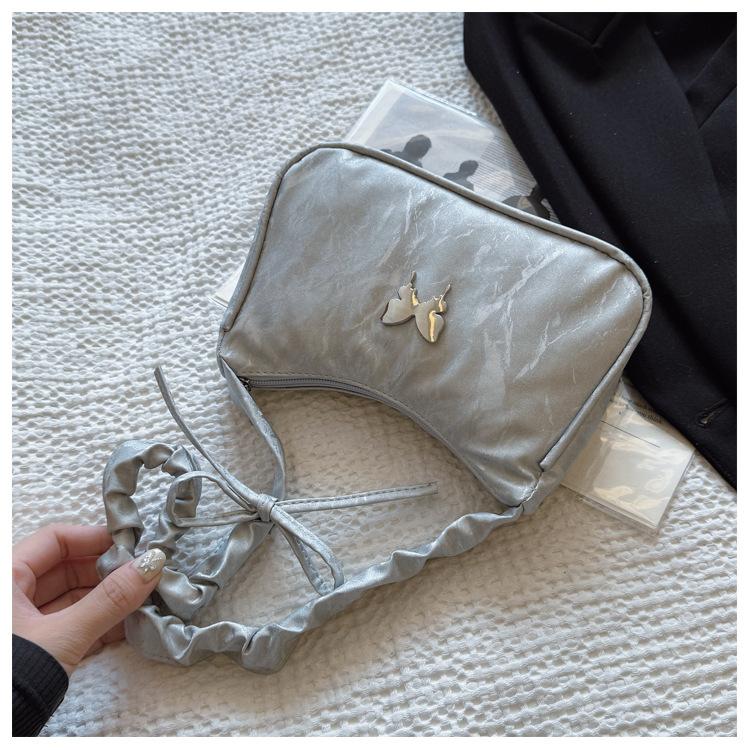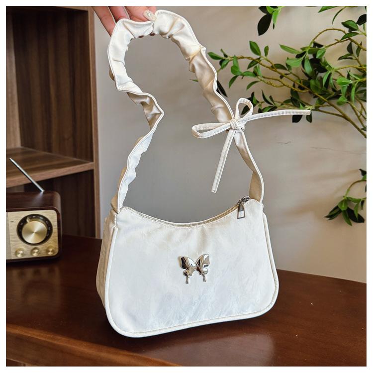 Bolso de Mano Plisado Casual Simple Nuevo Elegante Lazo Color Sólido de Moda 2025 Hombro Cruzado Axilar para Mujer