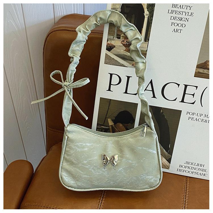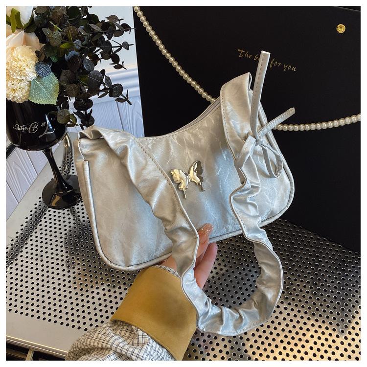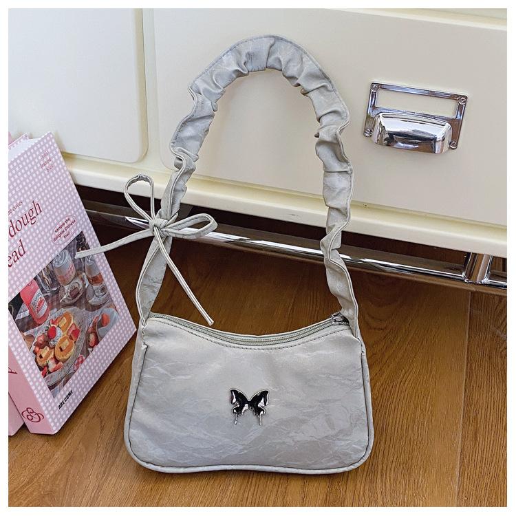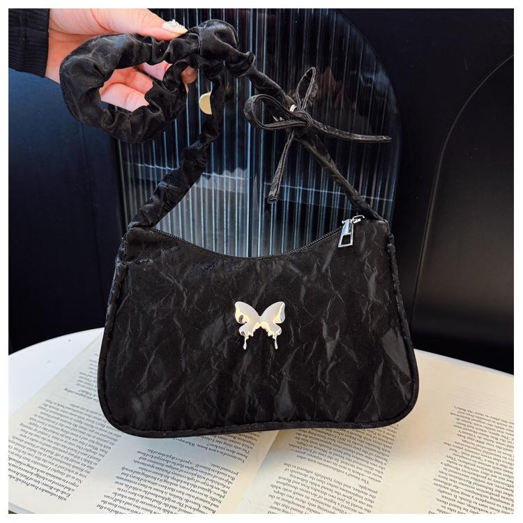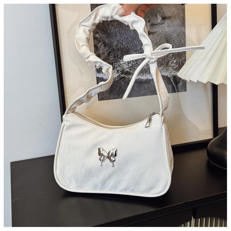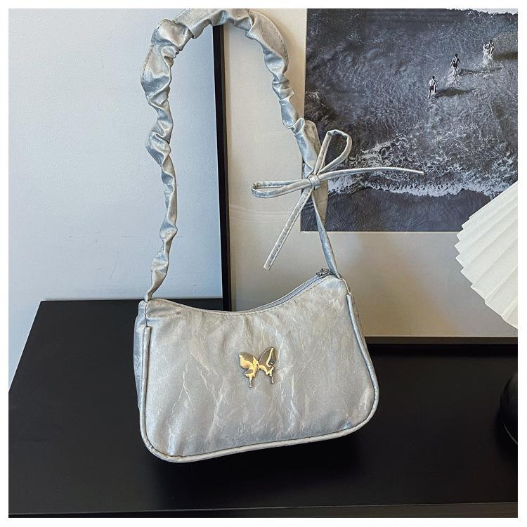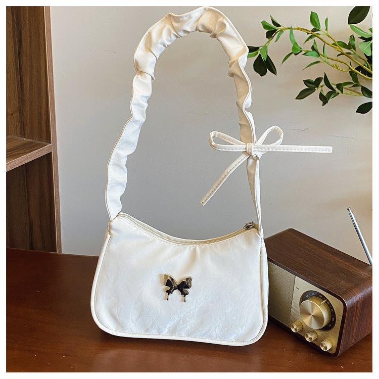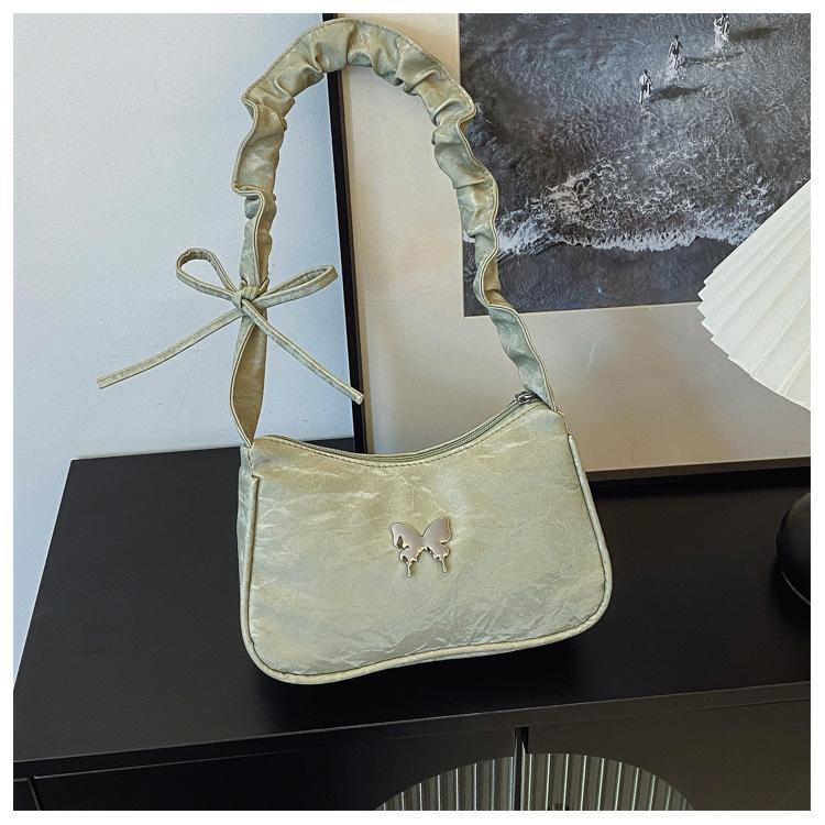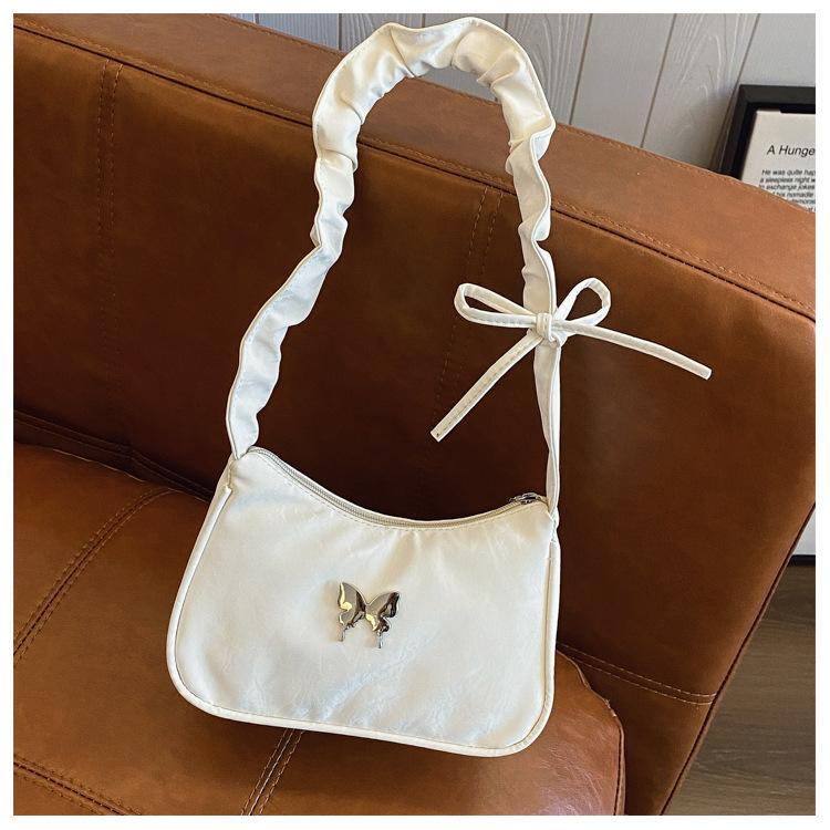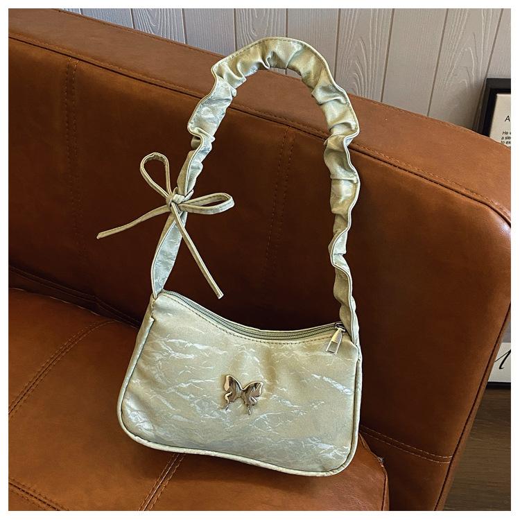 Bolso de Mano Plisado Casual Simple Nuevo Elegante Lazo Color Sólido de Moda 2025 Hombro Cruzado Axilar para Mujer