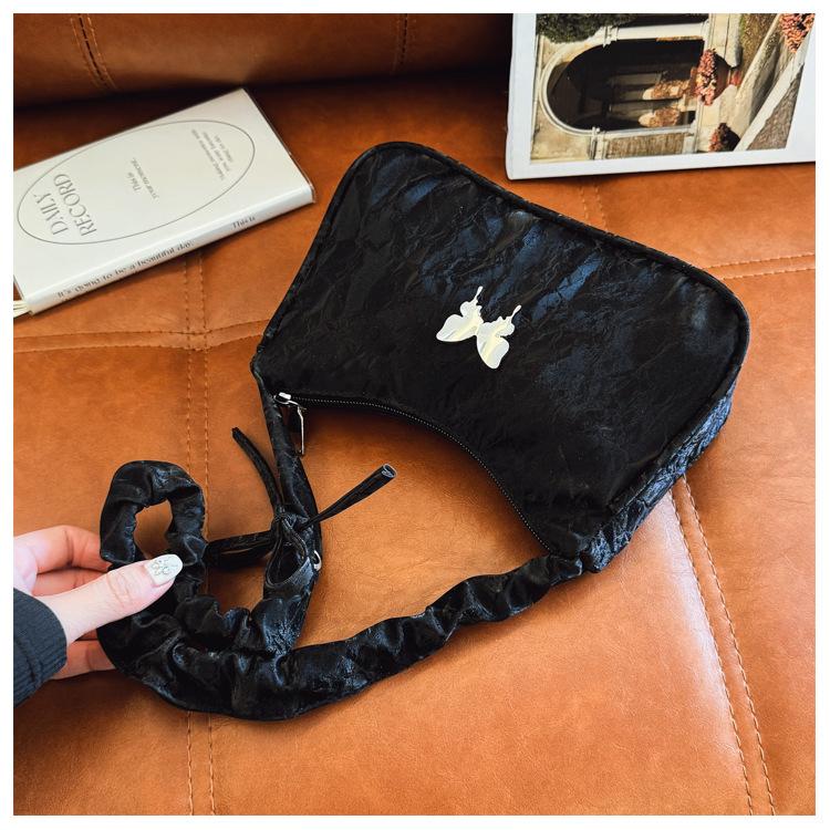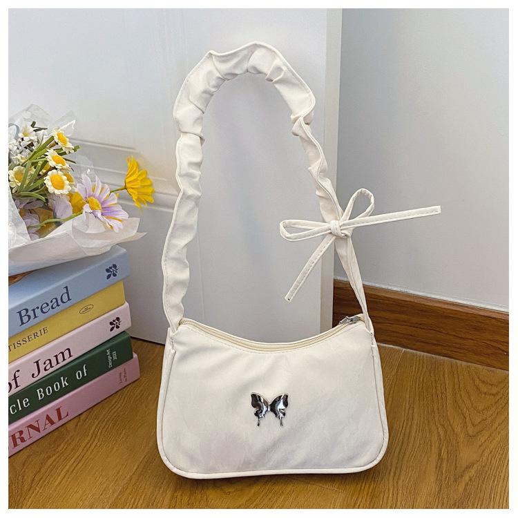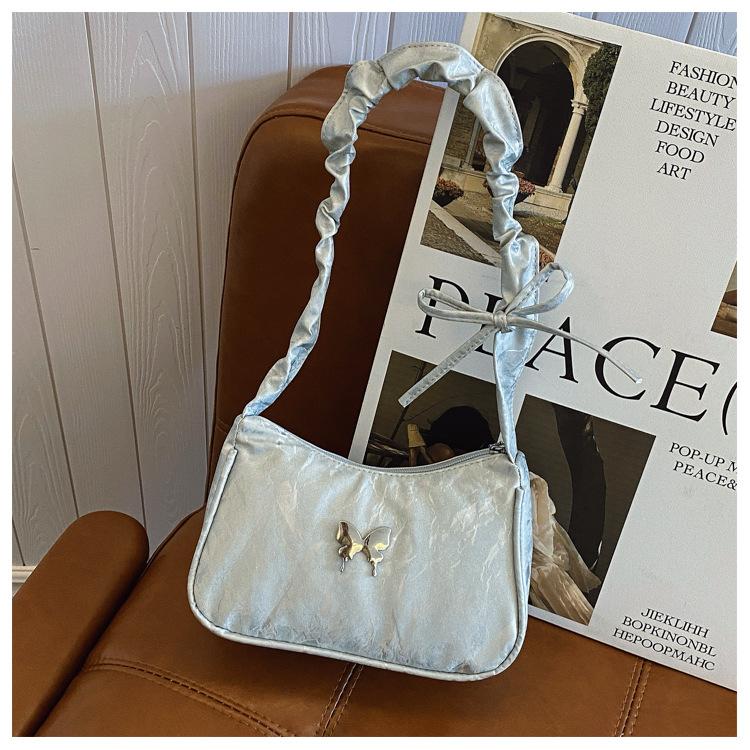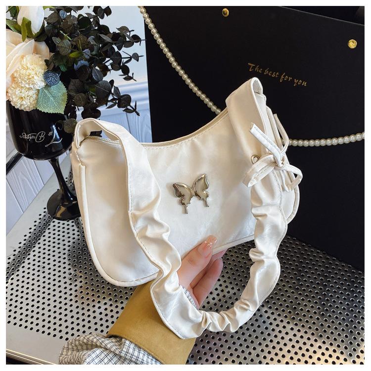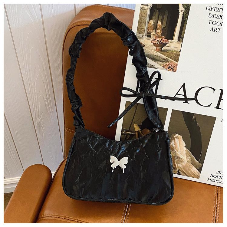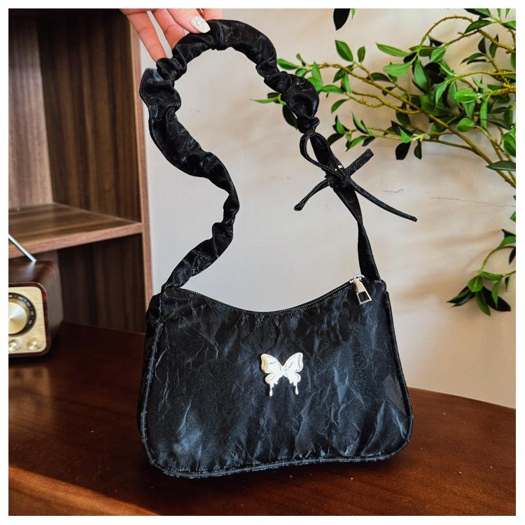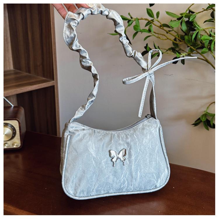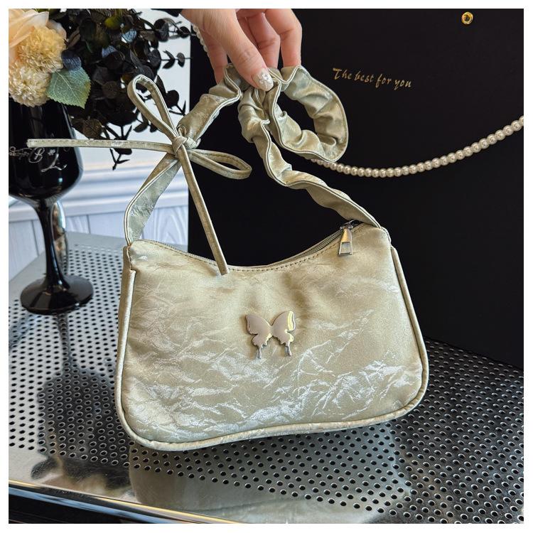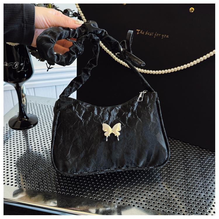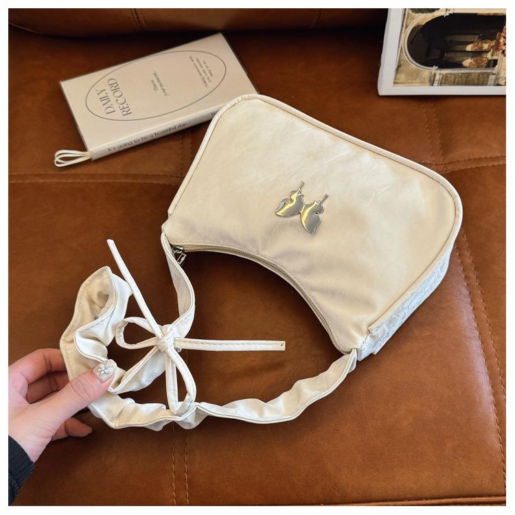Bolso de Mano Plisado Casual Simple Nuevo Elegante Lazo Color Sólido de Moda 2025 Hombro Cruzado Axilar para Mujer