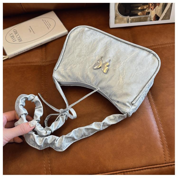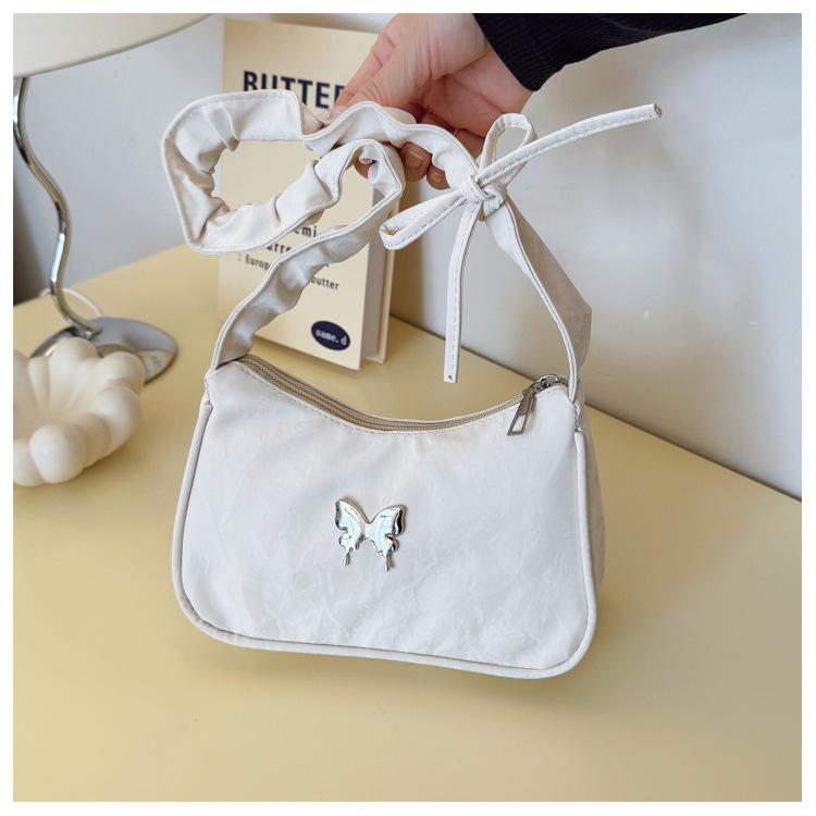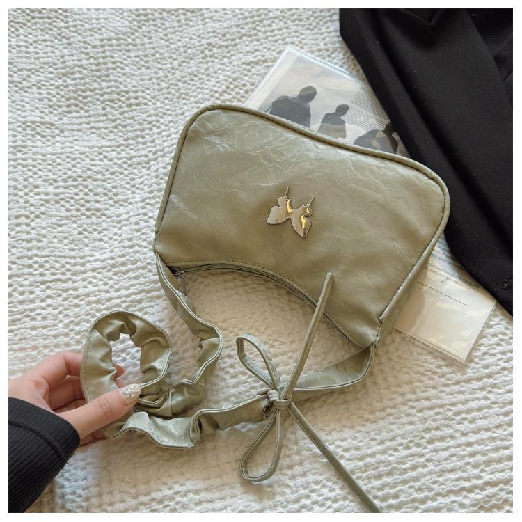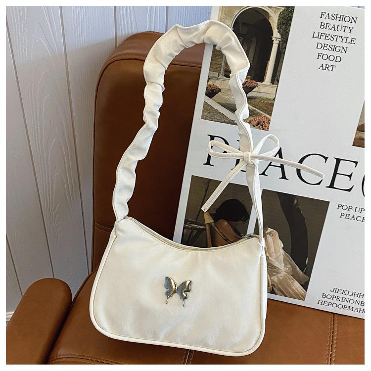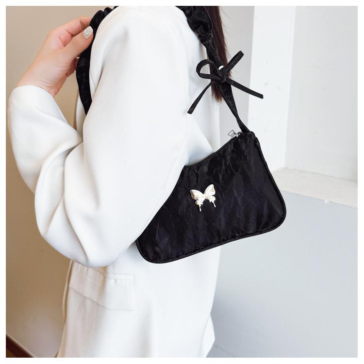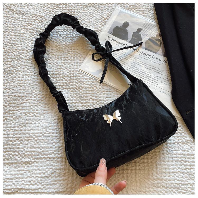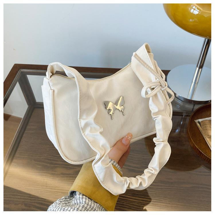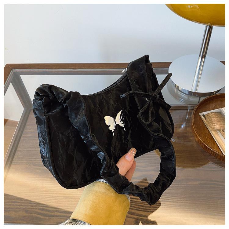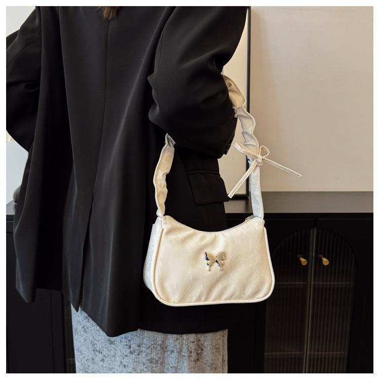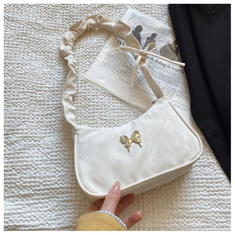 Bolso de Mano Plisado Casual Simple Nuevo Elegante Lazo Color Sólido de Moda 2025 Hombro Cruzado Axilar para Mujer