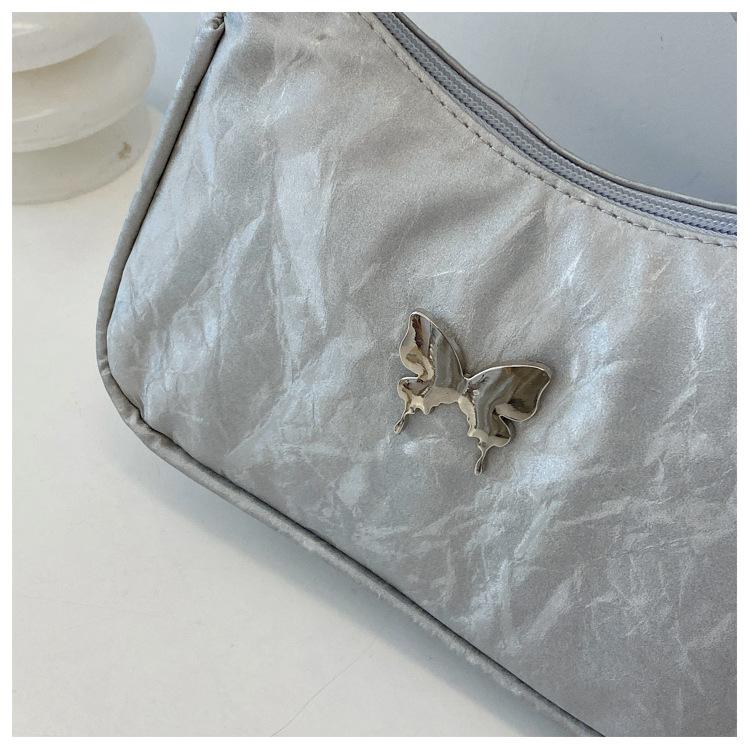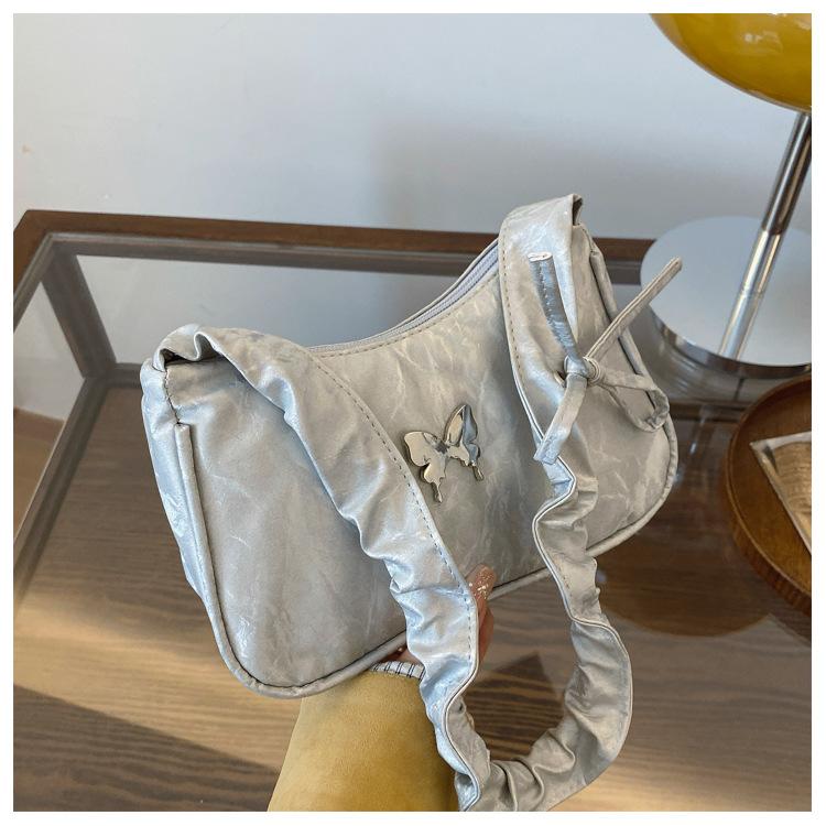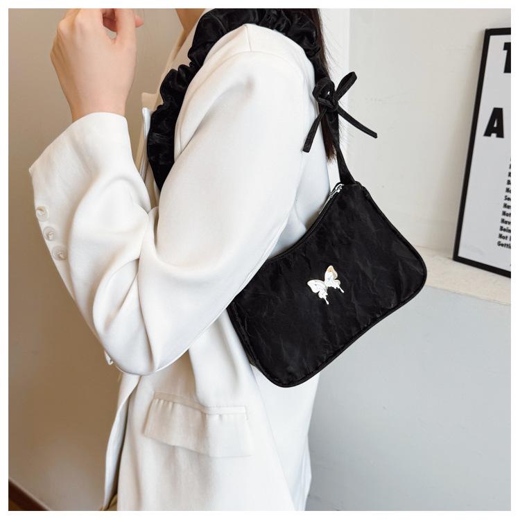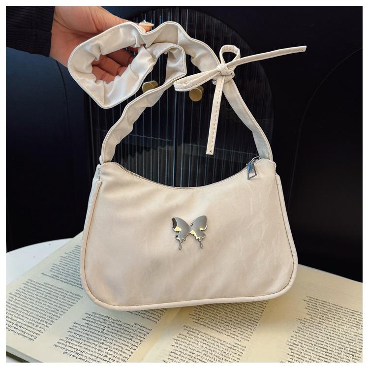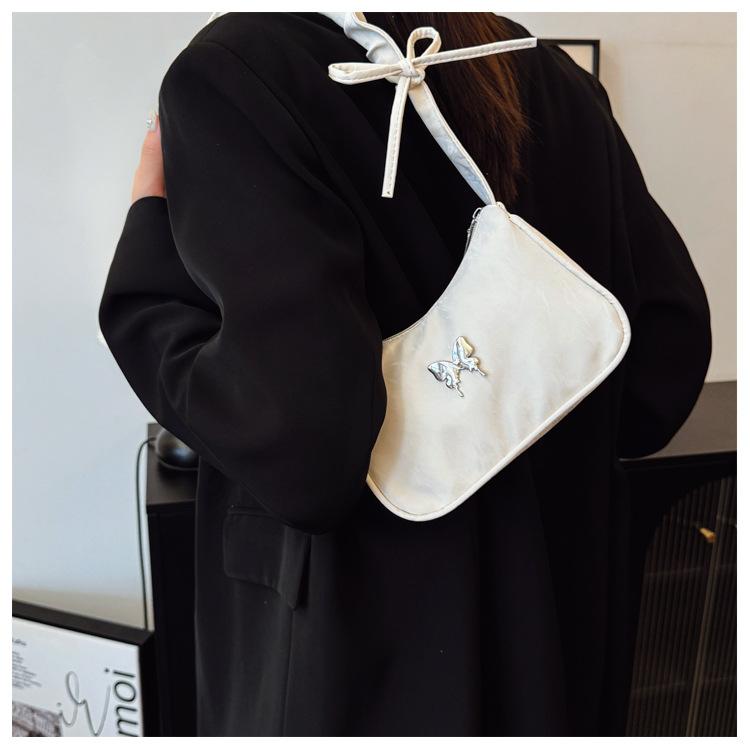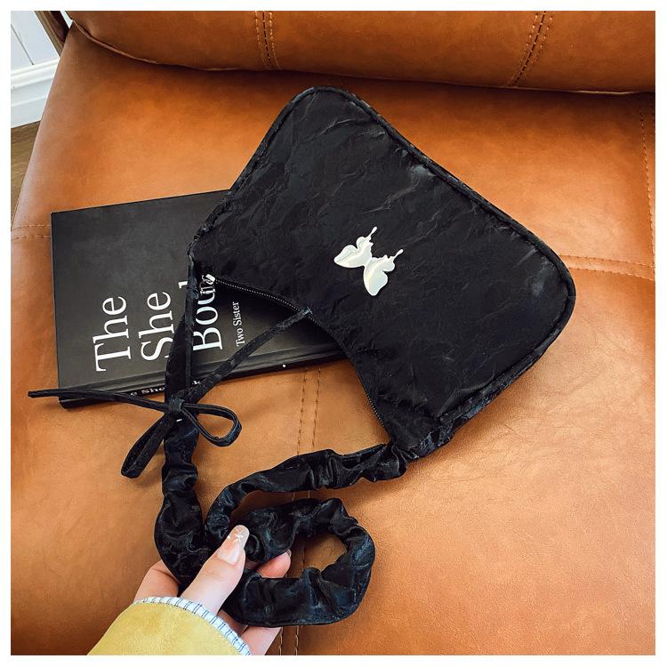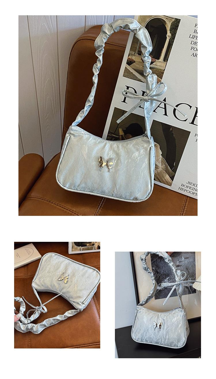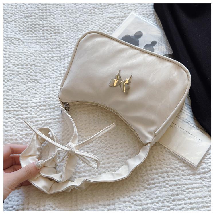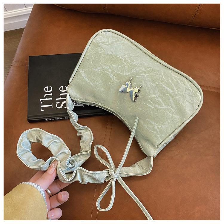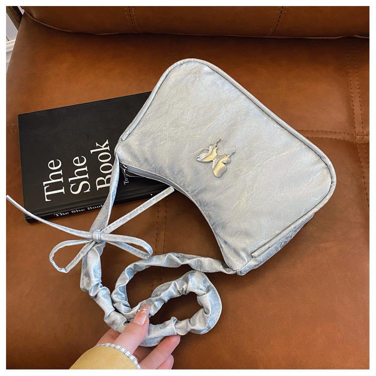 Bolso de Mano Plisado Casual Simple Nuevo Elegante Lazo Color Sólido de Moda 2025 Hombro Cruzado Axilar para Mujer