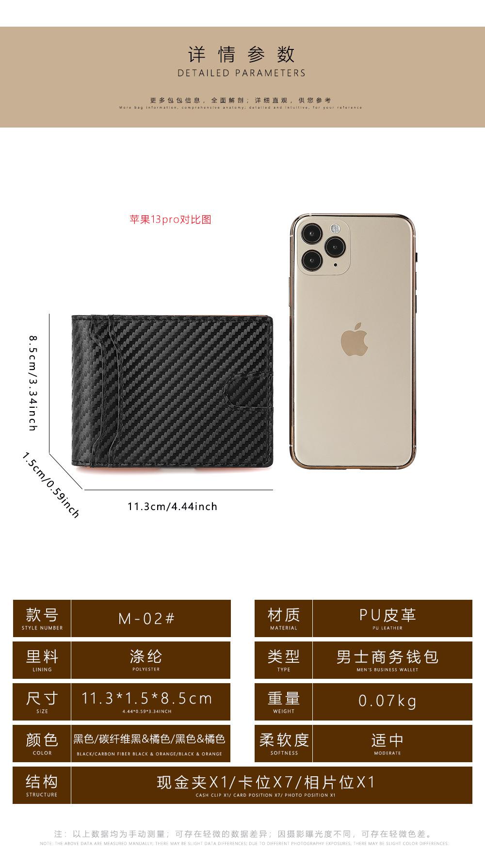 Comercio Exterior Nuevo Soporte para Tarjetas RFID de Fibra de Carbono Cuero de Microfibra Ranuras para Múltiples Tarjetas Clip para Billetes Monedero para Monedas Tarjetero para Hombre