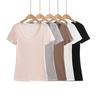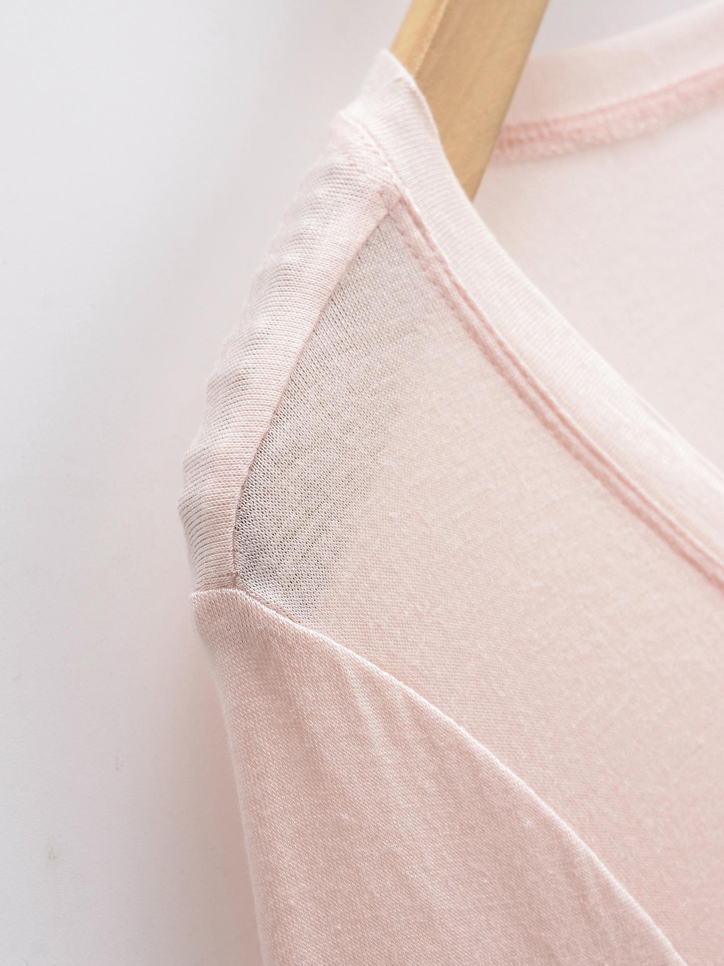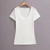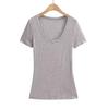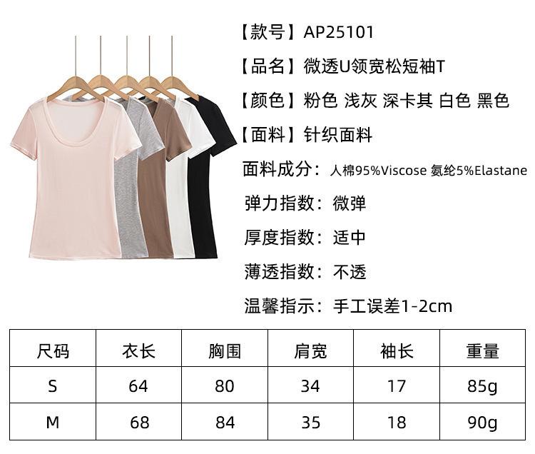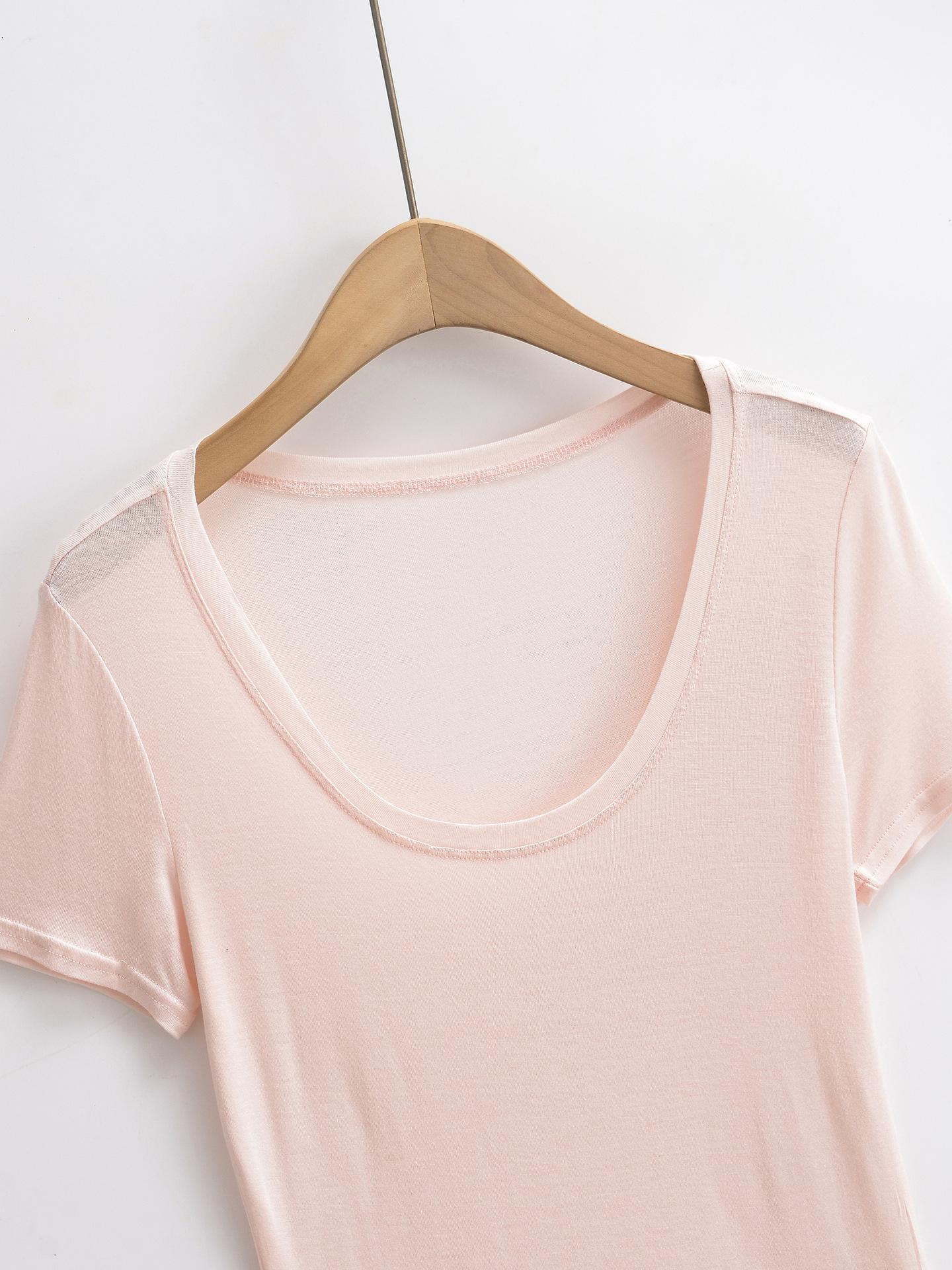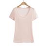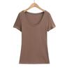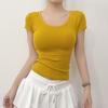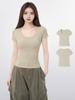 Playera básica de cuello U ajustada para chica, con manga corta en el hombro derecho, para mujer, elástica, con efecto adelgazante, ligeramente transparente, holgada, de manga corta
