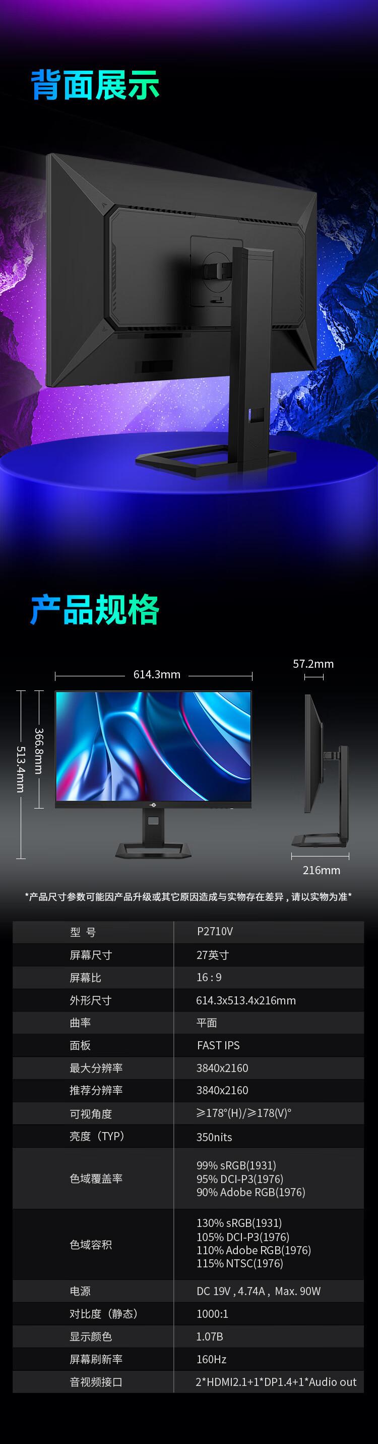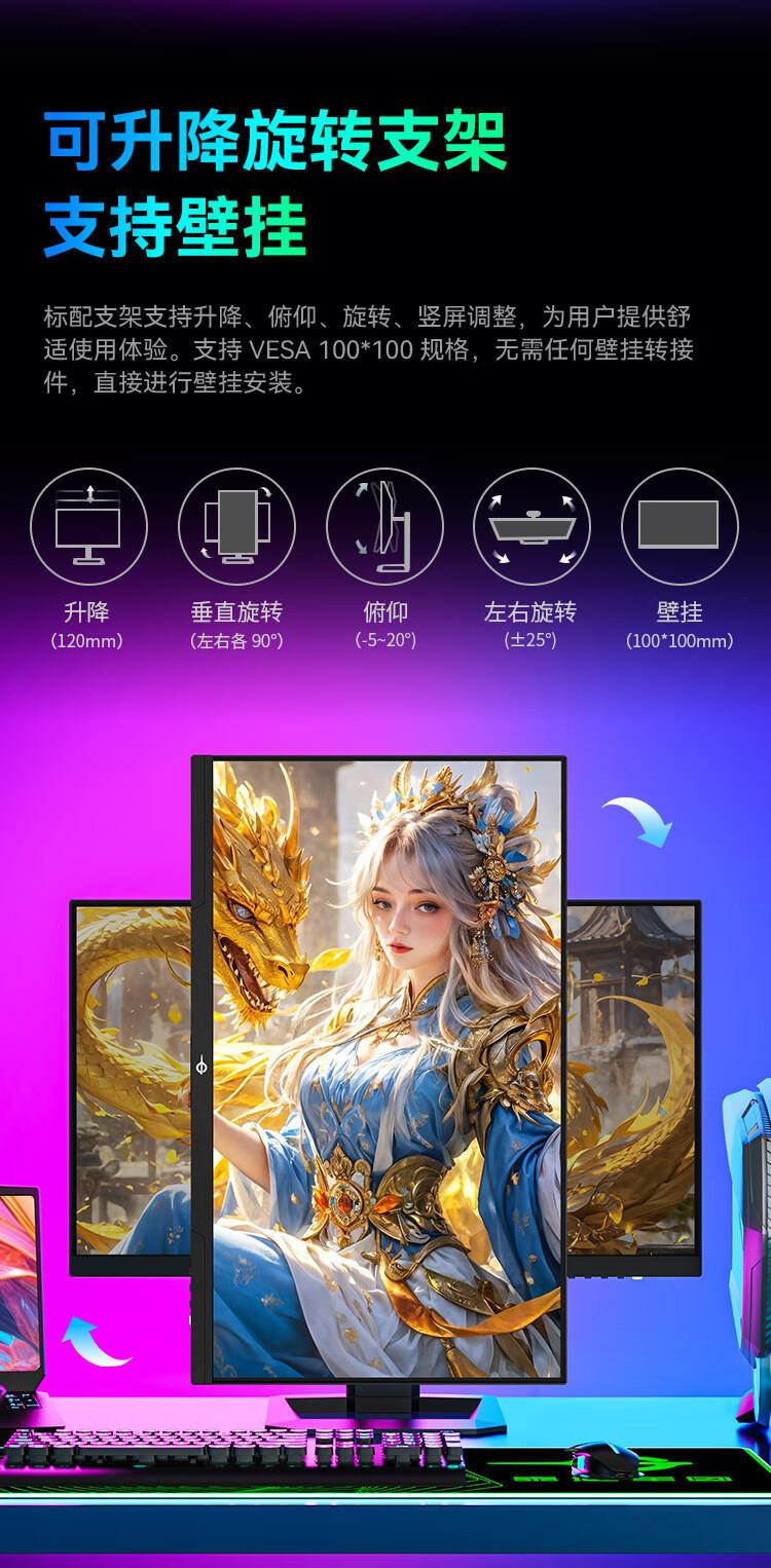Titan Legion P2710V 27 Pulgadas 4K Nativo 160Hz Transmisión en Vivo Pantalla Elevable y Giratoria Luz Azul Baja