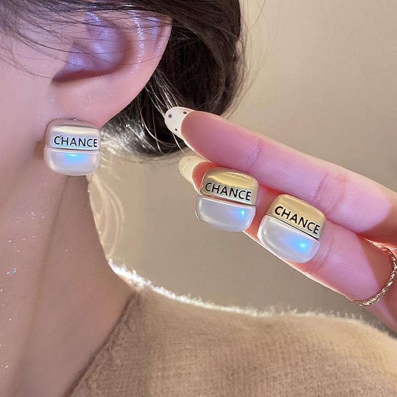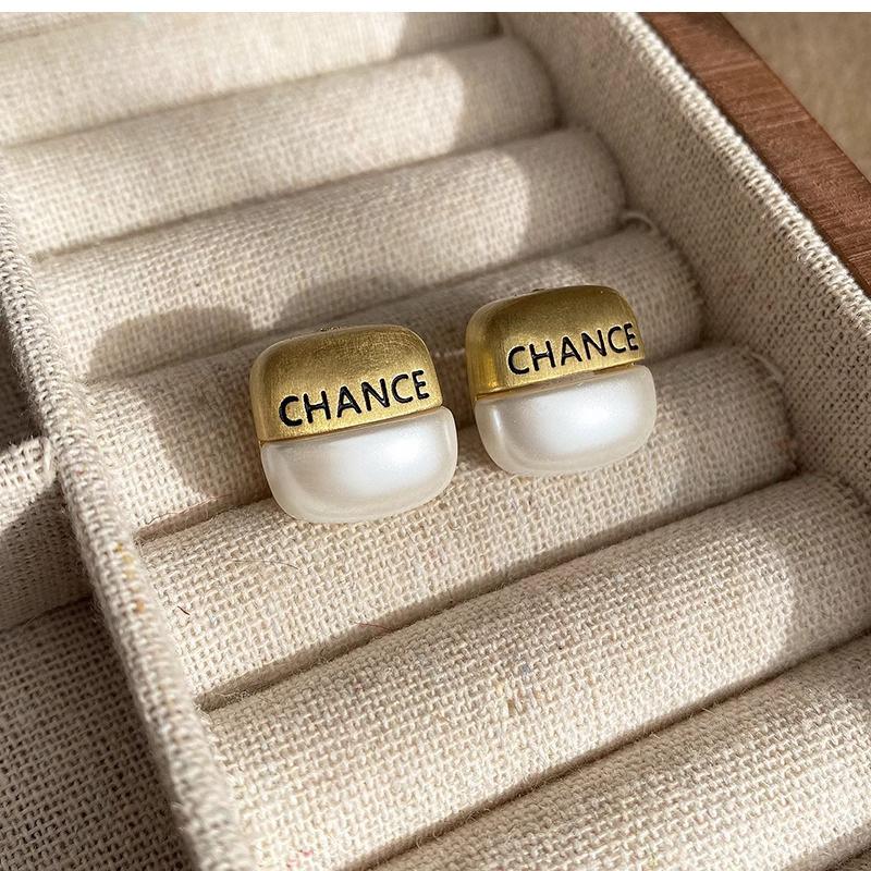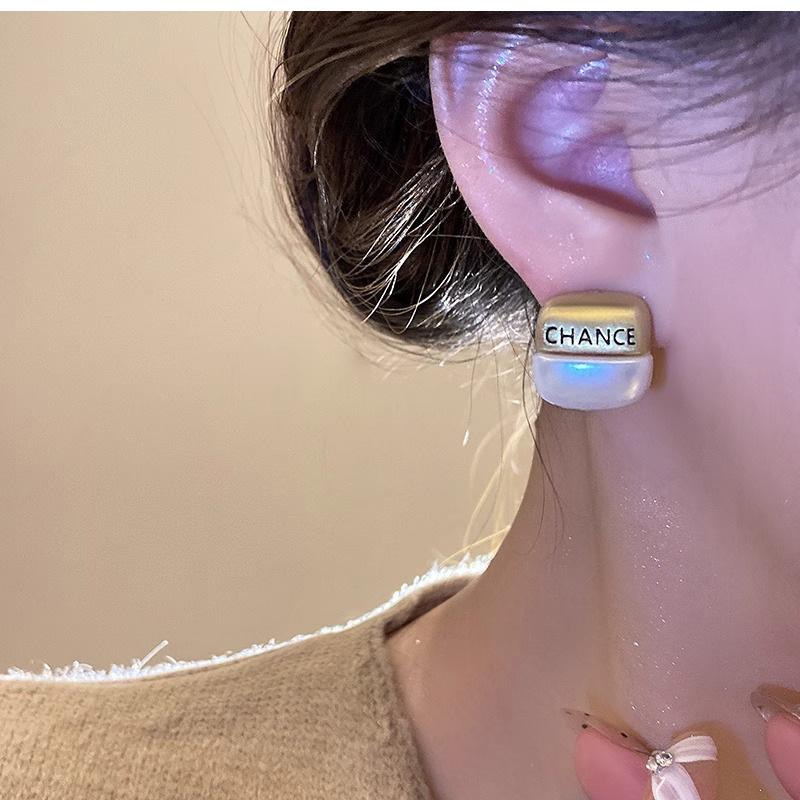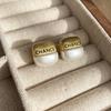 Nuevos Aretes Geométricos de Metal Cepillado con Letras para Mujer, Aretes Versátiles de Alta Gama, Aretes Dorados de Temperamento a la Moda para Mujer